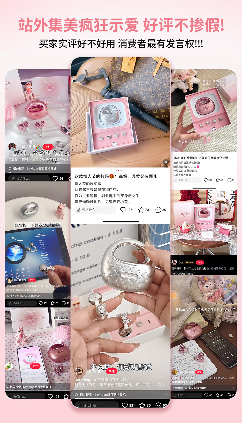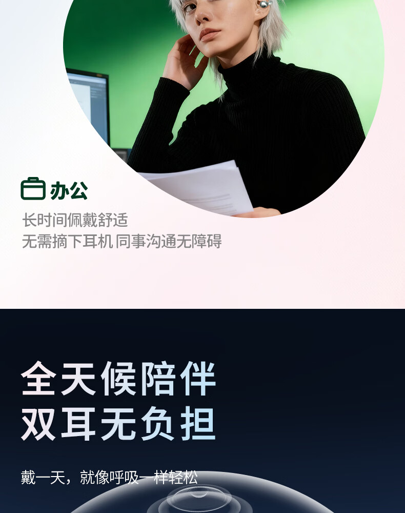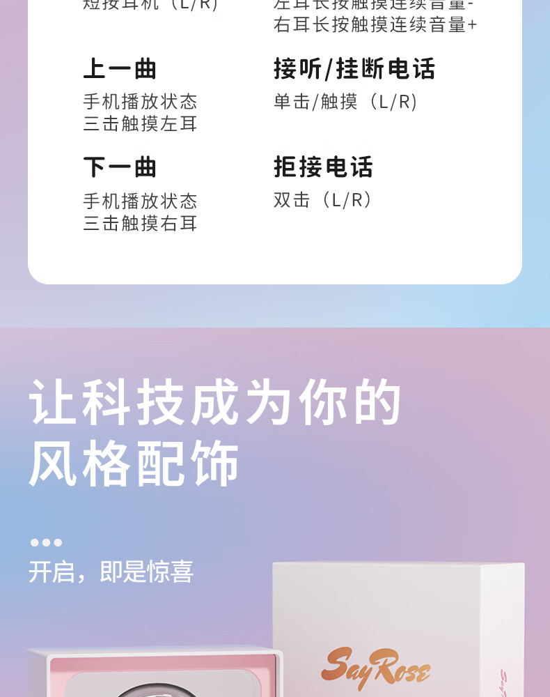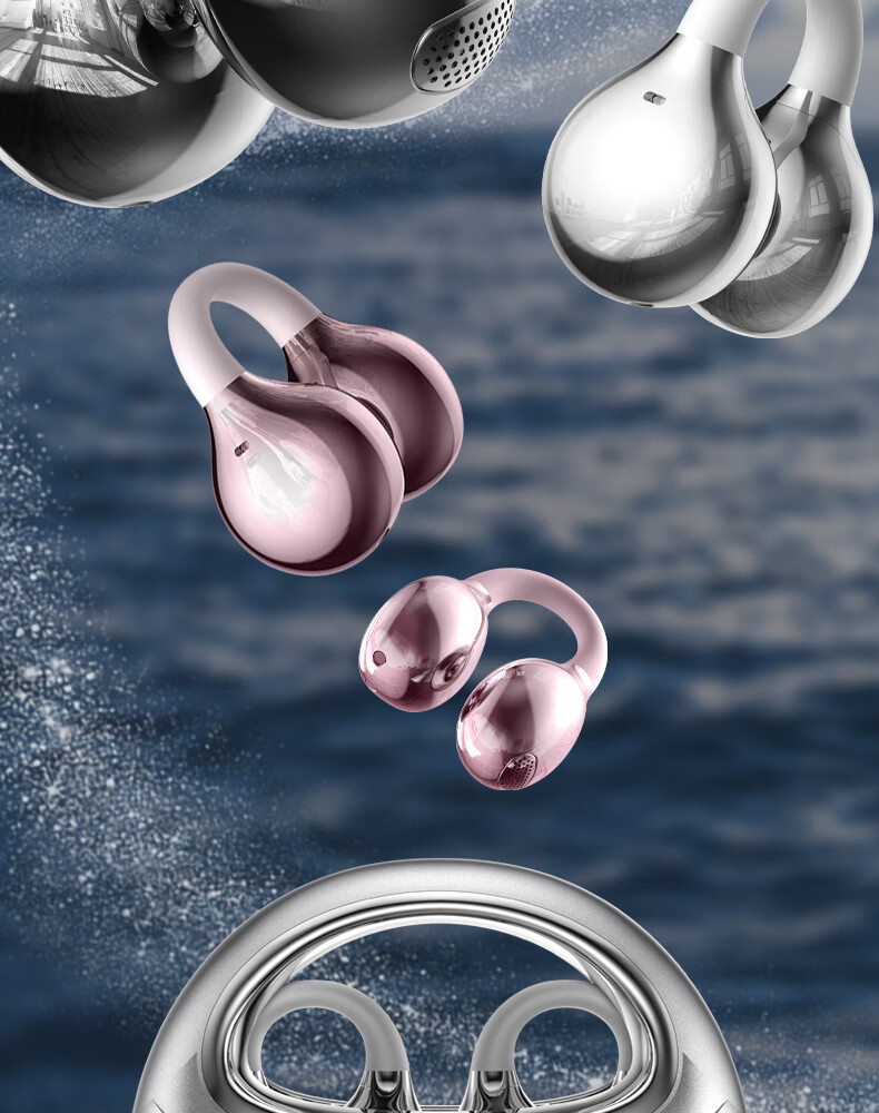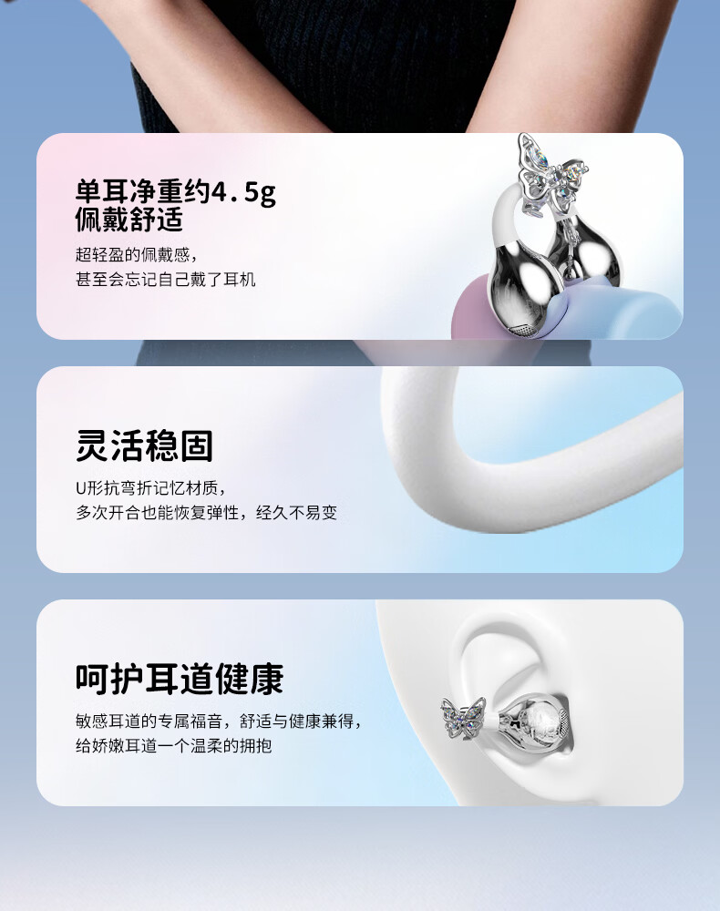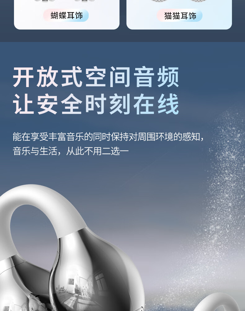 SayRose蓝牙耳机带耳饰降噪长续航时尚礼物生日情人节送女生爱人老婆闺蜜结婚生日企业礼品夹耳高颜值 月光银 【赠两对耳饰+定向传音+ENC降噪+电镀工艺】
