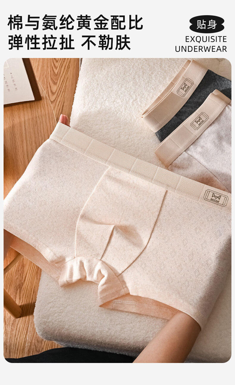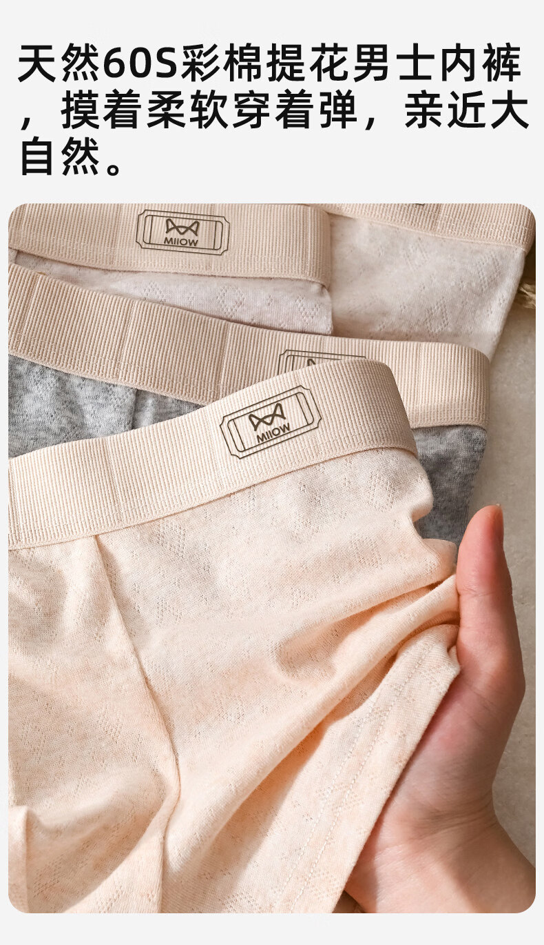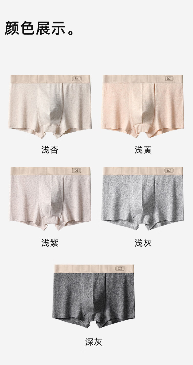 猫人(MiiOW)青少年纯棉内裤男生发育期初高中学生平角短裤大童胖童四角裤 4条装:浅紫+浅灰+深灰+浅杏 【天然彩棉 100A抑菌】 170 (XL) 【推荐100-120斤】