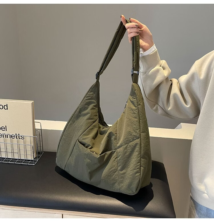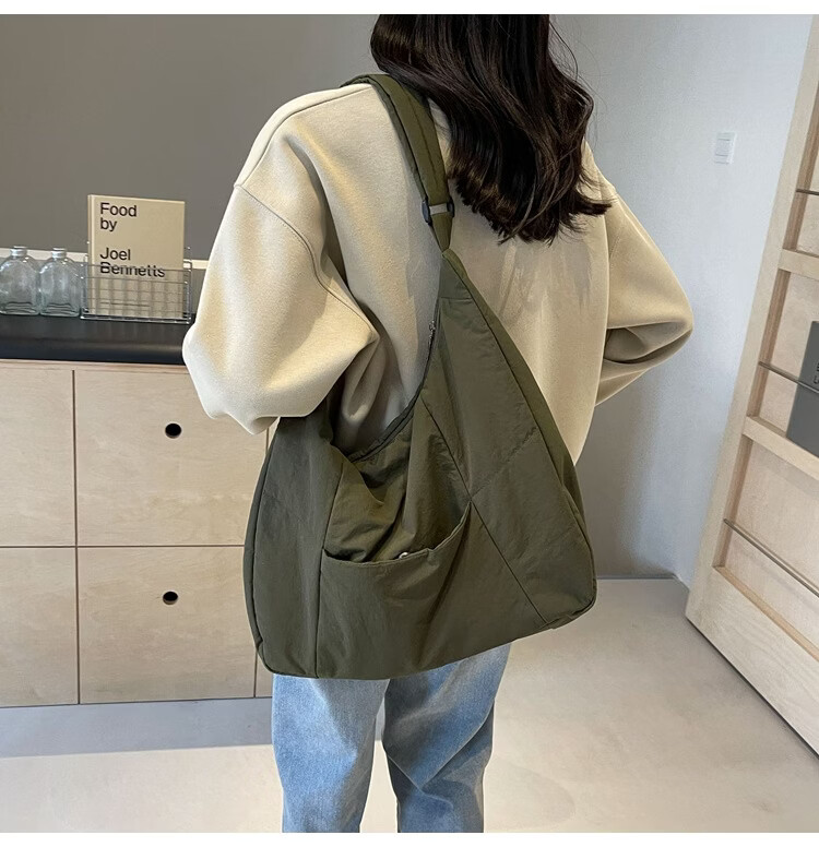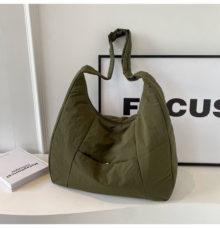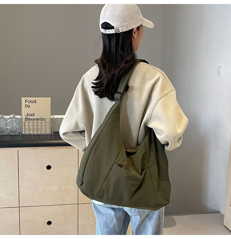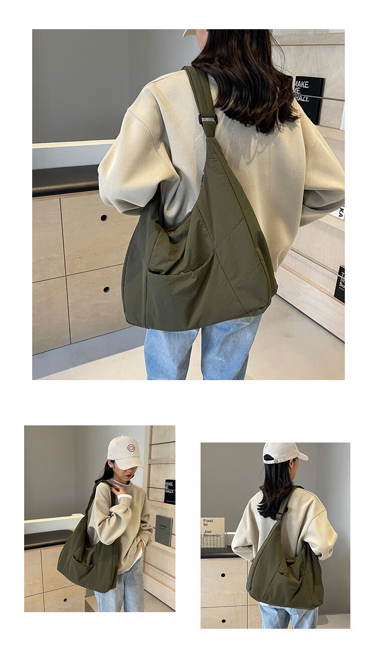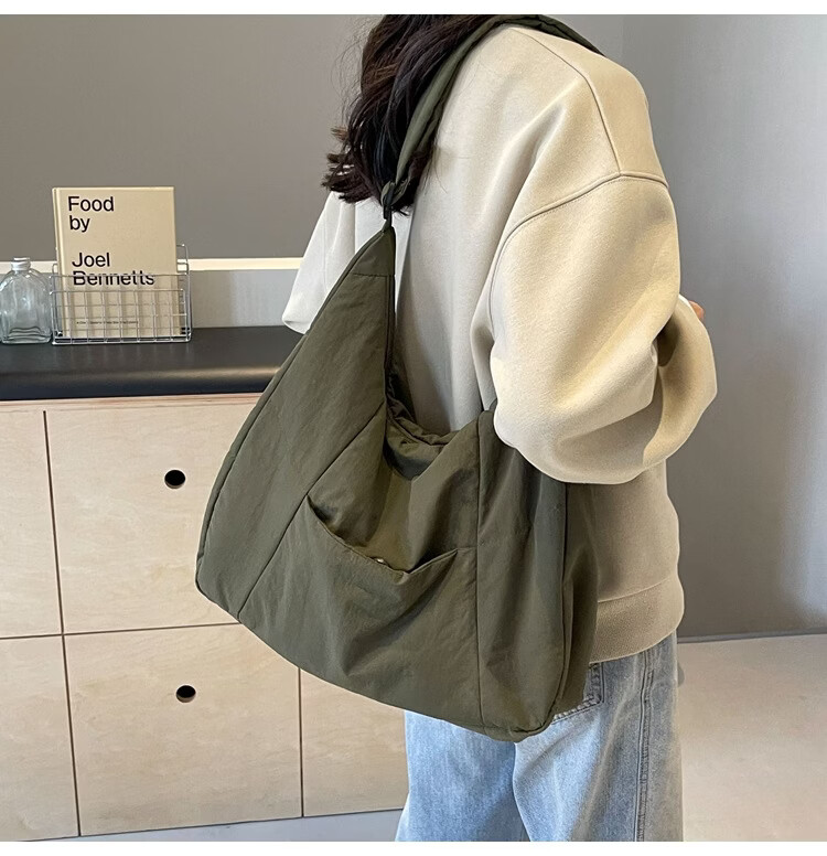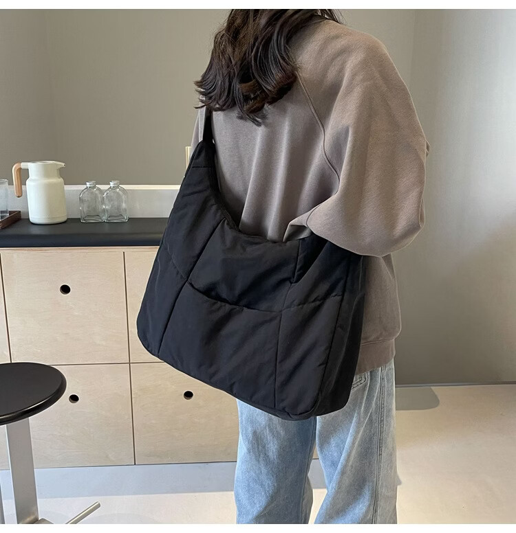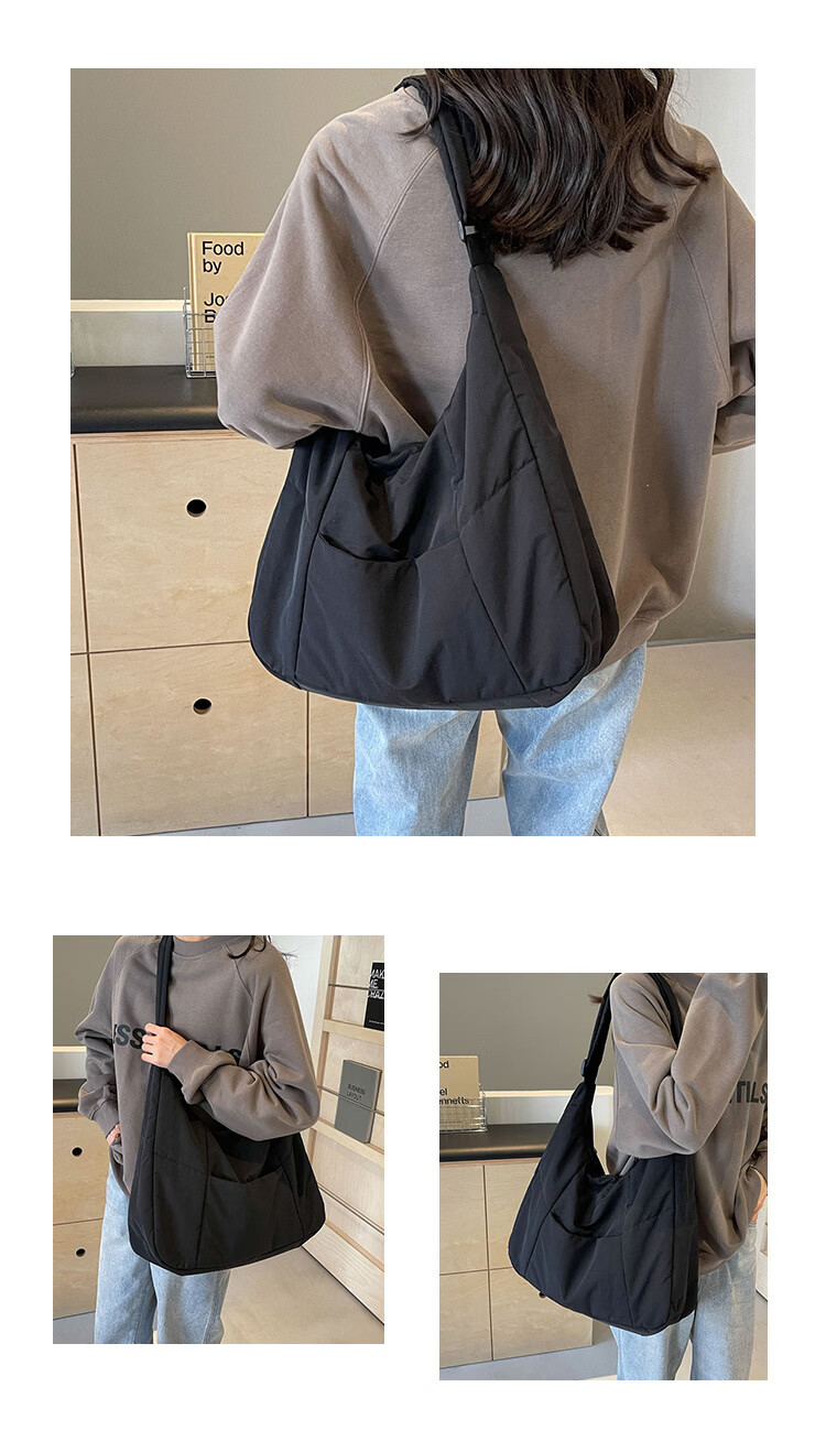 【精选】新款托特包女大学生上课斜挎包上班通勤单肩包尼龙布包棉 米白色
