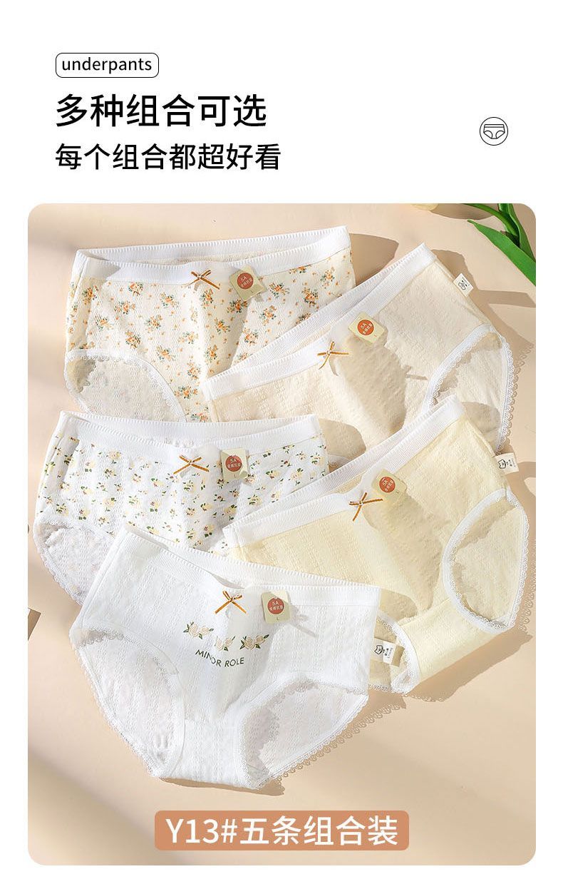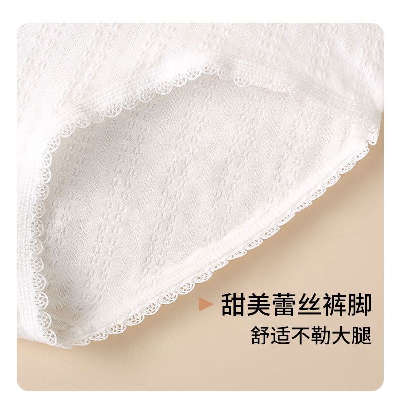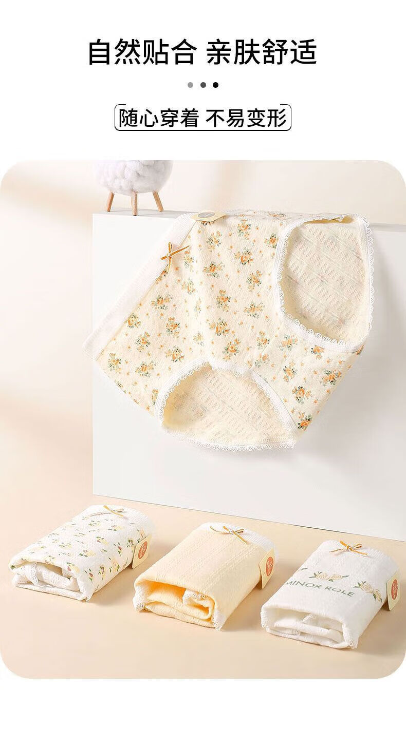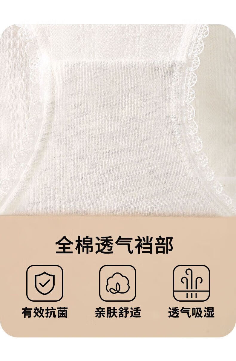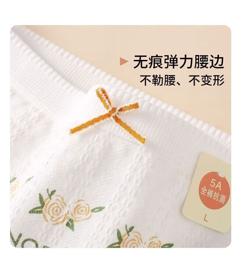 宜而爽婴儿棉纯棉内裤女5A抗菌中腰全裤档法式碎花蕾丝边女士三角裤 2白色碎花+2浅黄+2肤色+1白色玫瑰 7条 XL