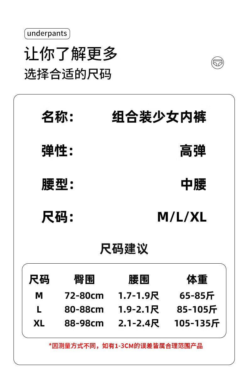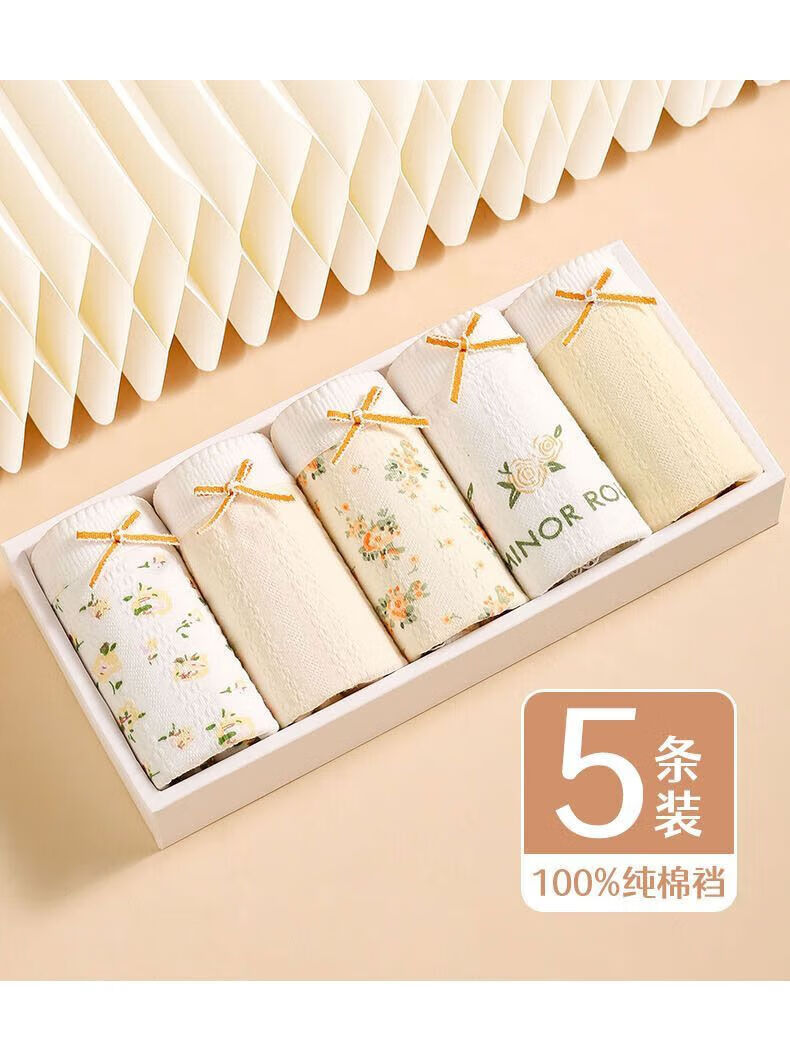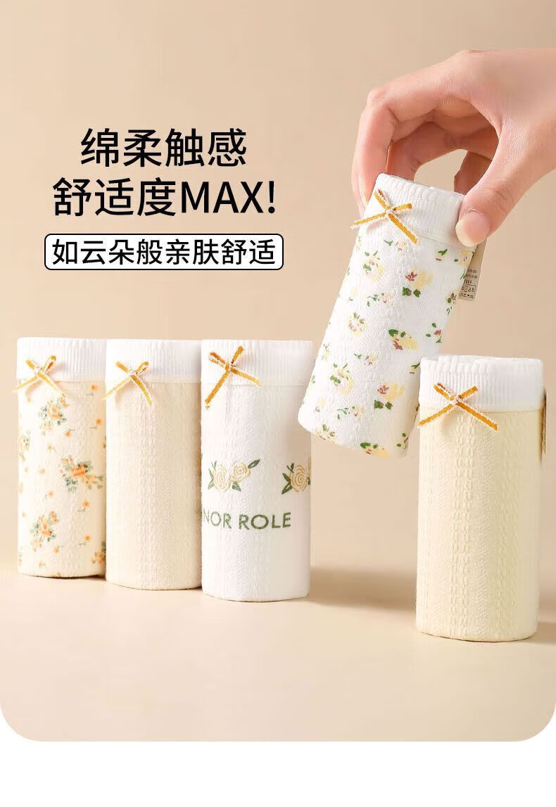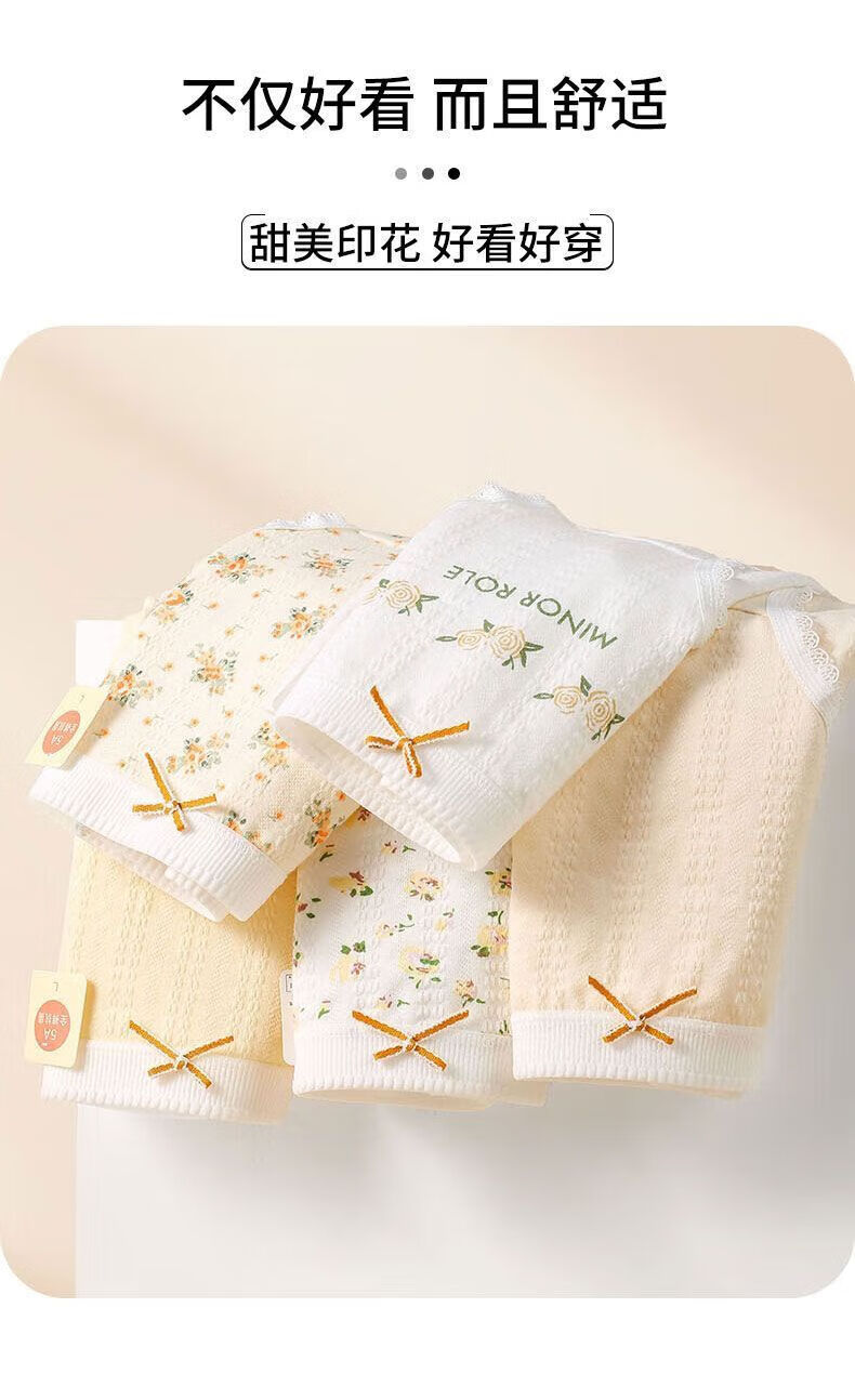 宜而爽婴儿棉纯棉内裤女5A抗菌中腰全裤档法式碎花蕾丝边女士三角裤 2白色碎花+2浅黄+2肤色+1白色玫瑰 7条 XL