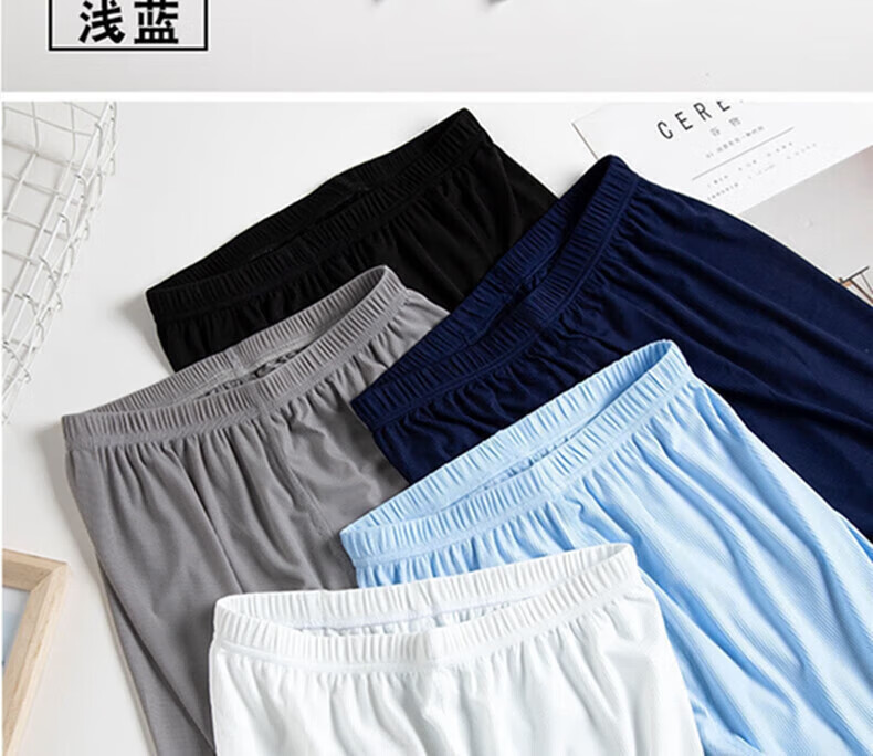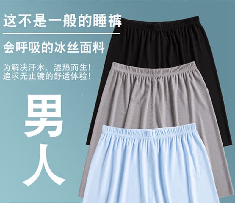 睡衣睡裤男夏季速干短裤冰丝透气可外穿沙滩休闲裤大码裤衩五分裤 灰色+白色 4XL