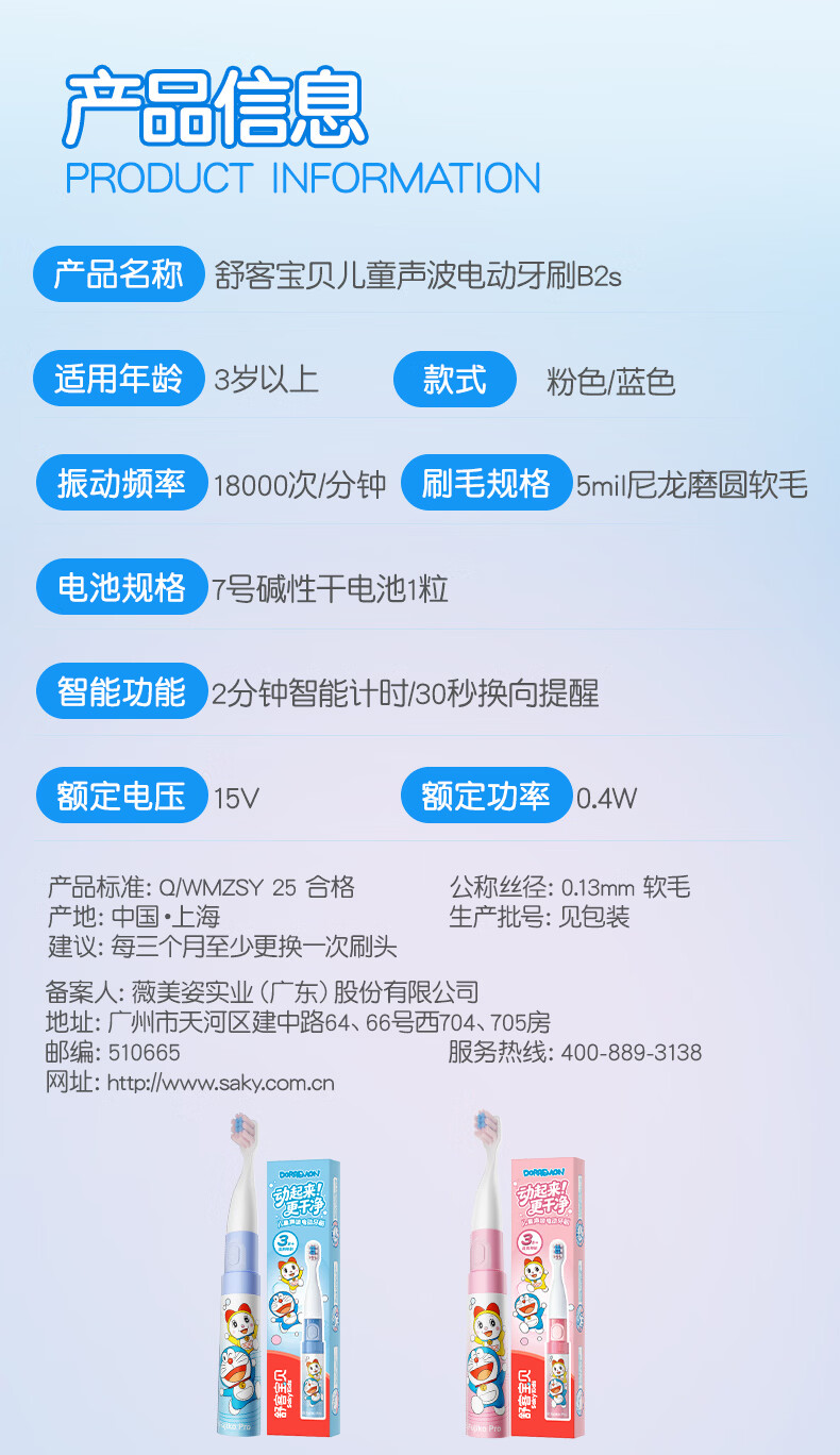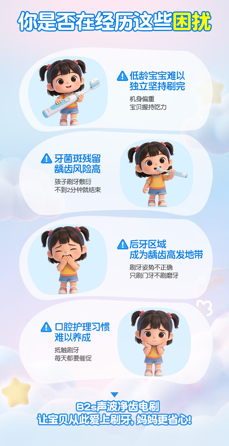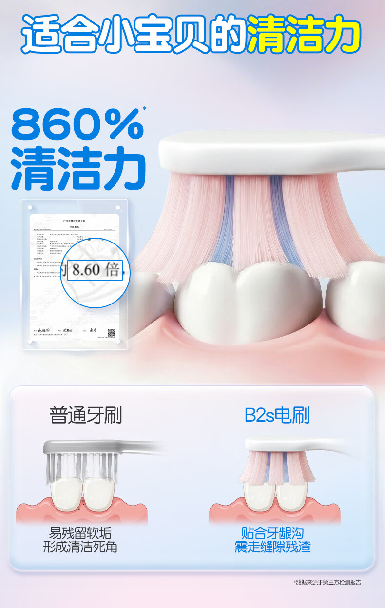 舒客宝贝B2s儿童电动牙刷3-6-12岁软毛高频振动清洁呵护牙龈儿童节日礼物 【黄金振频 不打牙不麻手】b2s蓝色高配版
