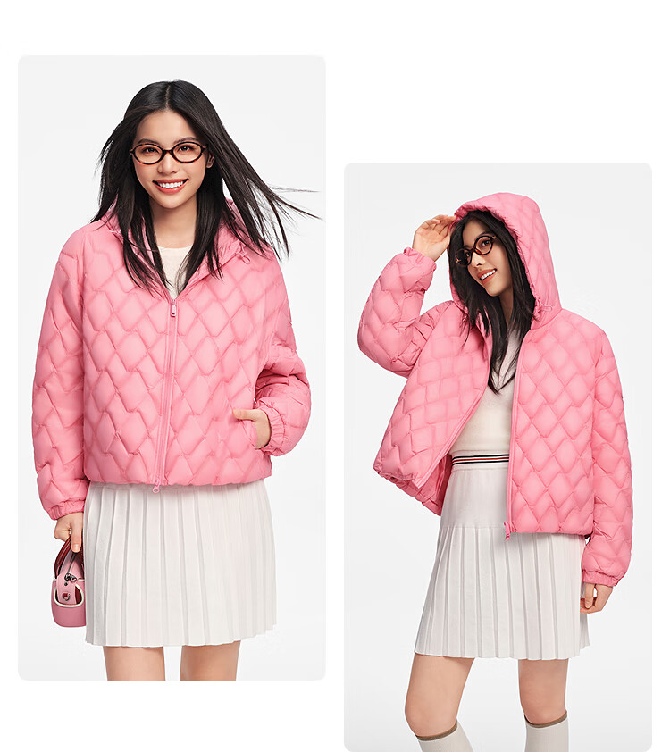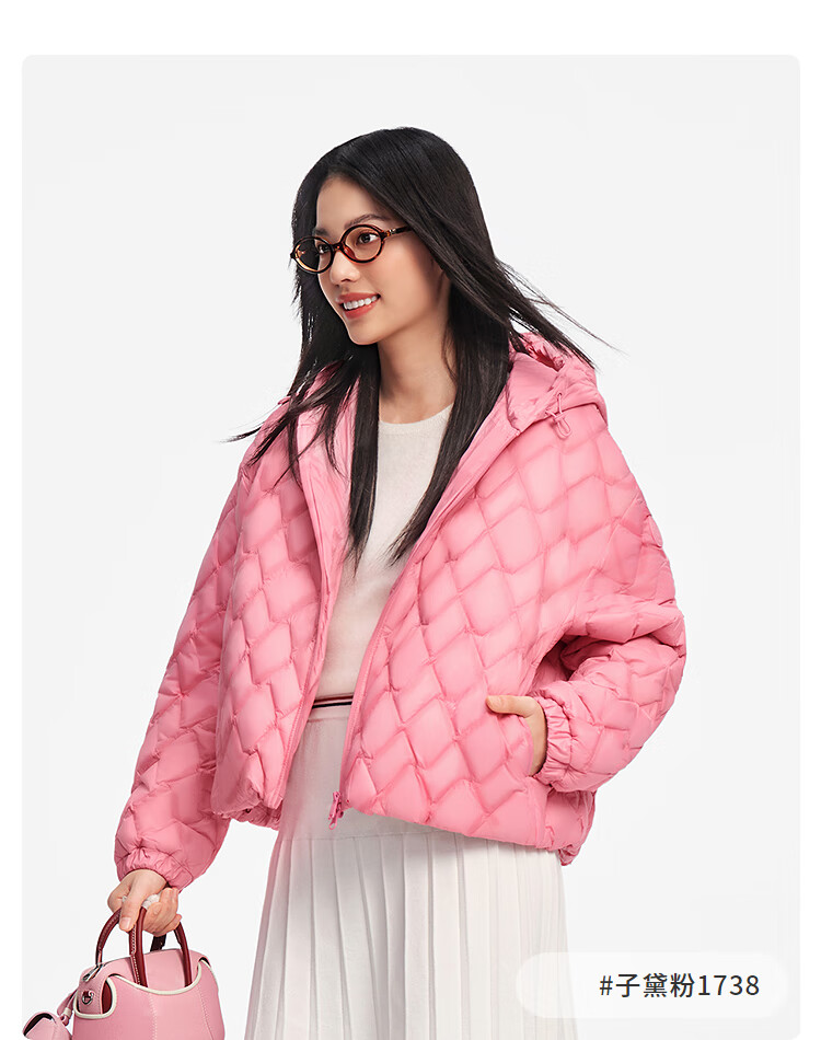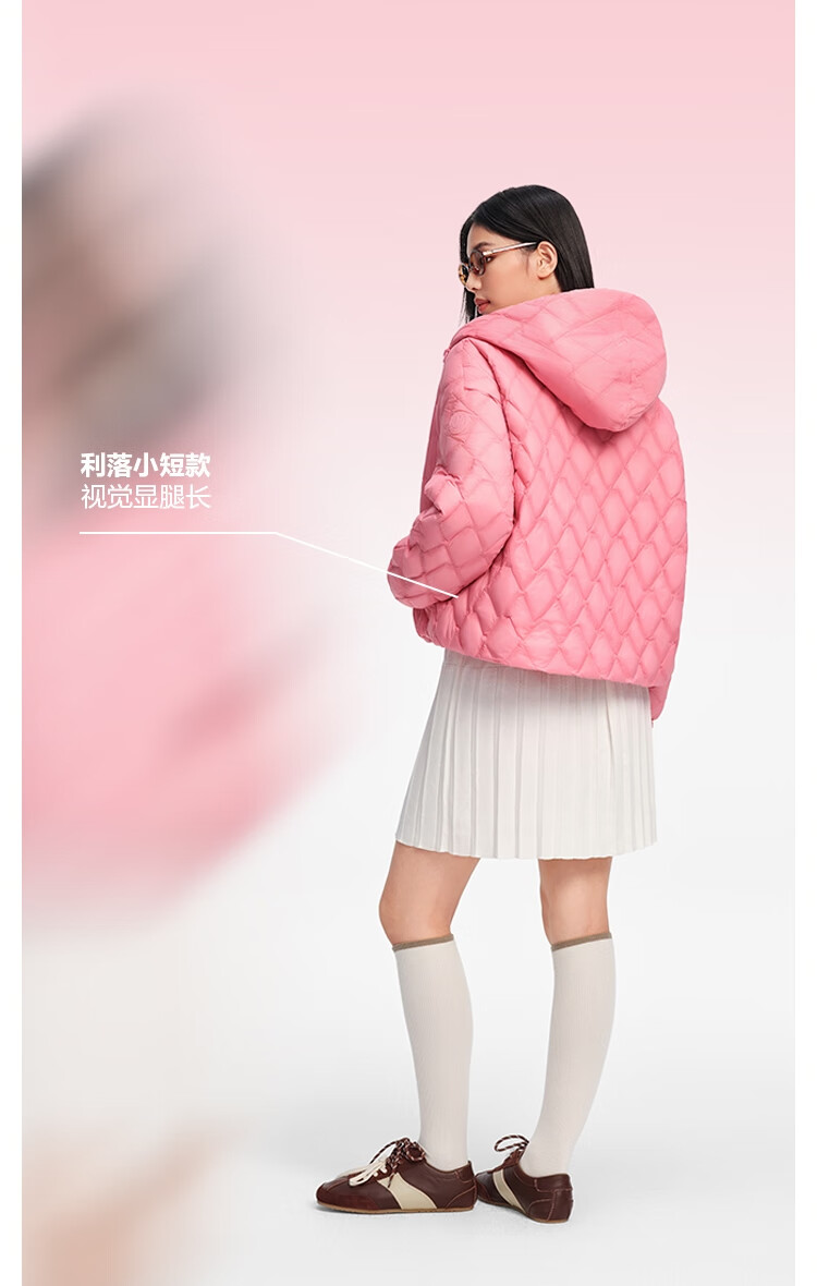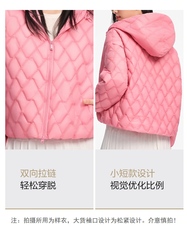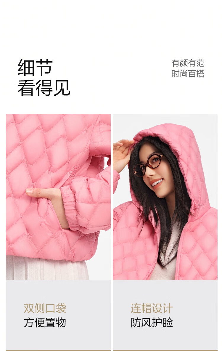波司登(BOSIDENG)新款轻薄羽绒服女短款90绒连帽菱格保暖防风羽绒外套 【店长推荐】日辉米7C94 S 160/84A 体重约110-125斤