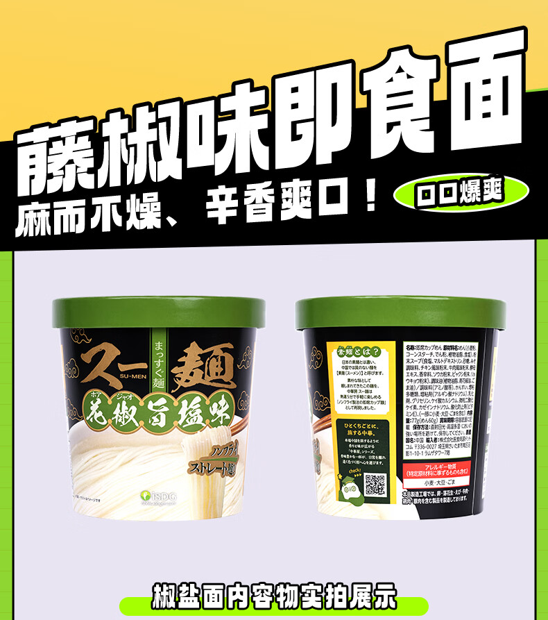 ISDG日本素面77g*12桶 日式椒盐味素面免煮方便面汤杯方便面速食食品