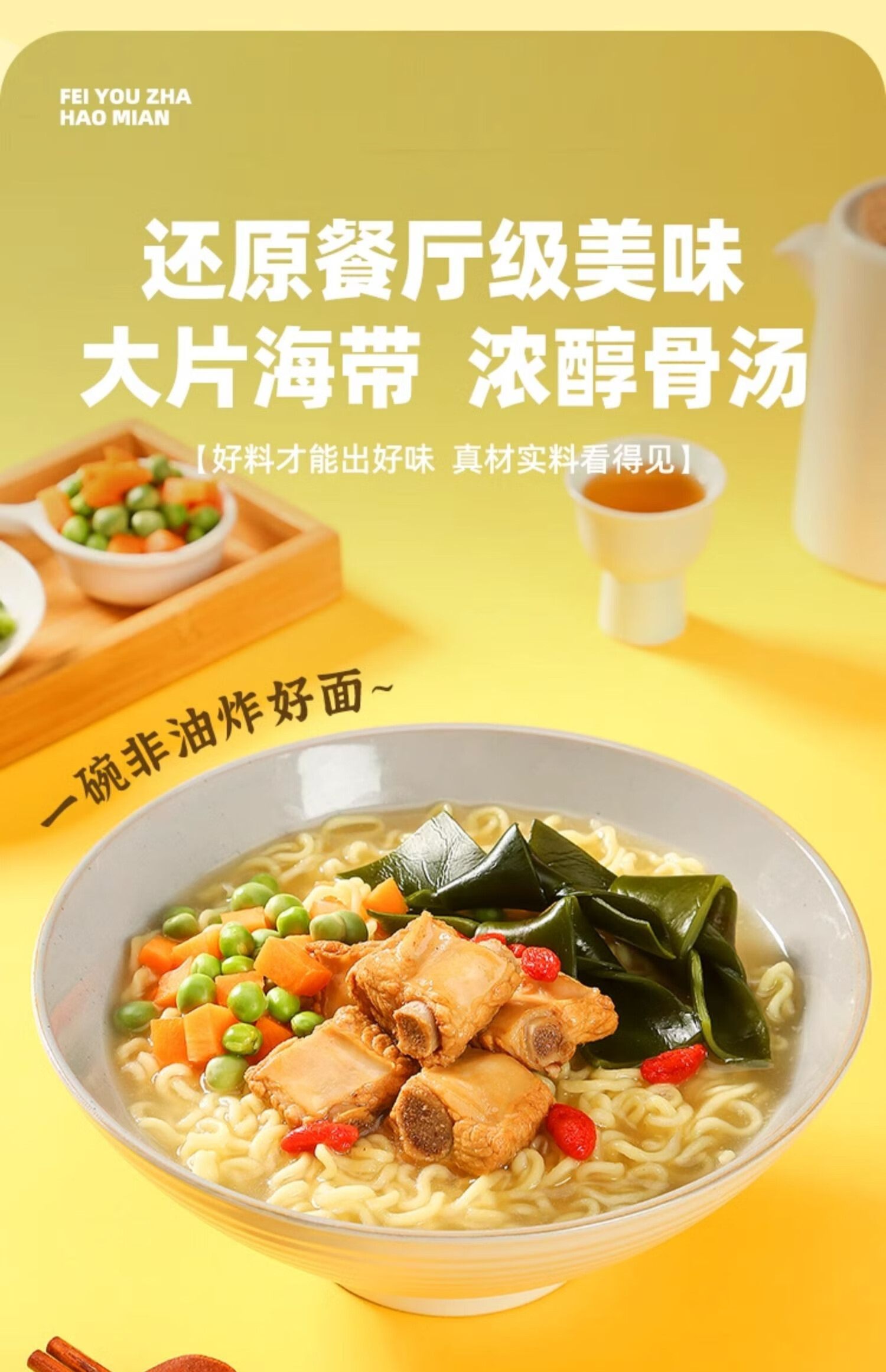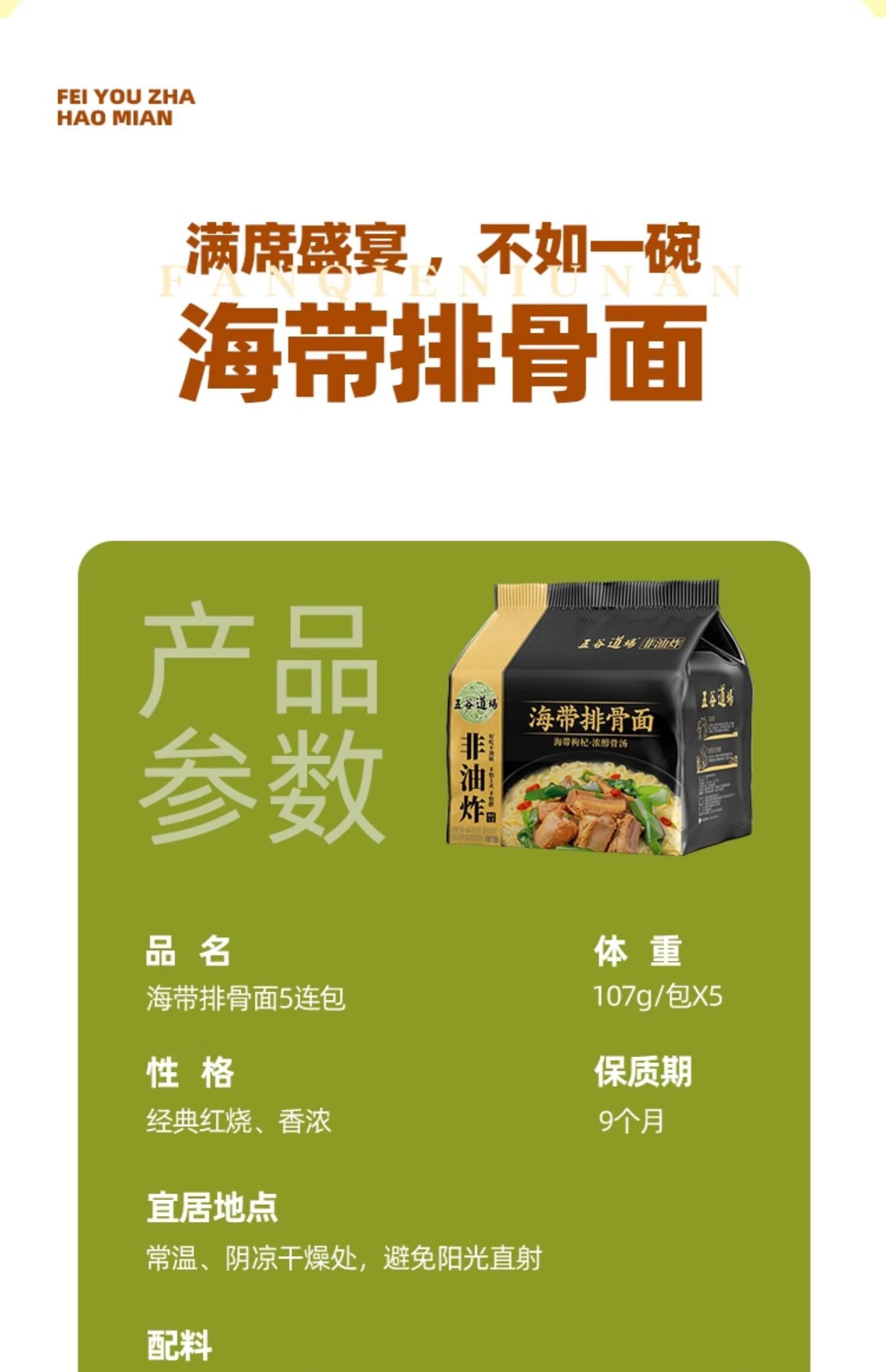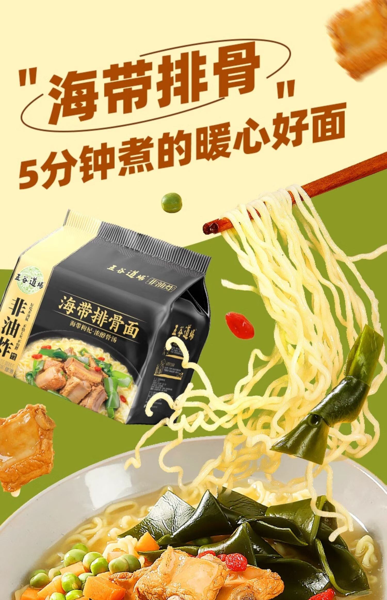 五谷道場非油炸方便面 海带排骨面五连包107gx5袋装 泡面 休闲零食