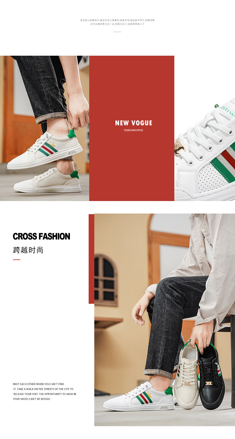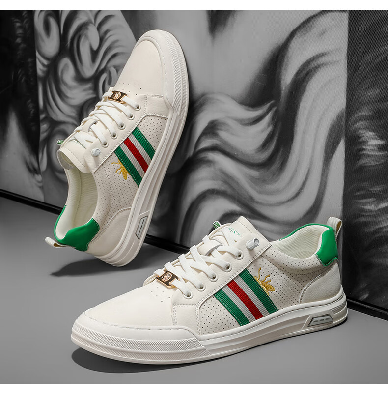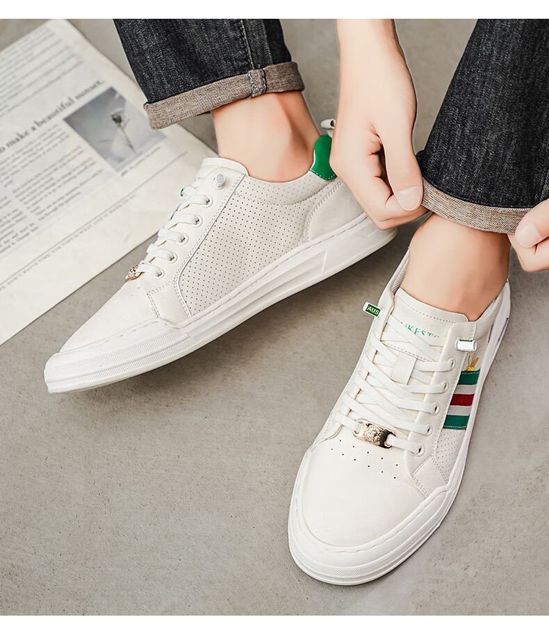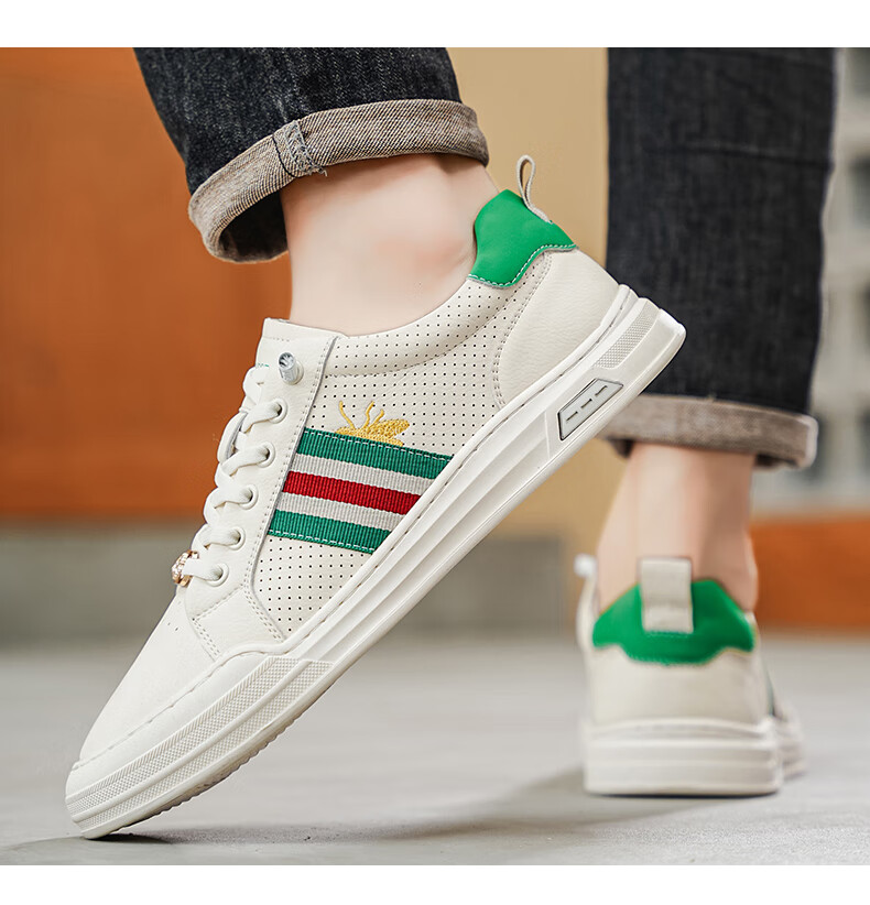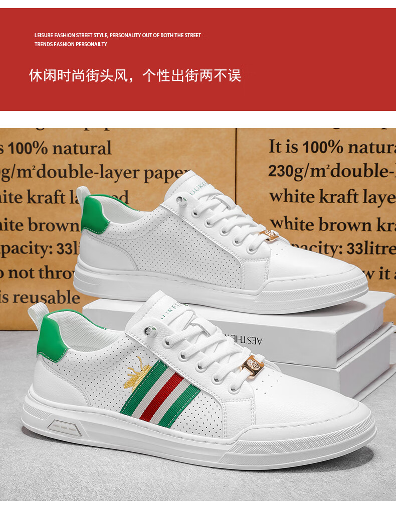 公爵斯顿 DUKESTON轻奢男鞋休闲板鞋鞋面透气孔设计简约时尚轻便百搭网面复古 米色 40 标准皮鞋尺码