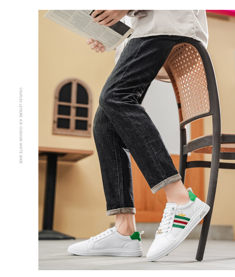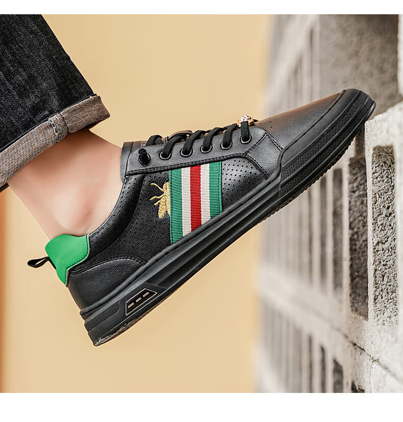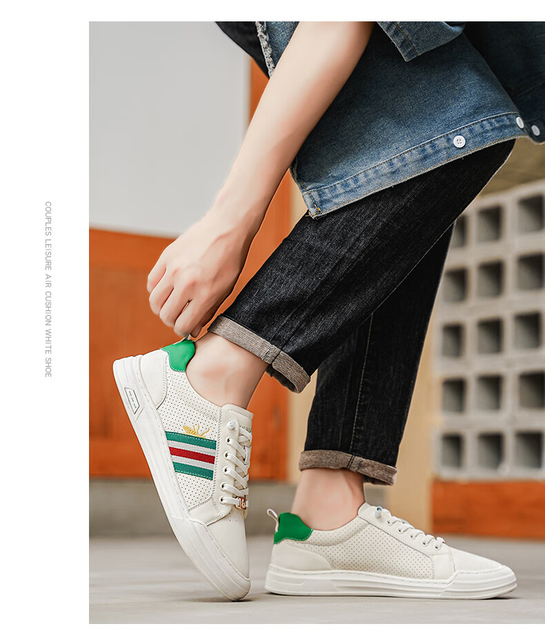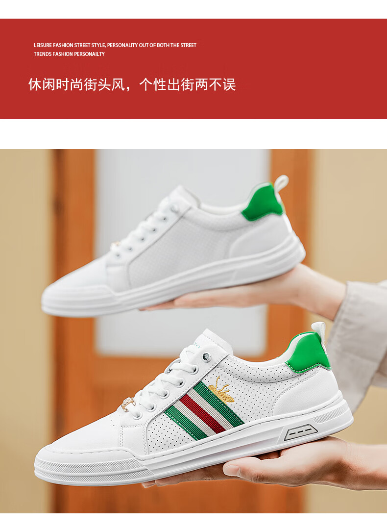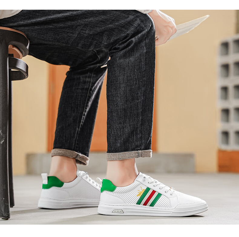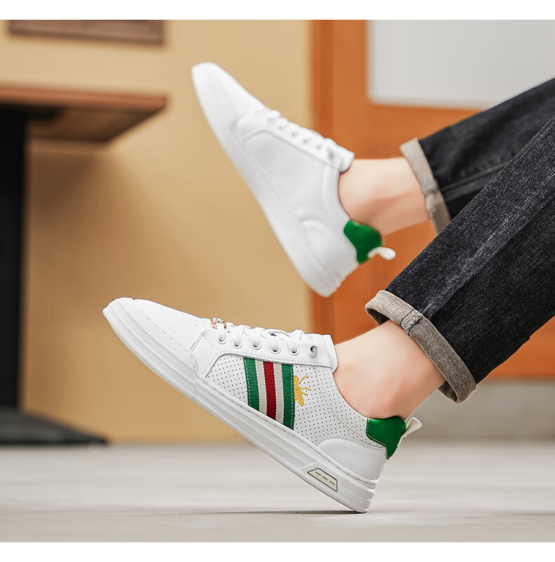 公爵斯顿 DUKESTON轻奢男鞋休闲板鞋鞋面透气孔设计简约时尚轻便百搭网面复古 米色 40 标准皮鞋尺码