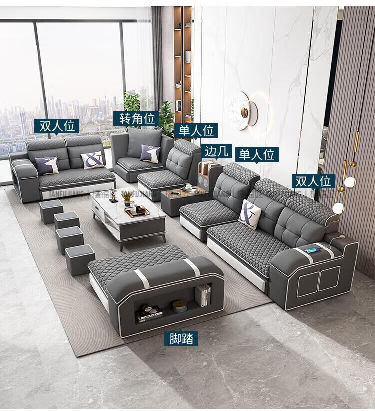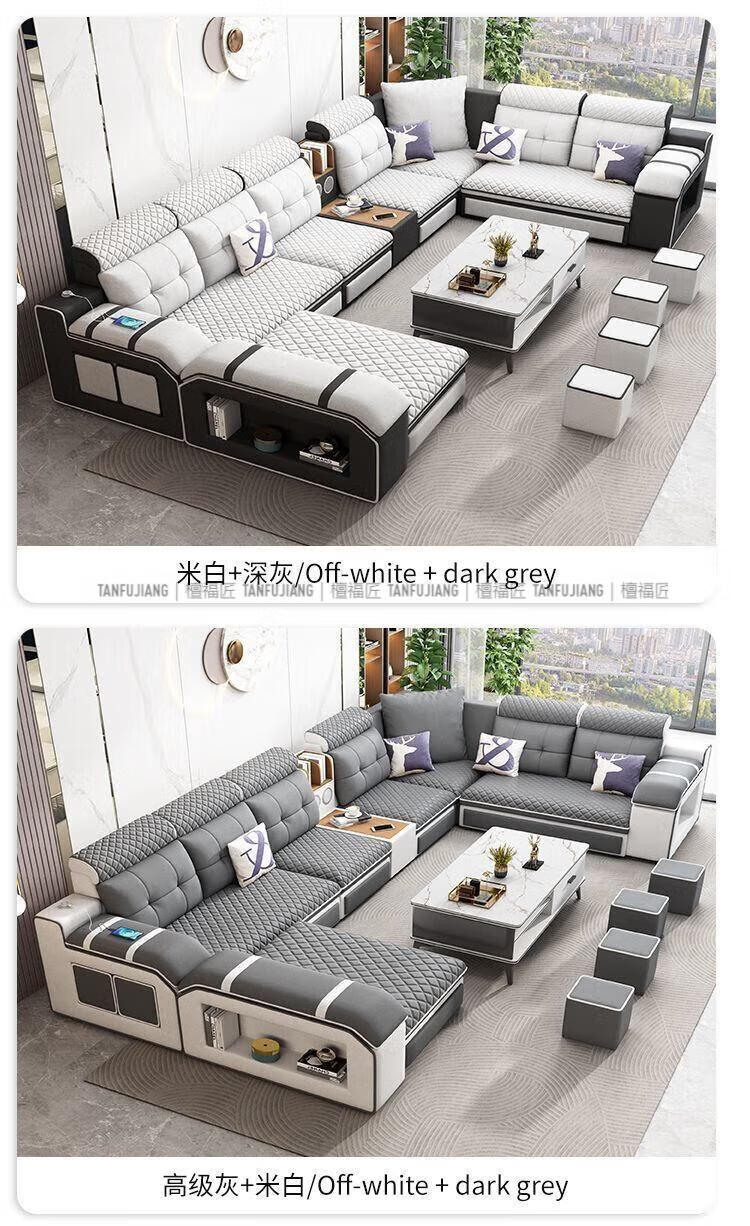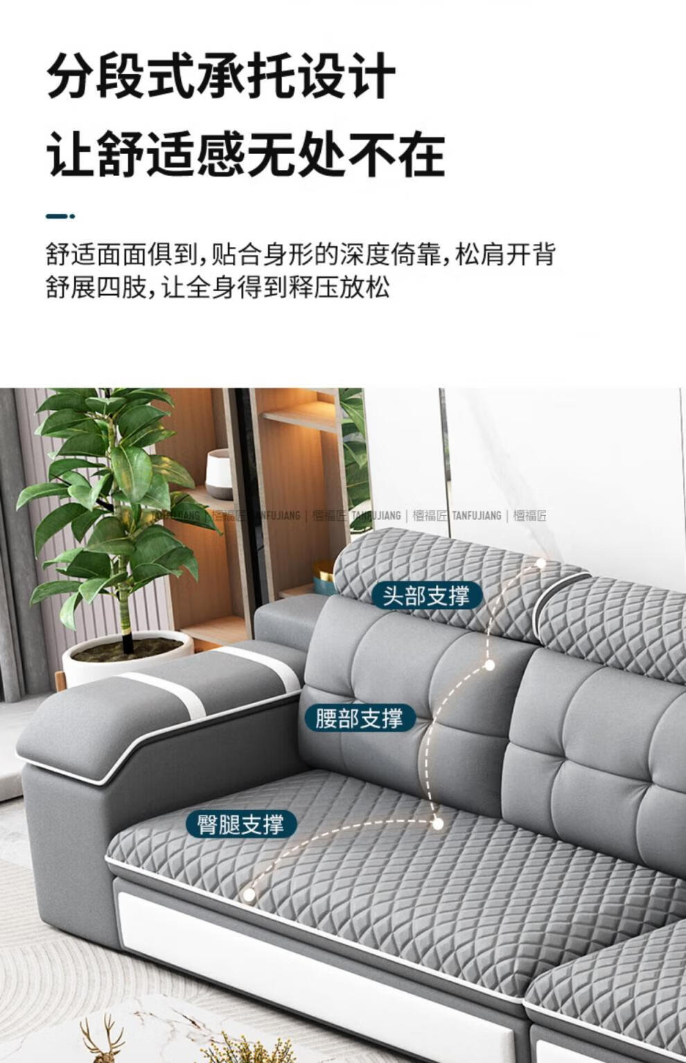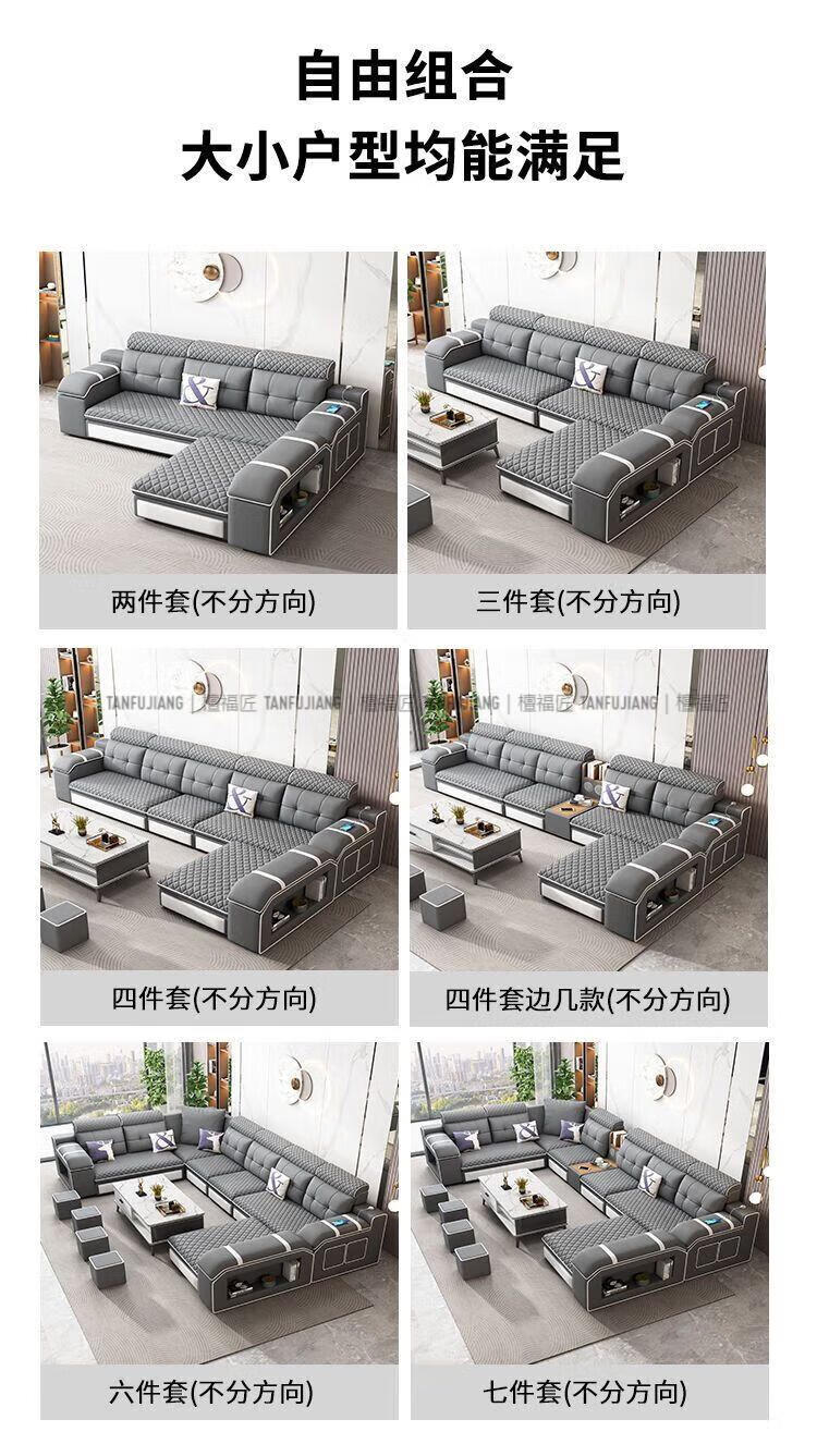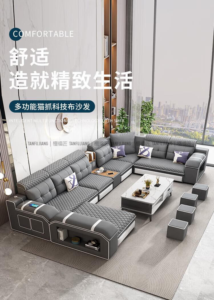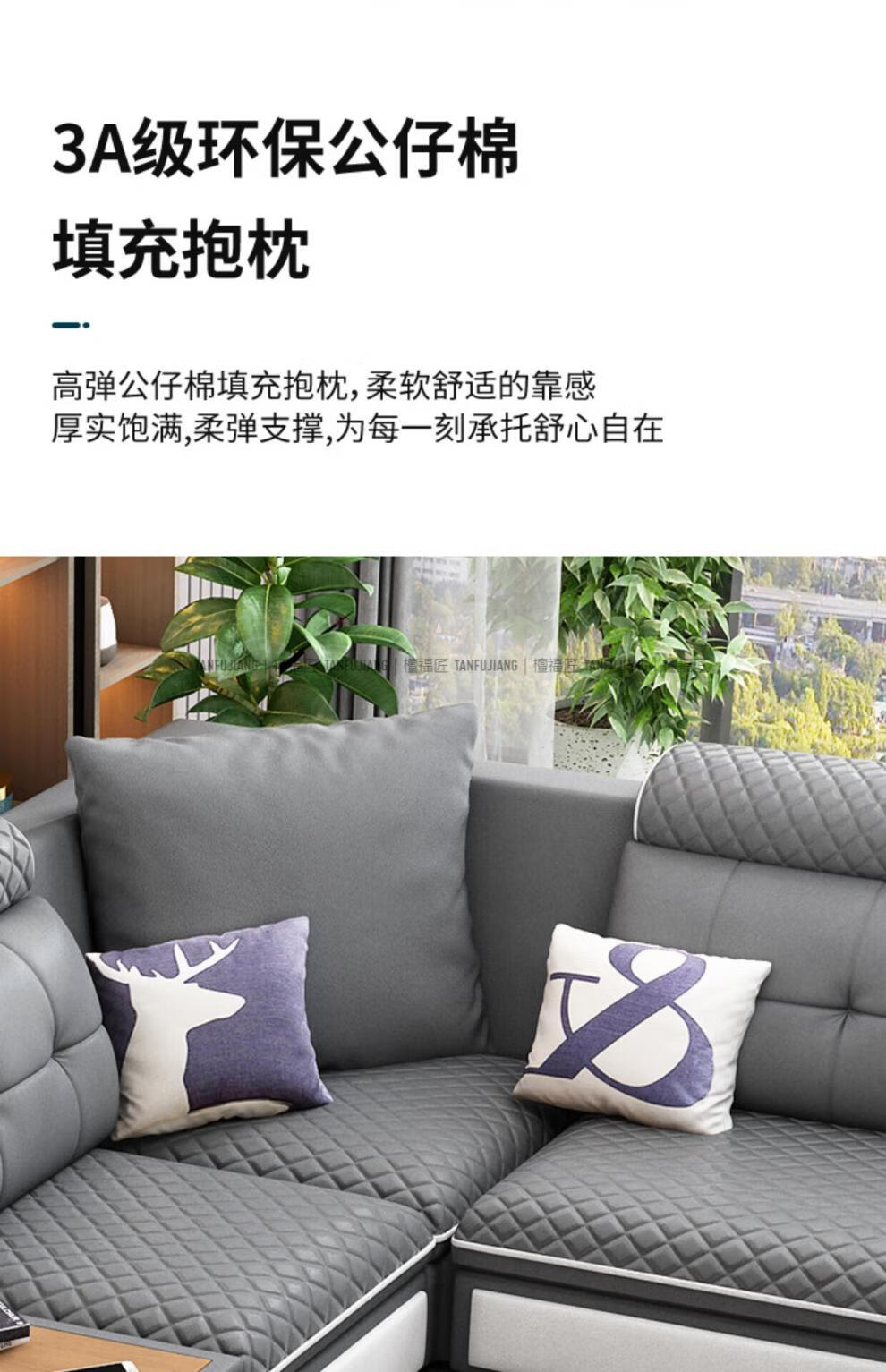 梵盛林2026新款沙发客厅简约现代大小户型可拆洗猫抓布沙发组合转角贵妃 七件套4米[送凳子] 猫抓科技布高回弹海绵座包