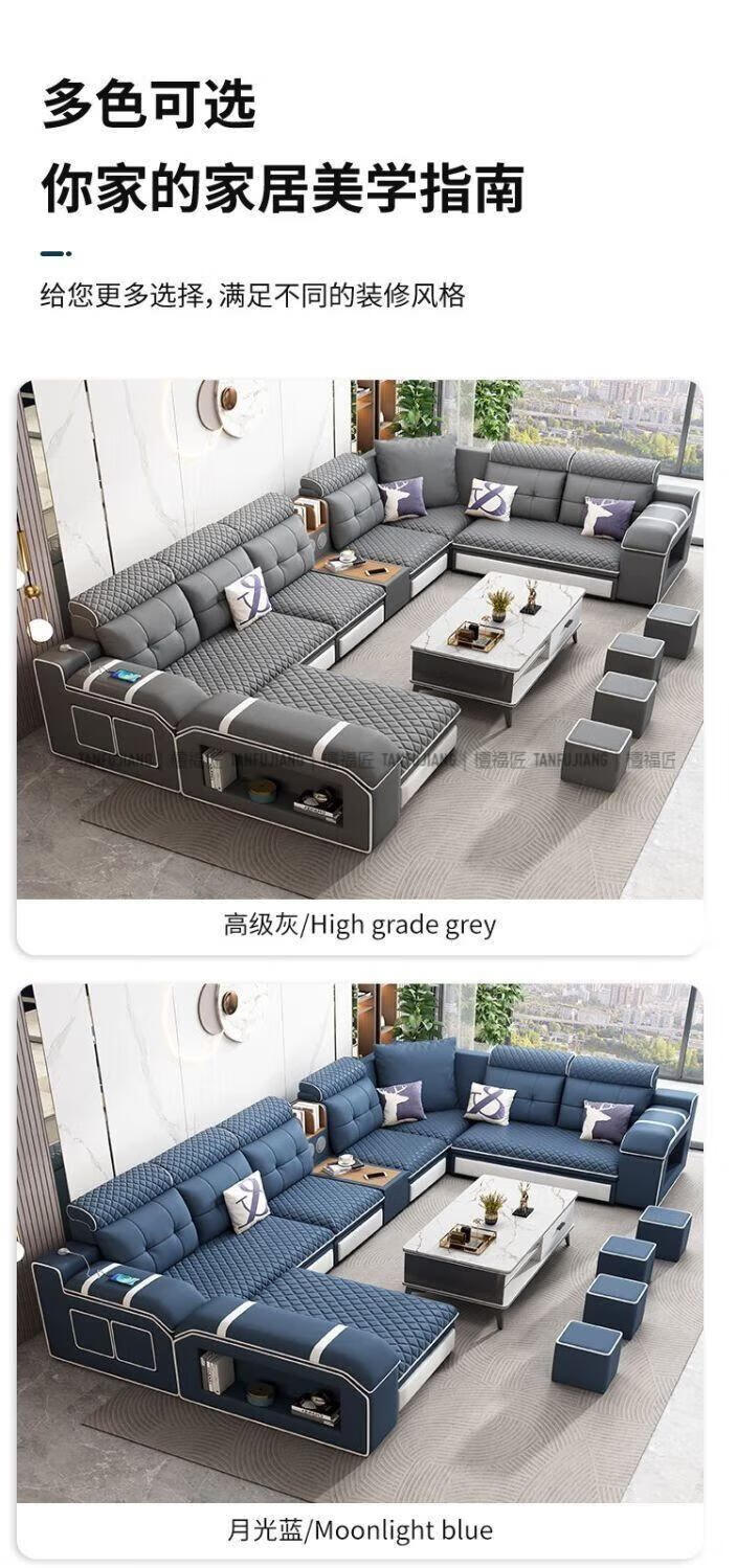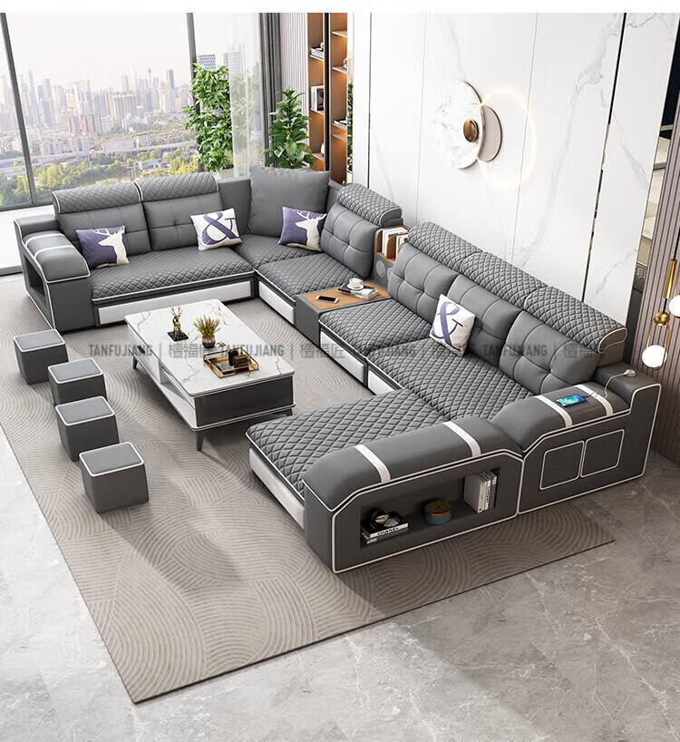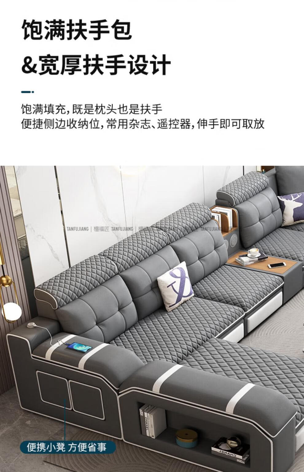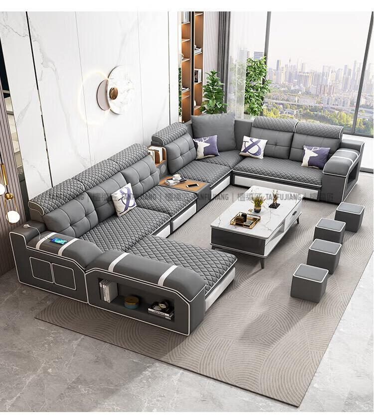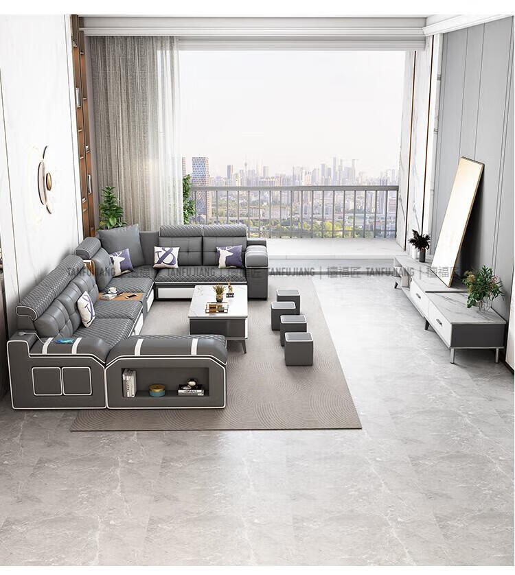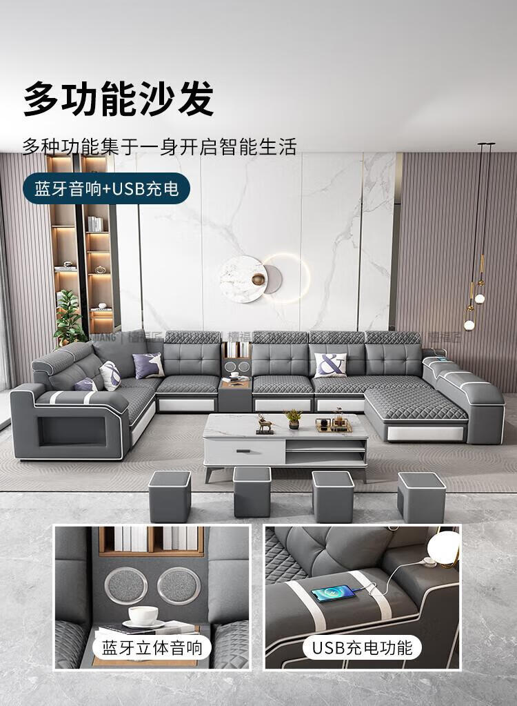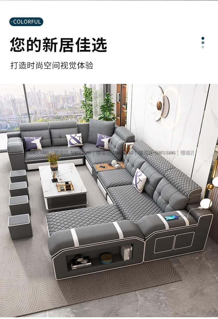 梵盛林2026新款沙发客厅简约现代大小户型可拆洗猫抓布沙发组合转角贵妃 七件套4米[送凳子] 猫抓科技布高回弹海绵座包