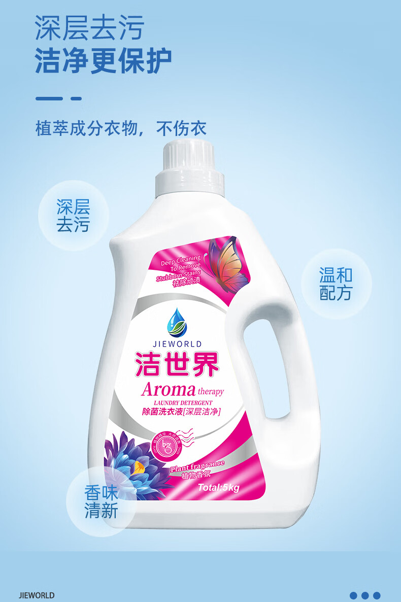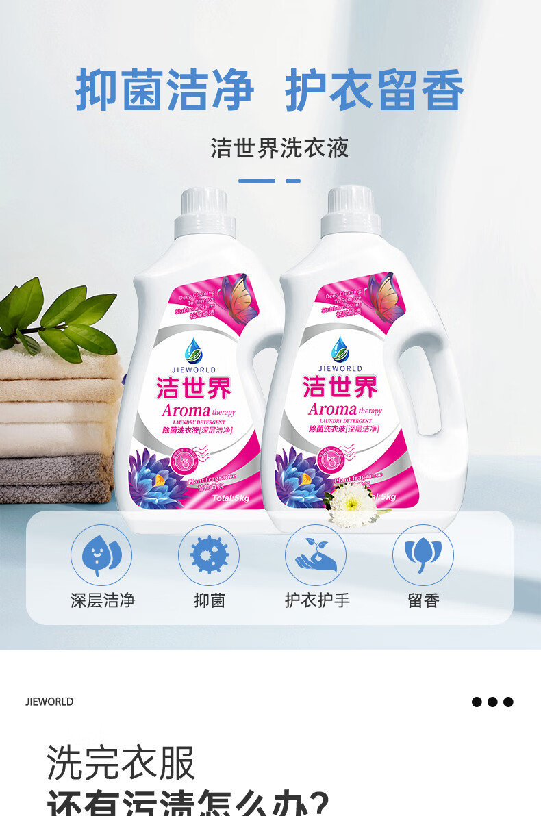 洁世界洗衣液香氛10斤抑菌除螨洗衣液持久留香手洗机洗家庭款大桶装 花香型 【 一瓶大容量】深层洁净洗衣液5kg*1瓶