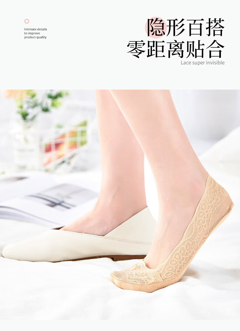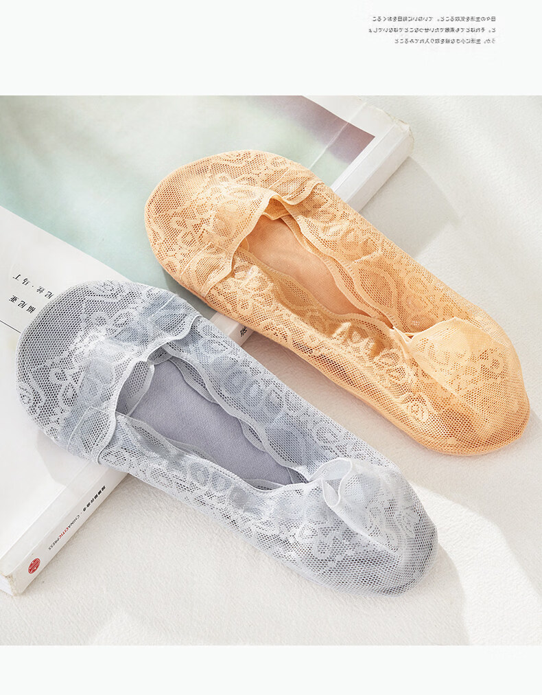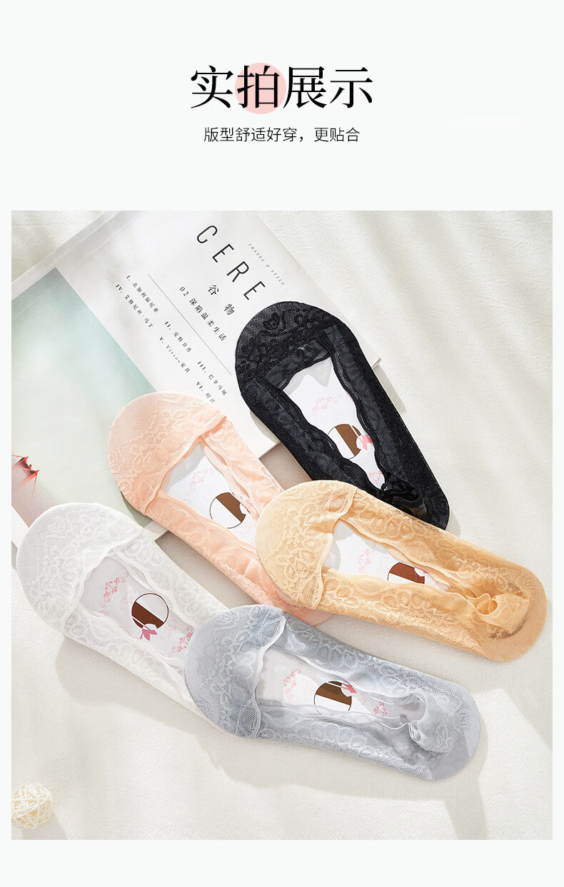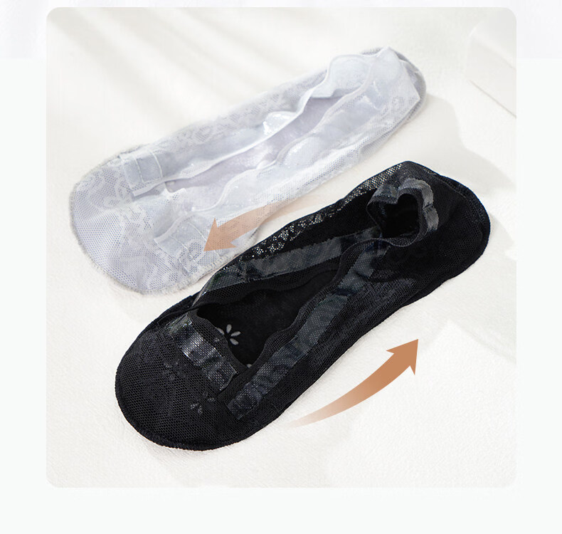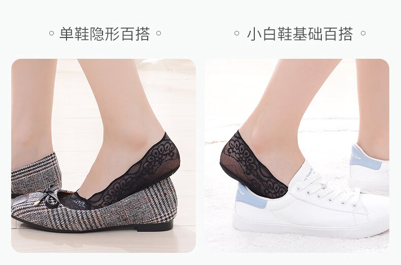 贝可棉袜子女隐形浅口防滑不掉跟隐形女士高跟鞋袜子单鞋脚底专用丝袜 蕾丝隐形袜5双(黑3肤2) 34-39码