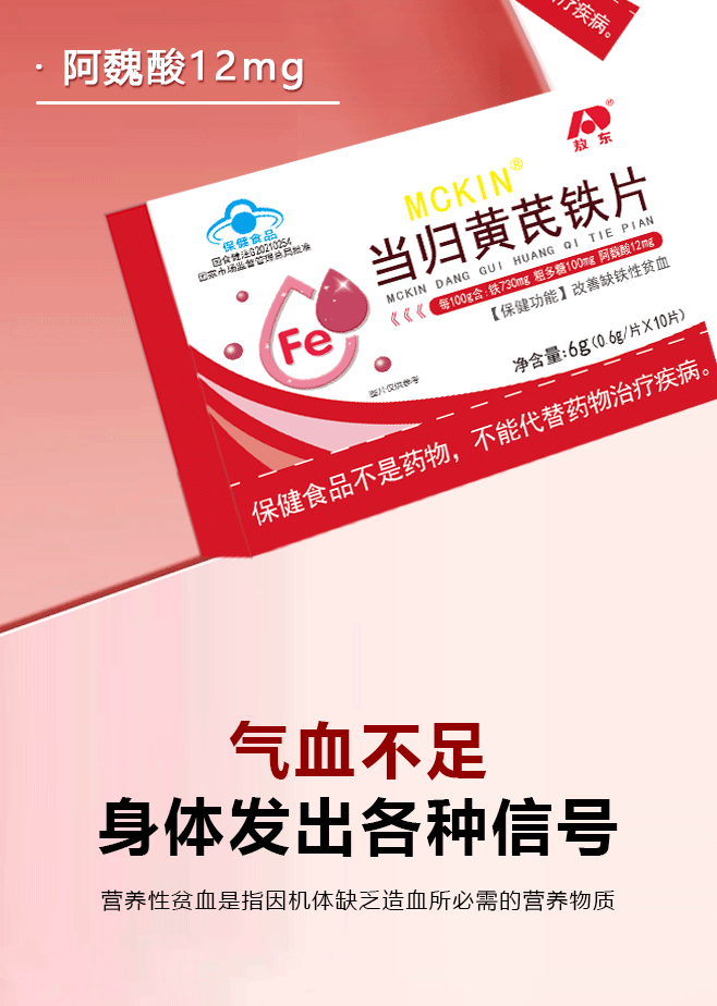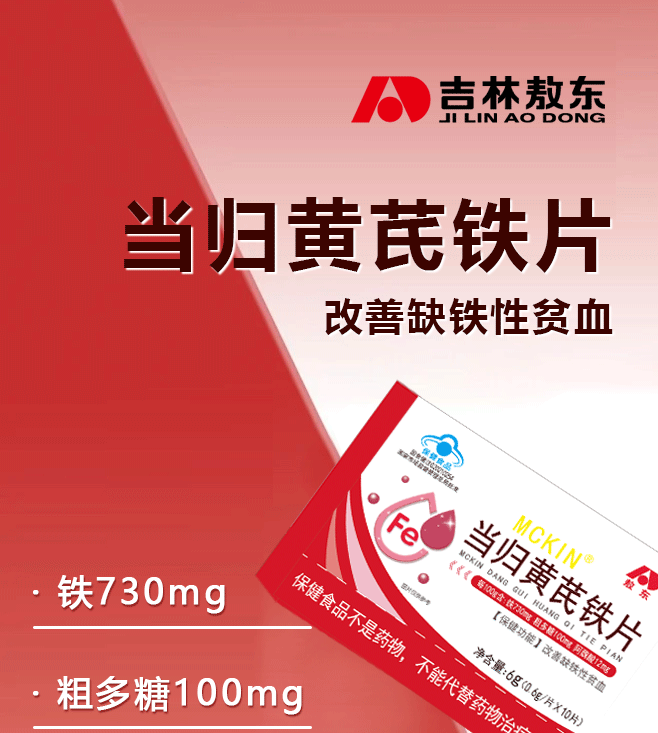 敖东 当归黄芪铁片 0.6g*10片/盒 改善缺铁性贫血 适宜缺铁性贫血者 5盒装