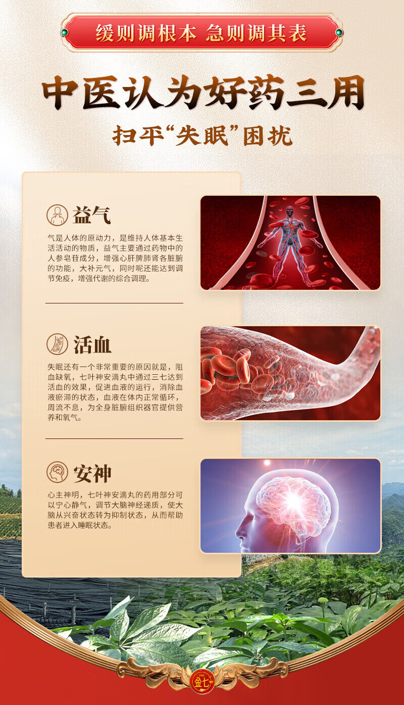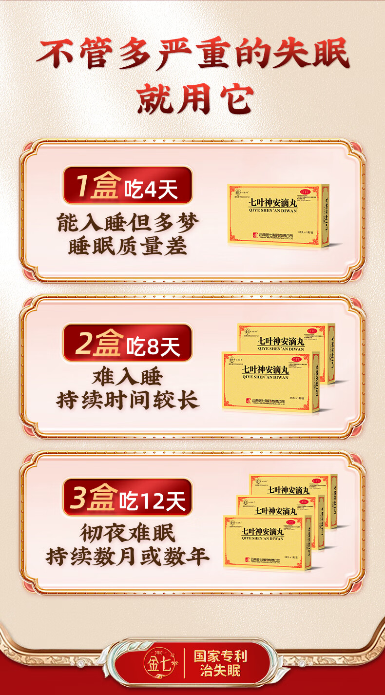 [金七]七叶神安滴丸 50mg*36丸 2盒装 专利国药治疗失眠 益气安神活血止痛 用于心气不足失眠心悸多梦易醒 调理失眠