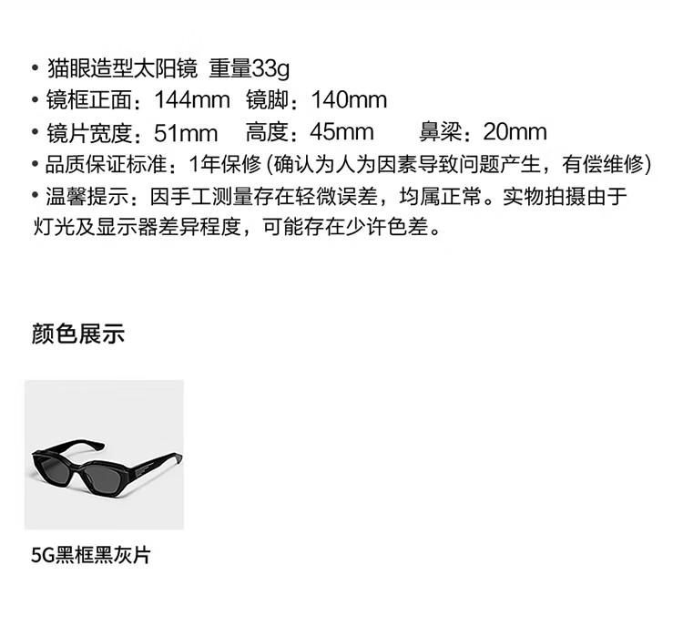 贝尔莎(bertha)墨镜男猫眼女高级感近视太阳眼镜防晒带度数的墨镜 Copern 冷酷黑