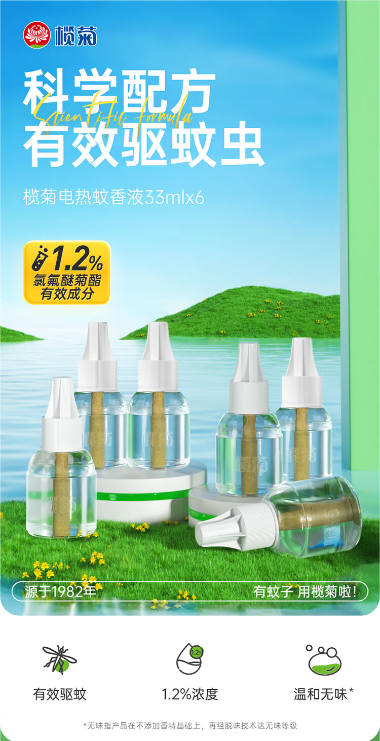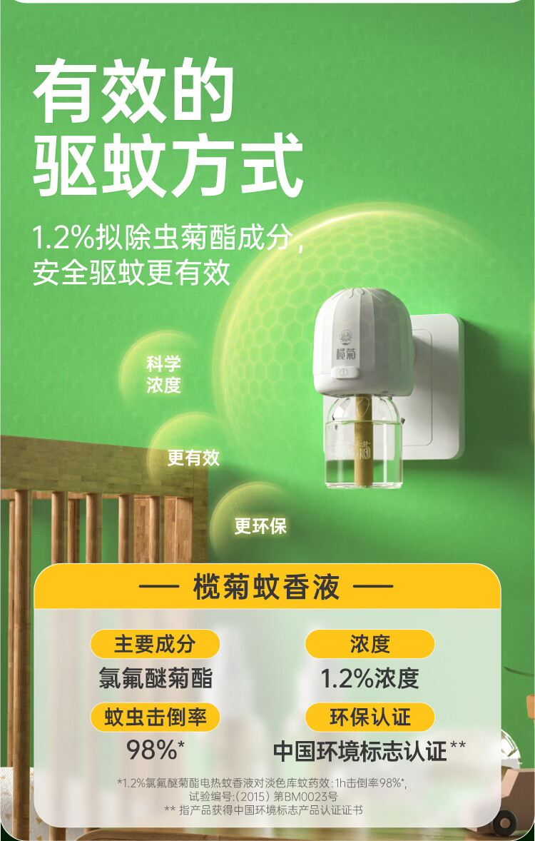 榄菊电蚊香液驱蚊室内插电式灭蚊液家用强效无烟无味驱蚊液补充装 【定时数显】花香3瓶+1器(带花枝)