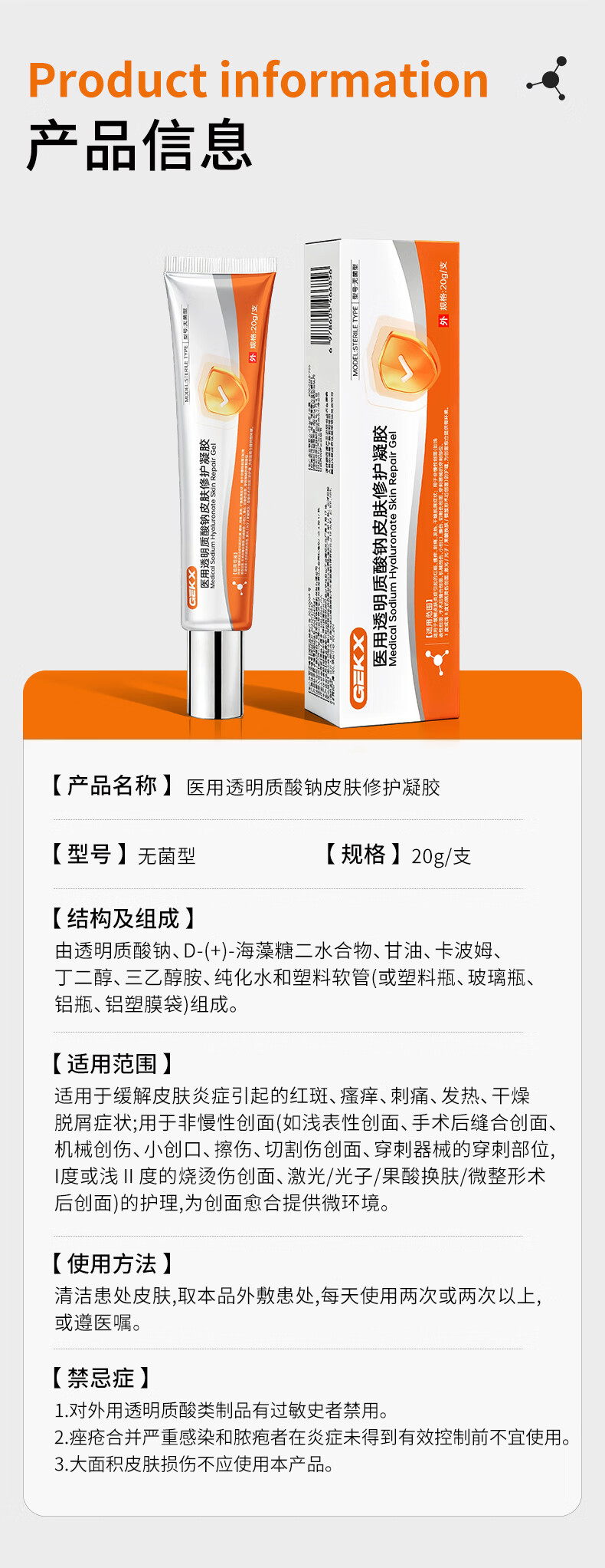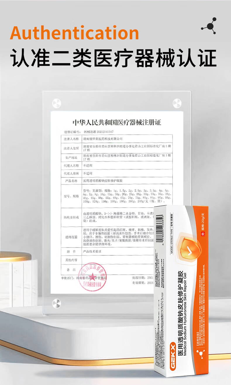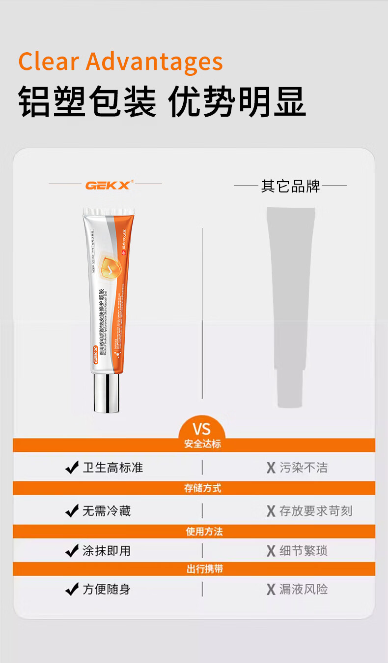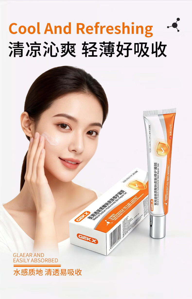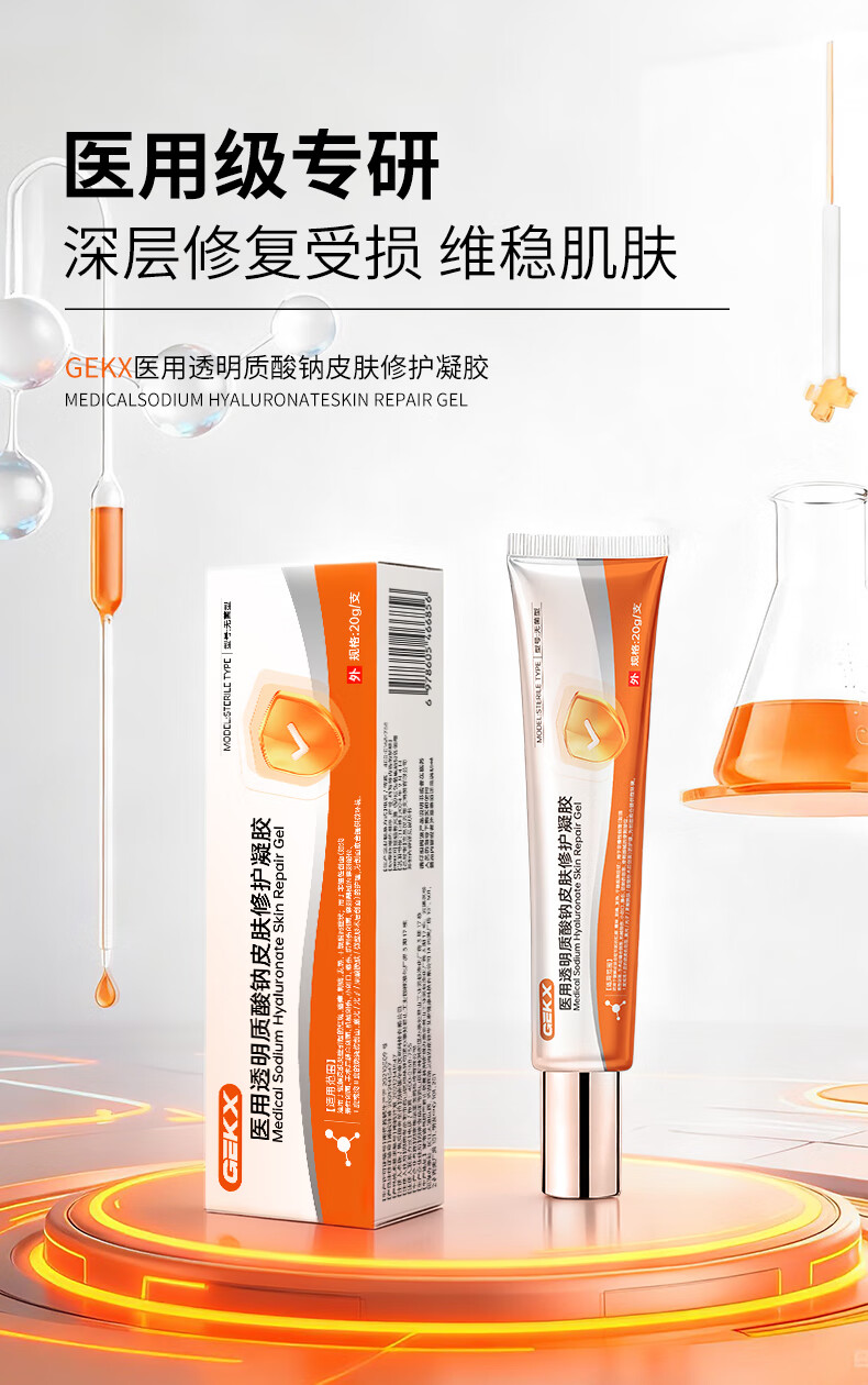 GEKX医用透明质酸钠修护凝胶皮肤优恒eokk凝胶aekz护理膜qpoo修复凝胶 1盒装【赠补水喷雾1支】院线同款