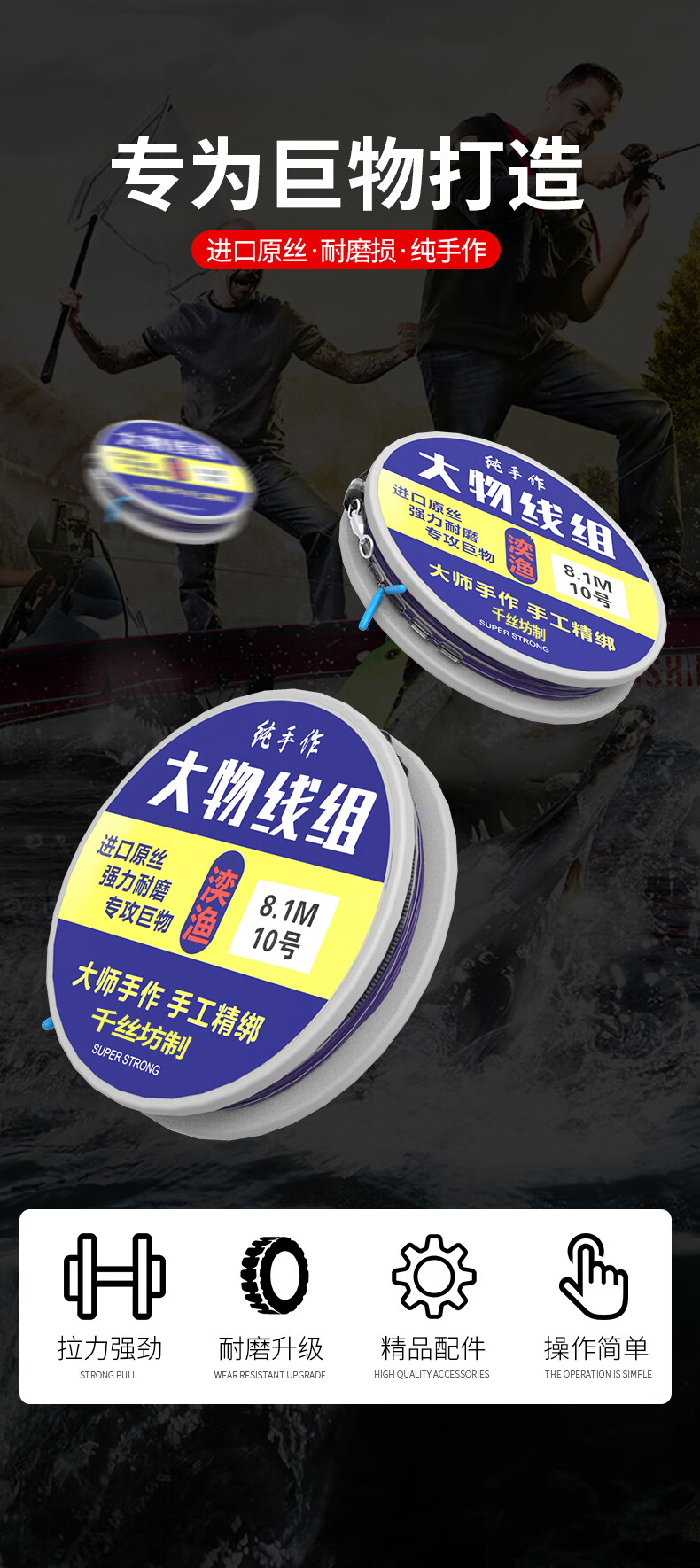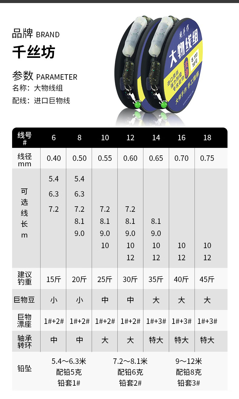 千丝坊大物线组套装青鲟巨物线组绑好的子线双钩成品配套钓鱼主线组 7.2米 大物主线组 +大物子线双钩 8号主线【2卷树脂盒装】