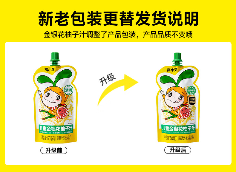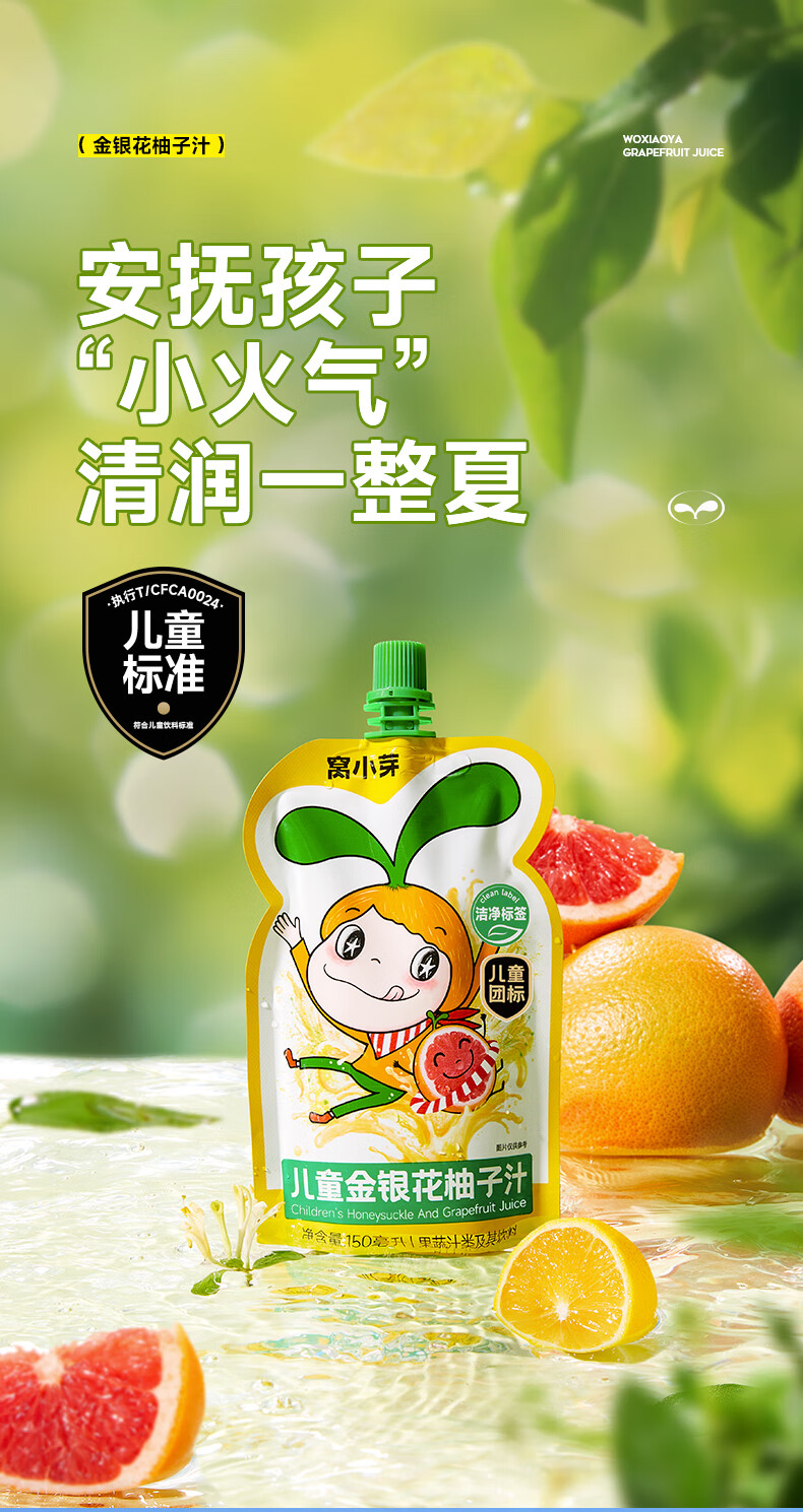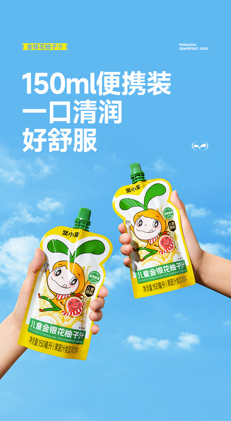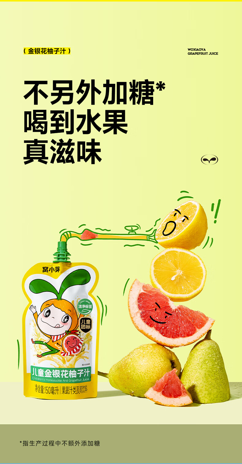 窝小芽金银花柚子汁1.5L(10袋)整箱 礼盒装 儿童饮料无添加果汁饮品