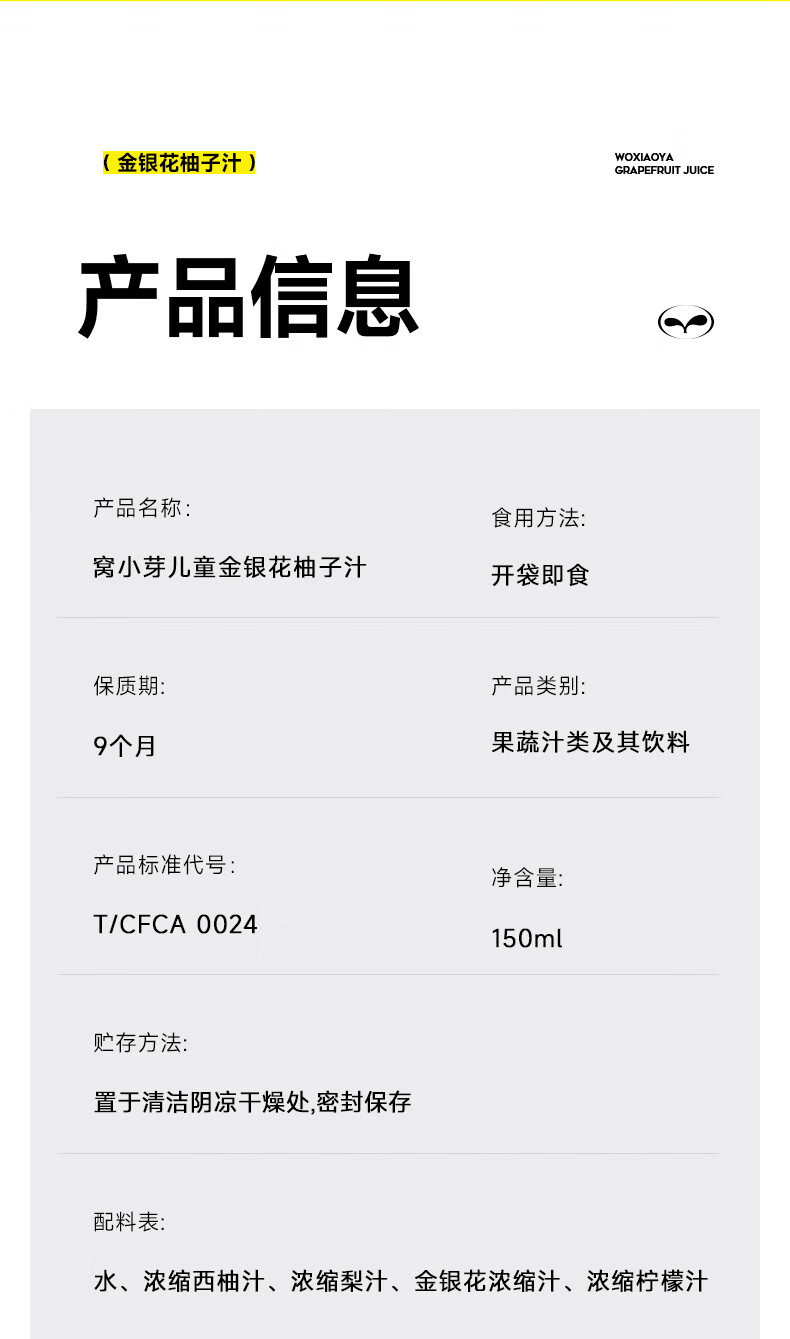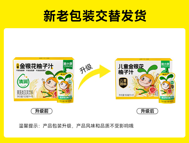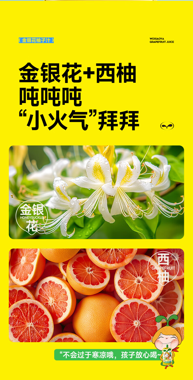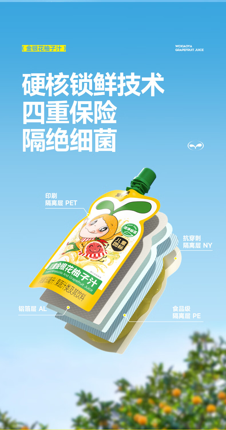 窝小芽金银花柚子汁1.5L(10袋)整箱 礼盒装 儿童饮料无添加果汁饮品