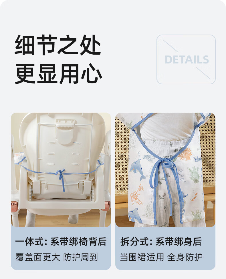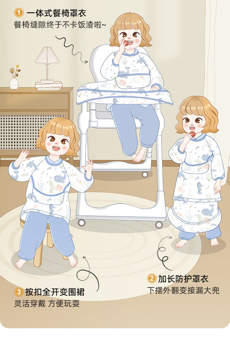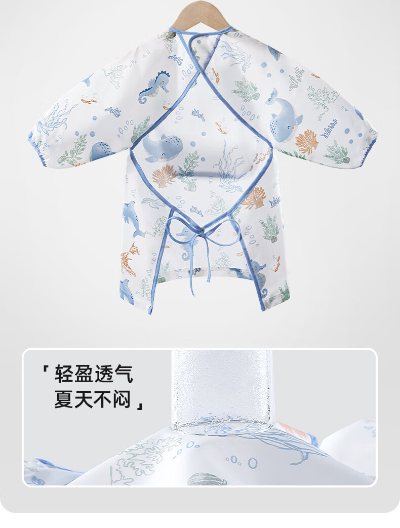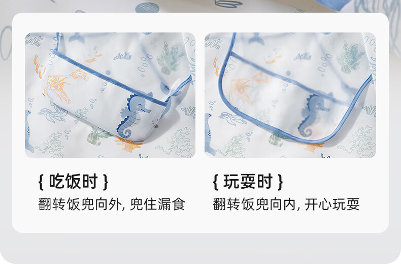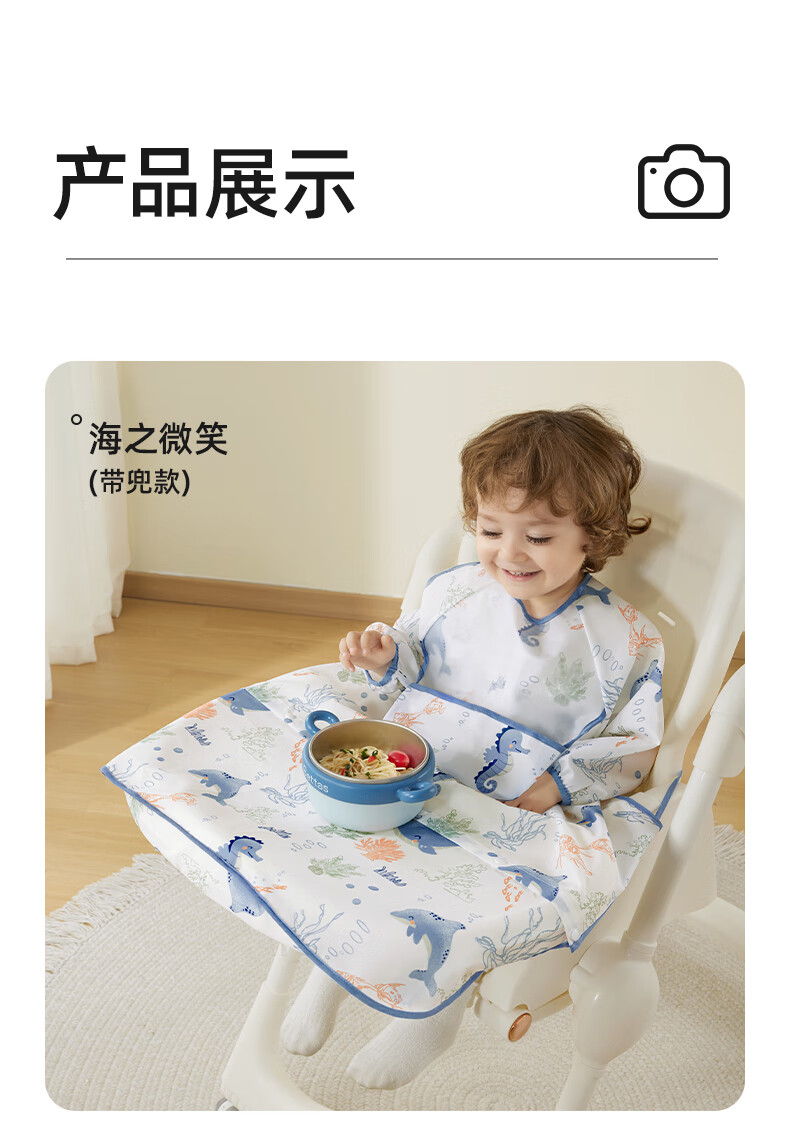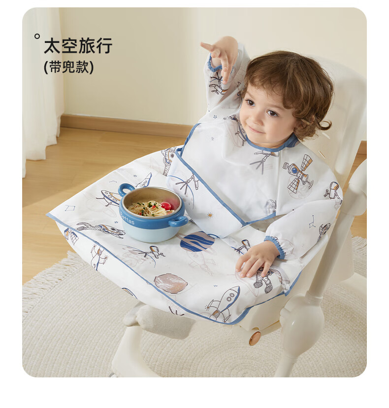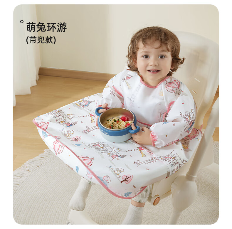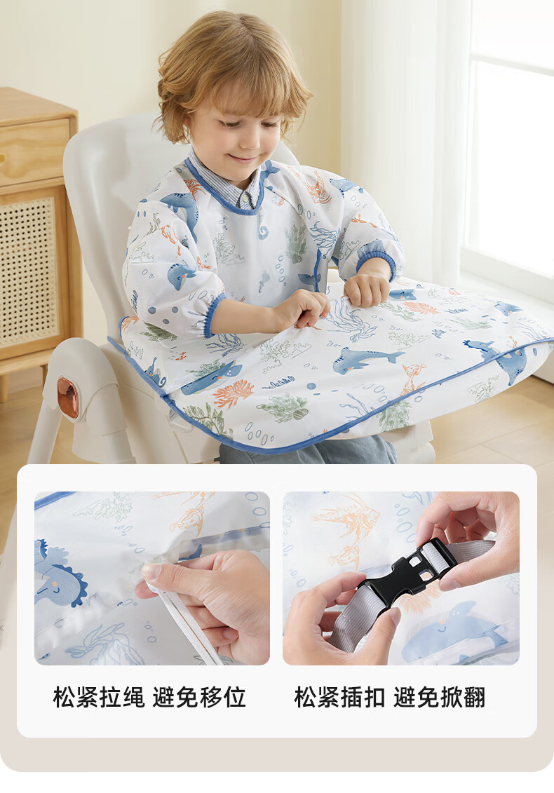 贝肽斯儿童罩衣一体式餐椅防溅衣宝宝吃饭防脏围兜 海之微笑