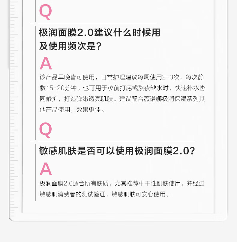 薇诺娜极润2.0面膜6片补水保湿湿敷修护护肤品化妆品男女礼物