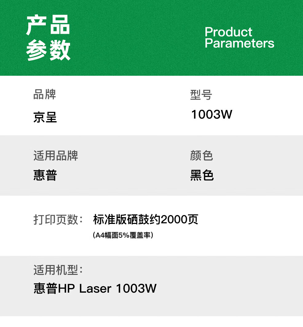 京呈适用惠普hp1003w硒鼓HP Laser MFP 1139a 1003a 1003w1003锐系列打印机碳粉墨盒晒鼓 W1160AC标容硒鼓2000页