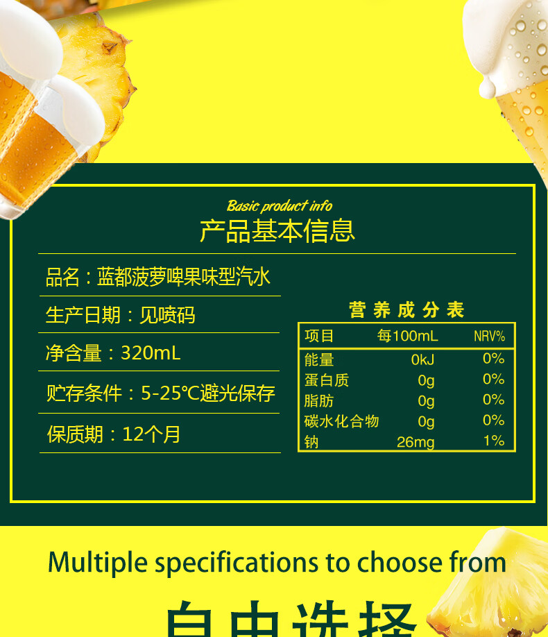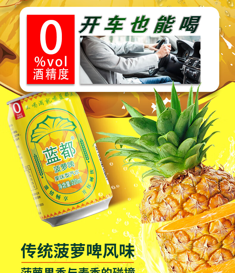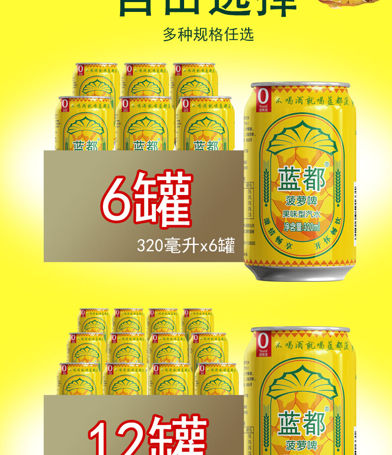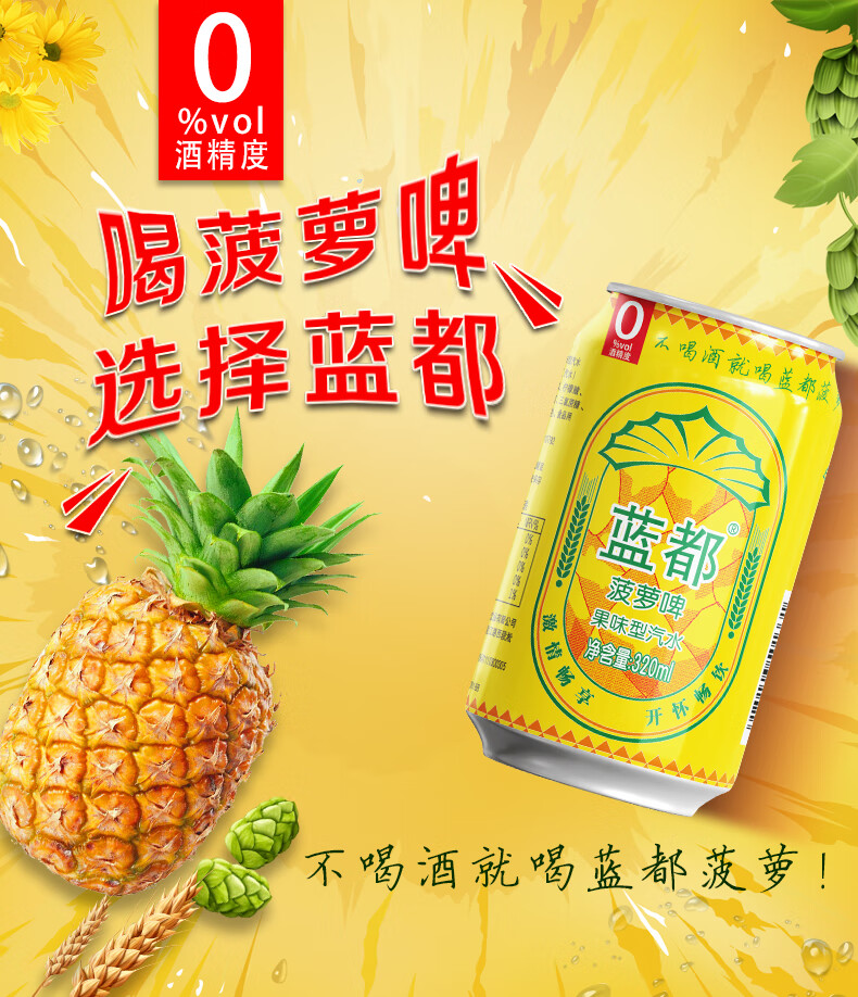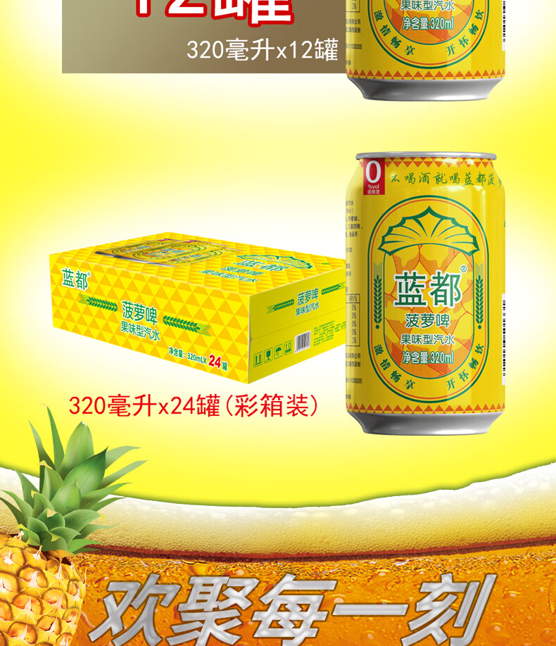 蓝都菠萝啤 菠萝风味气泡饮料过年年货送礼品 320mL*3罐