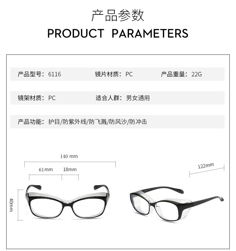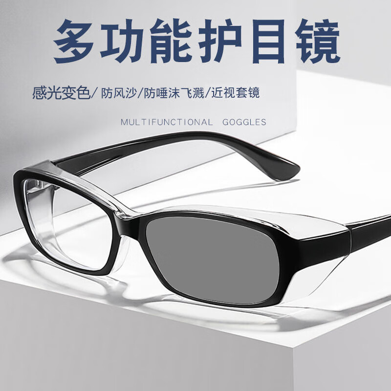 梵卡勒防花粉护目镜防粉尘防风眼镜花粉过敏骑行感光变色防蓝光防护眼镜 黑框变色片(防蓝光+防紫外线)