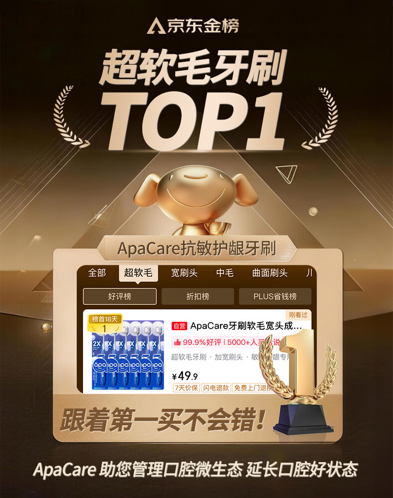 ApaCare牙刷软毛宽头成年人十大知名品牌京东自营男女通用独立包装6支