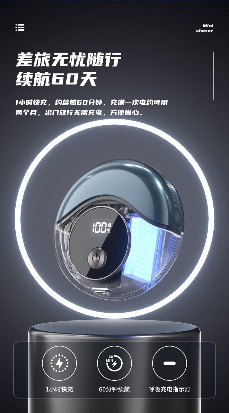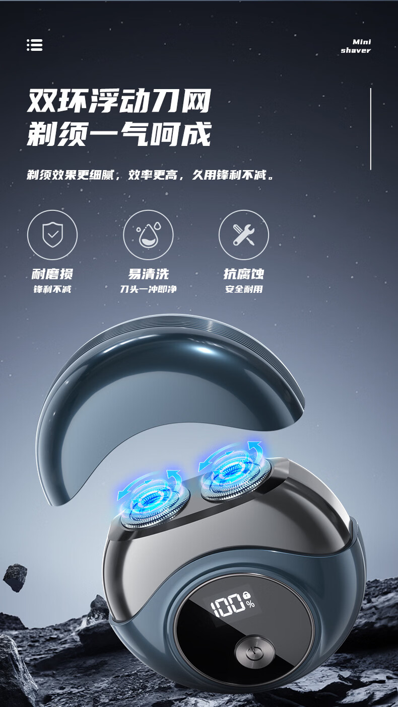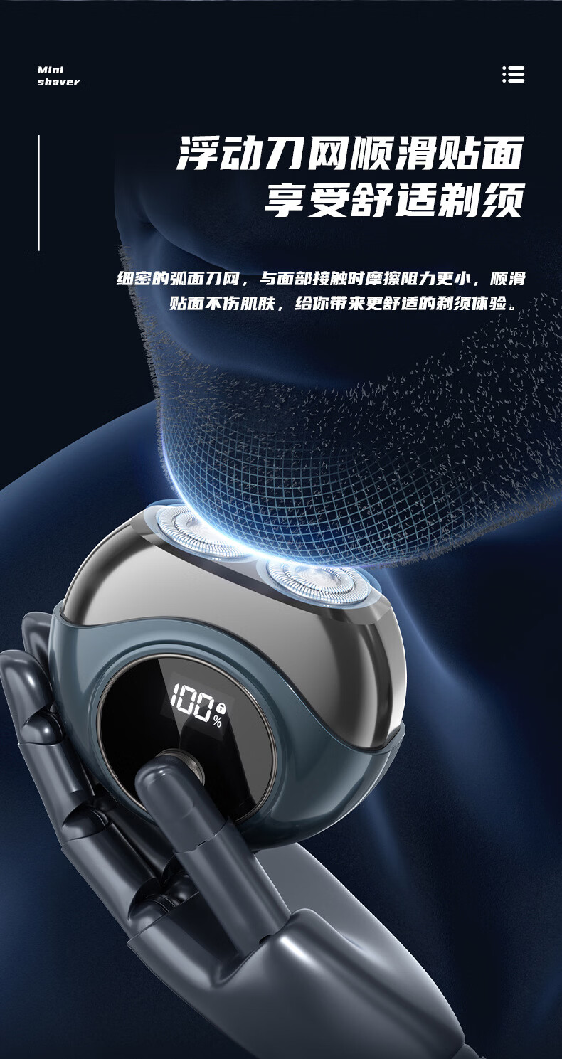 GROOUZ德国品牌2026新款剃须刀男士电动刮胡刀胡须刀全身水洗迷你旅行便携送男友老公父亲520情人节礼物 玄黑色【NEW FLAGSHIP MODEL】