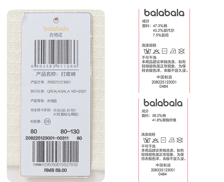 巴拉巴拉童装宝宝裤子婴儿打底裤儿童女童长裤夏装薄款精致洋气潮 奶白10501 90