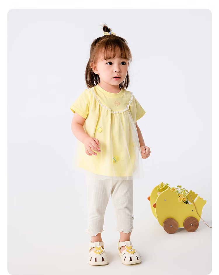 巴拉巴拉女童夏装婴儿短袖套装宝宝两件套甜美复古国风萌 米白10302 100