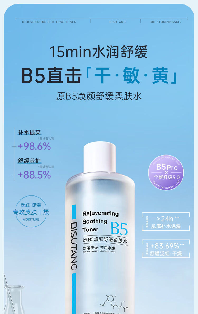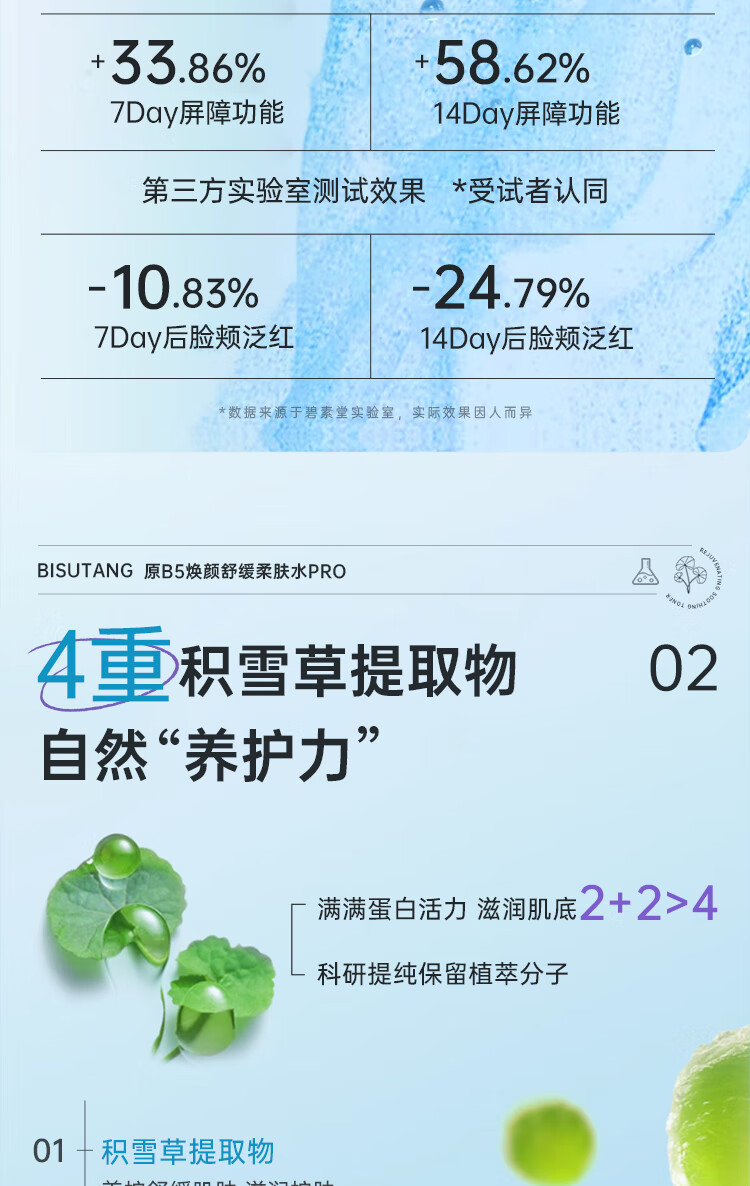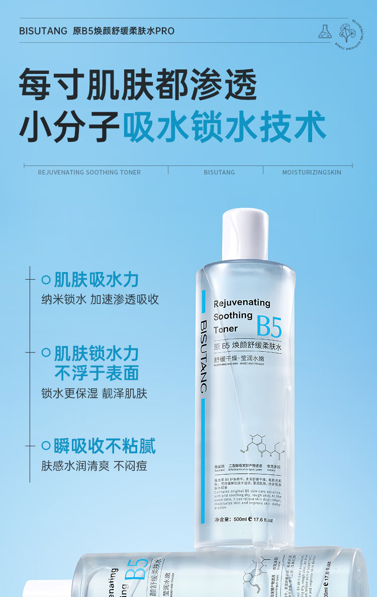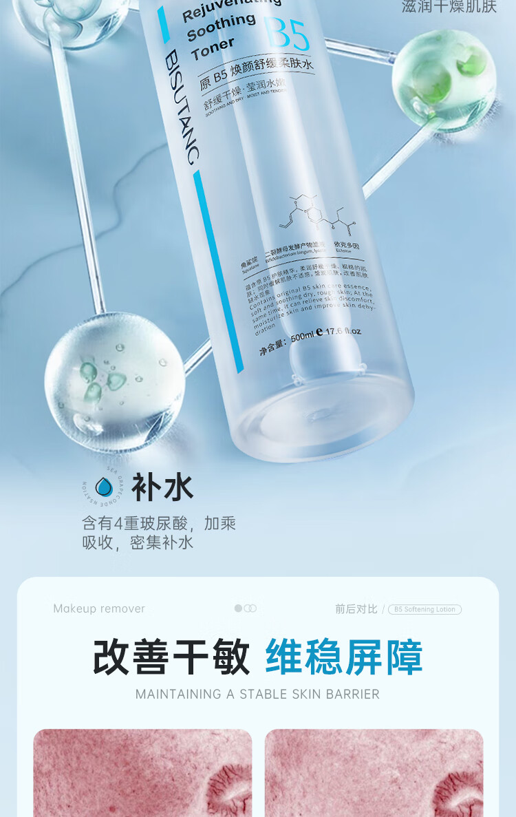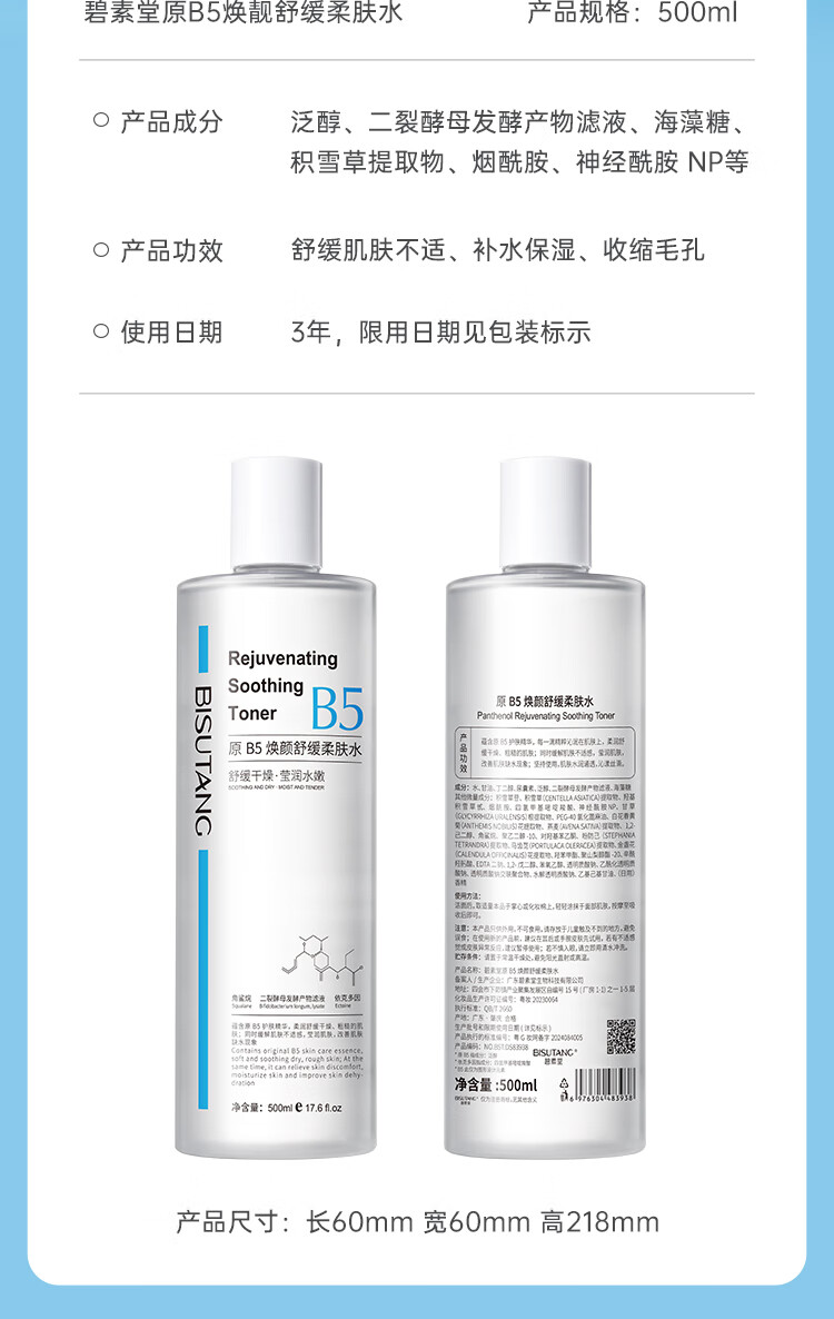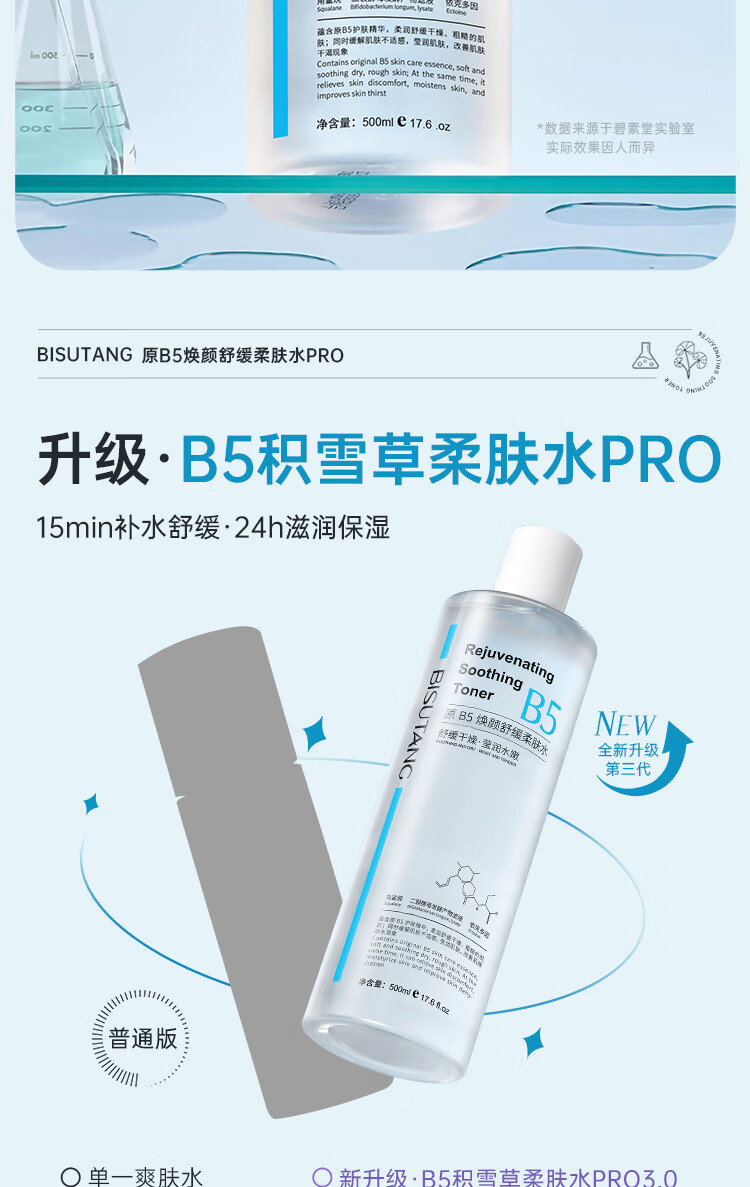 碧素堂B5积雪草爽肤水补水保湿敷收缩毛孔舒缓精华护肤化妆水男女正品 500ml 【买一送一/敏肌急救】