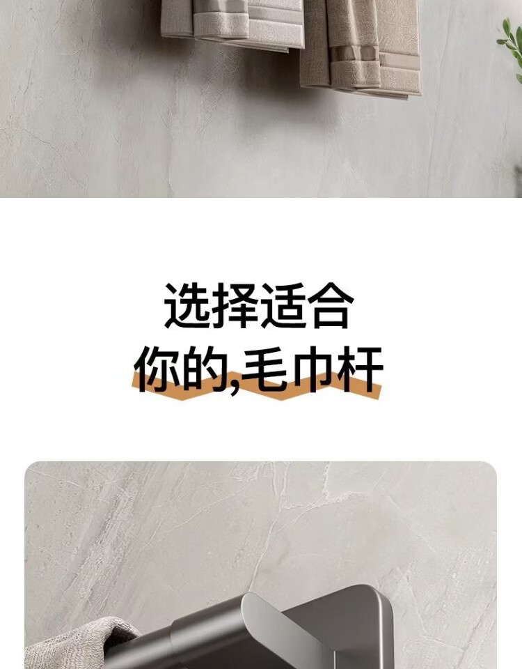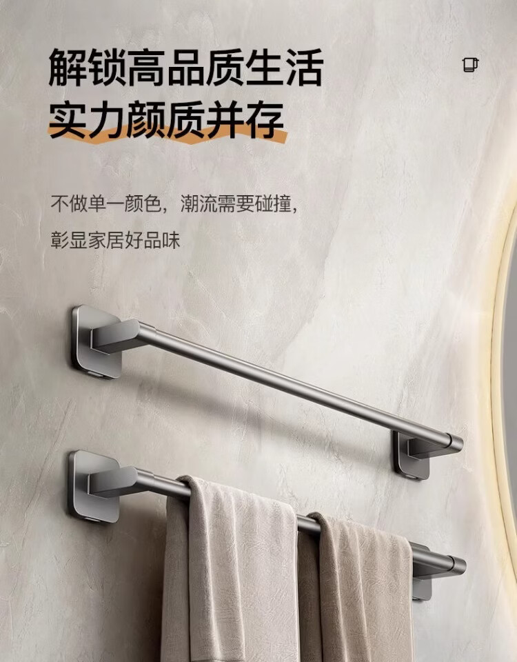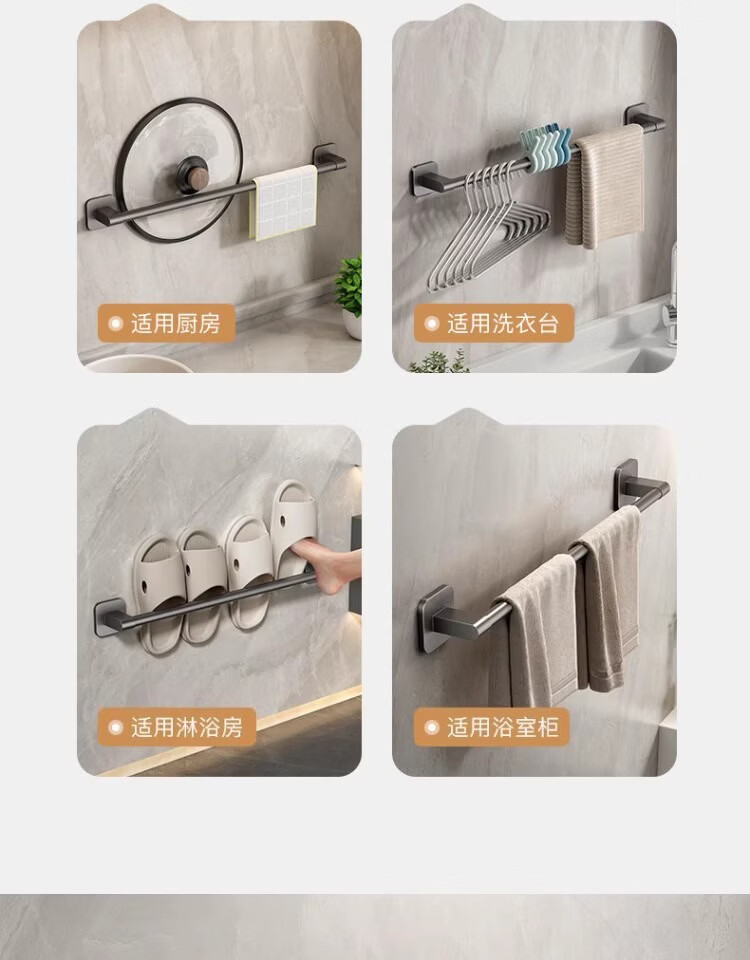 【优选直发】厂家供应太空铝免打孔壁挂置物架浴室毛巾架单杆洗手 30cm 太空铝-石墨灰-单杆【升级纳米无痕贴】