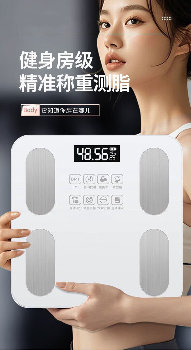 飒望【德国】体重秤减肥专用精准到0.01克称体重的电子秤家用人体高精度充电款 珠光白【充电款】智能APP链接 金榜推荐丨百万热销