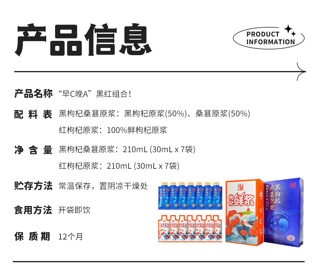 内廷上用黑枸杞桑葚原浆滋补养礼盒生正宗宁夏中宁花青素果汁枸杞子原液 1盒 30ml*7袋