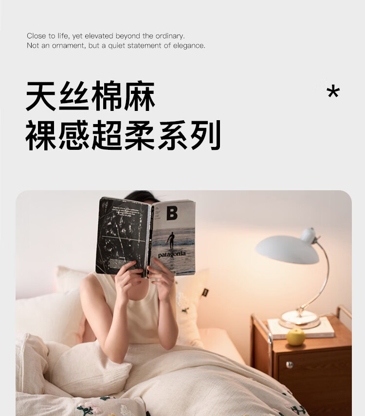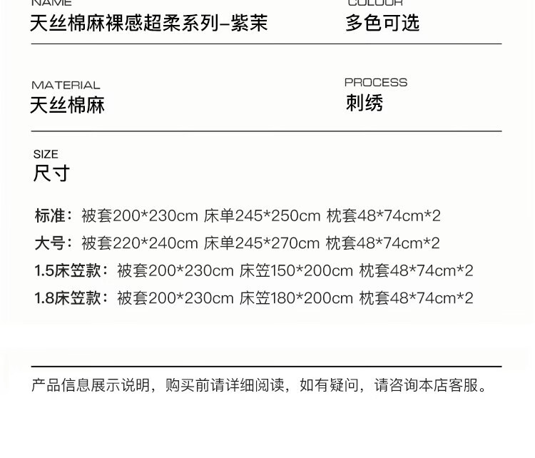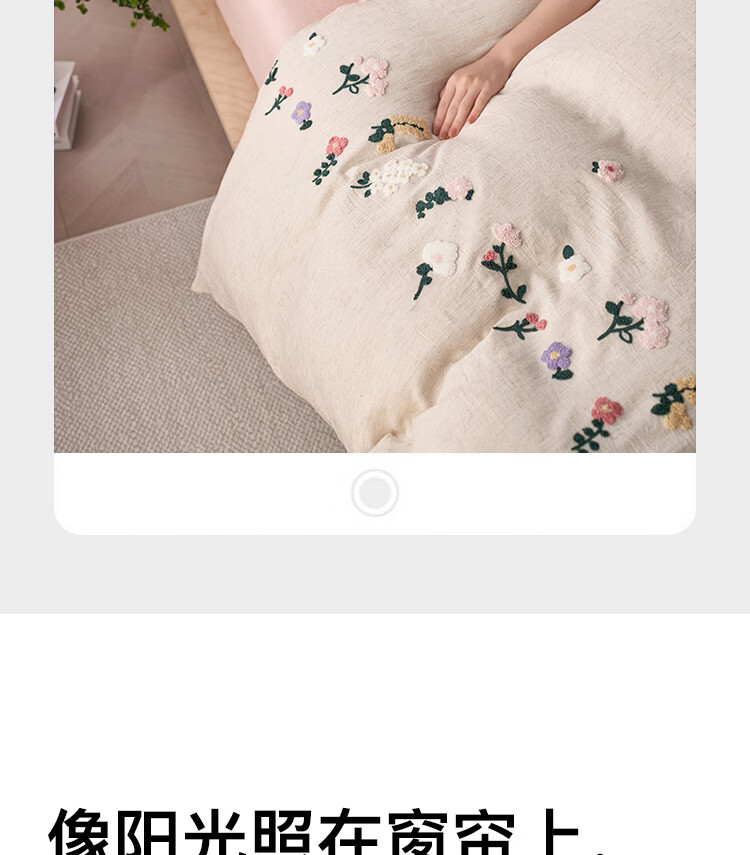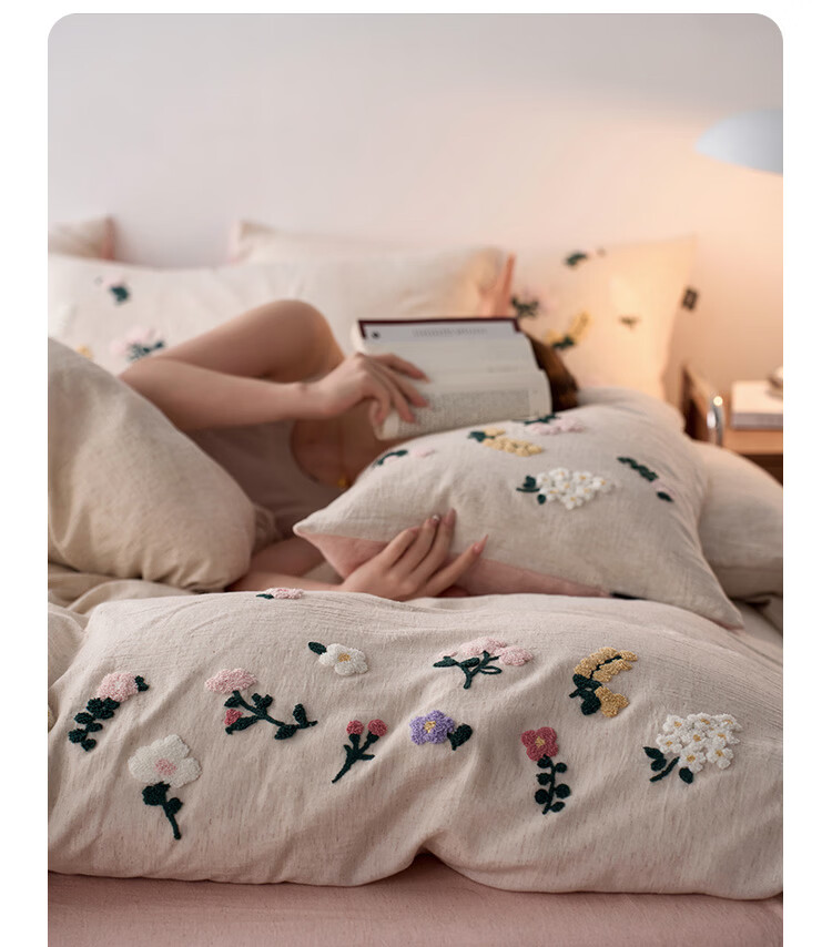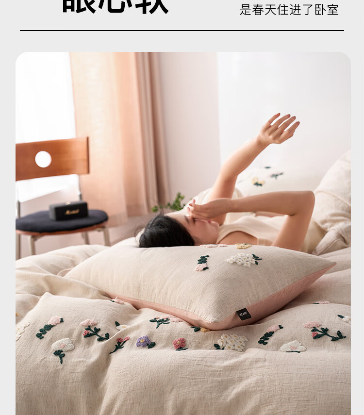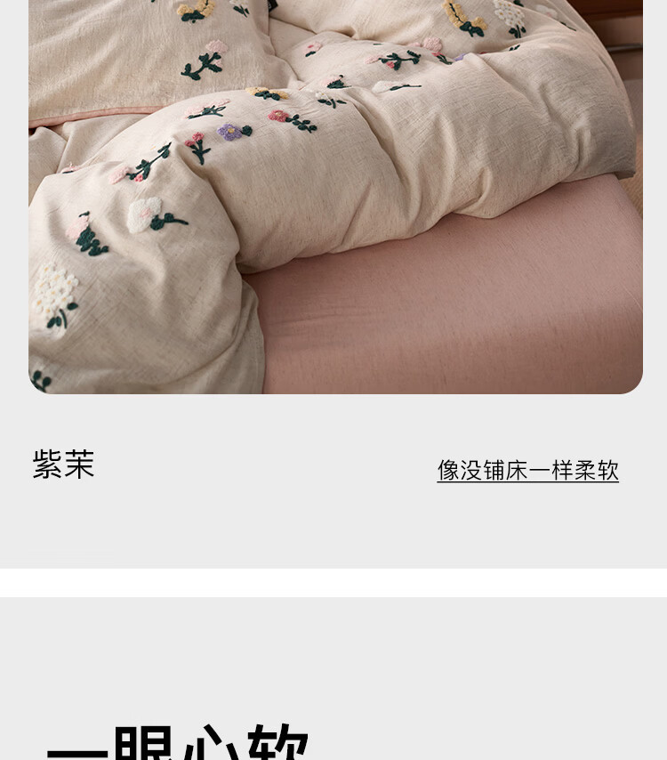 ROLAND LIVE天丝棉麻四件套春夏新款透气花朵刺绣被套床单家用卧室床上用品 KZ 天丝棉麻四件套-紫茉白 1.8米床 床笠款 【被套200*230cm】