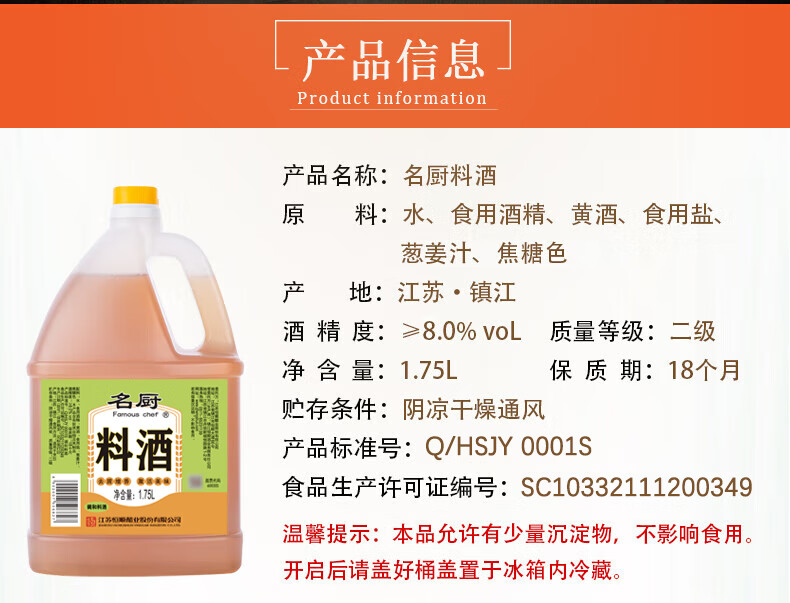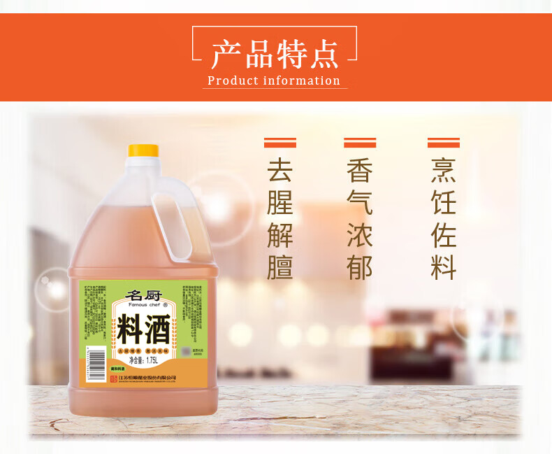 恒顺名厨料酒 1.75L 去腥增香