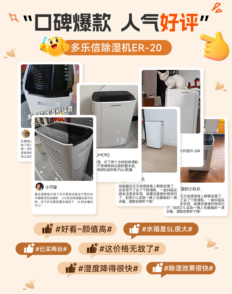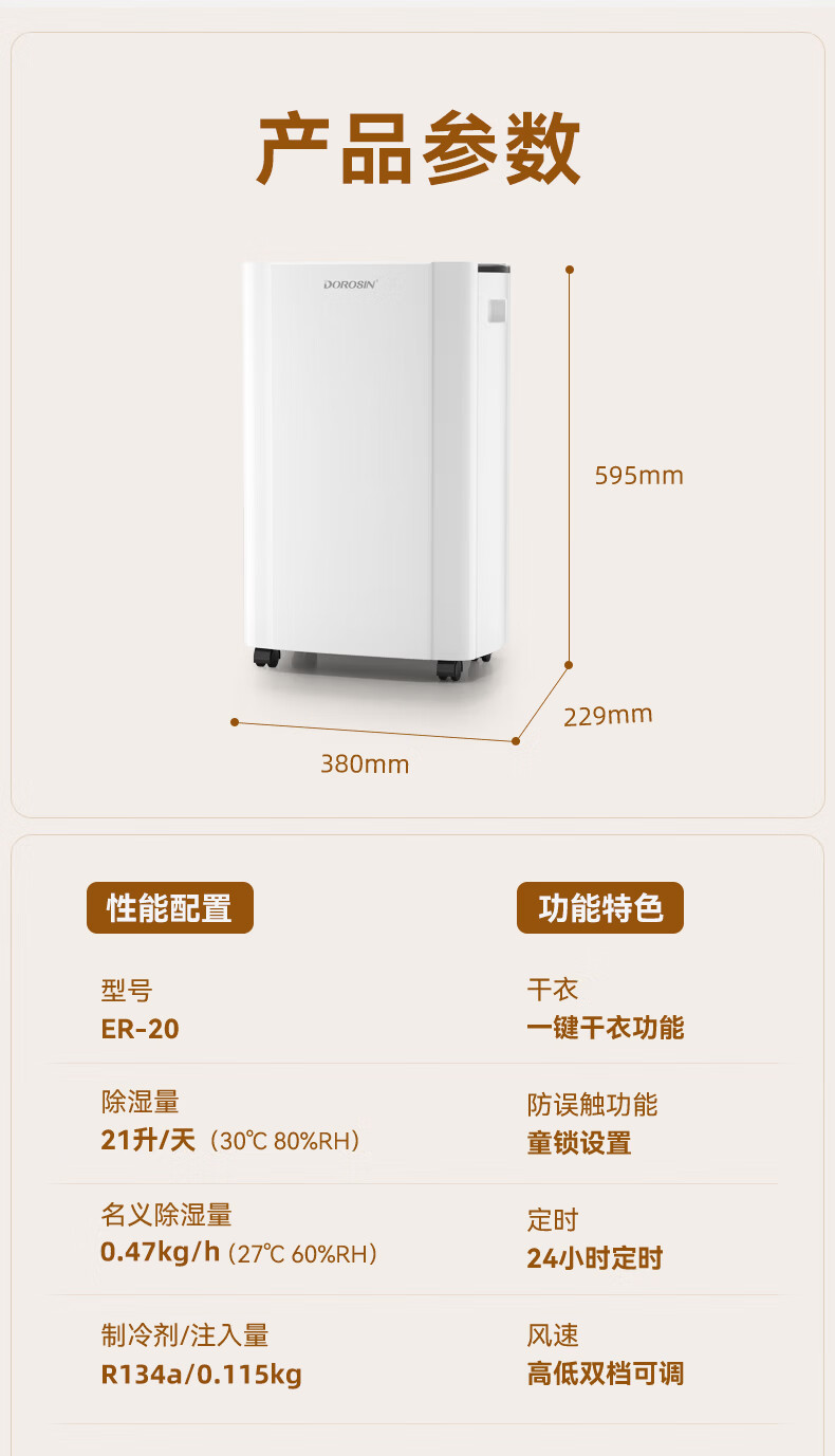 多乐信(DOROSIN)除湿机/抽湿机 除湿量21升/天 42㎡家用轻音地下室干衣除湿吸湿器 客卧除潮干燥机ER-20