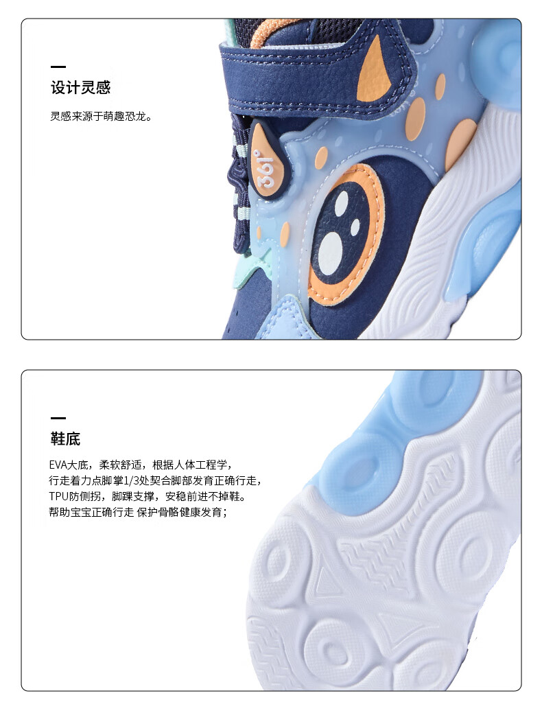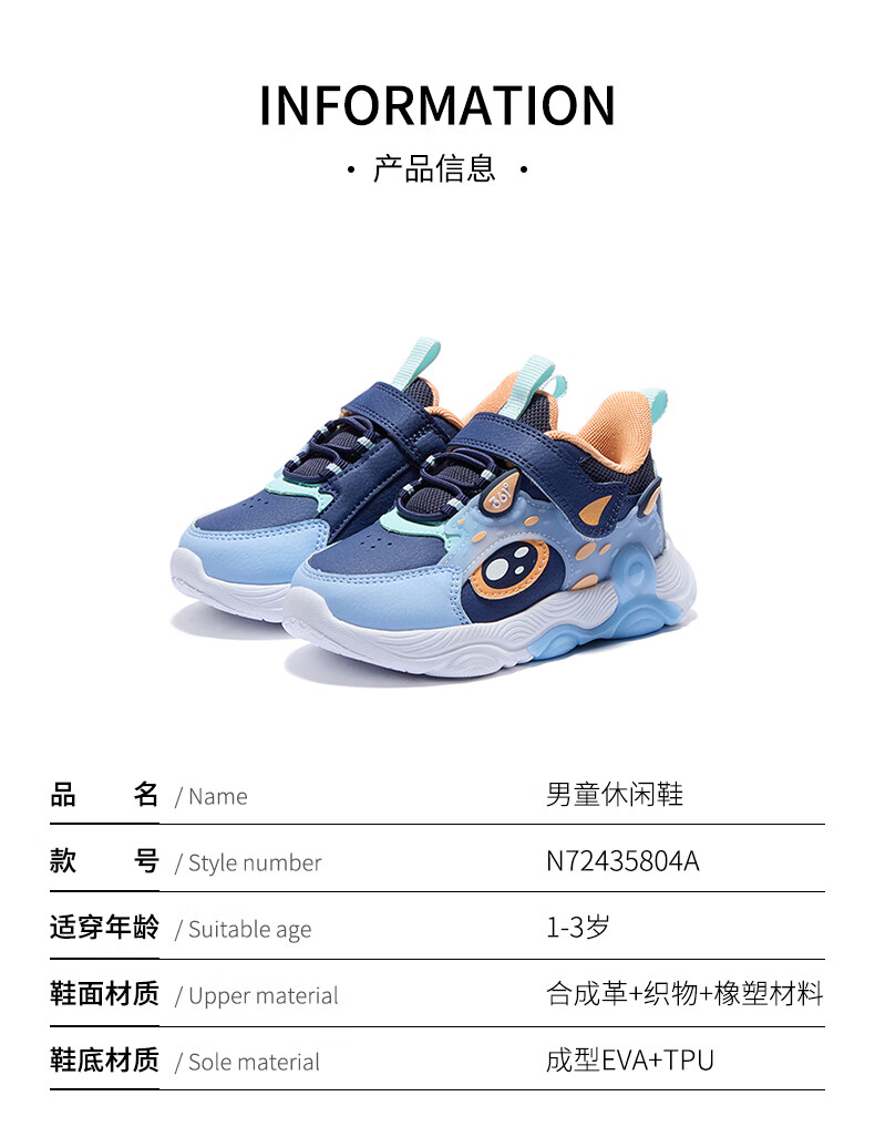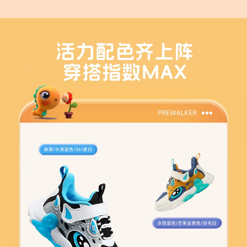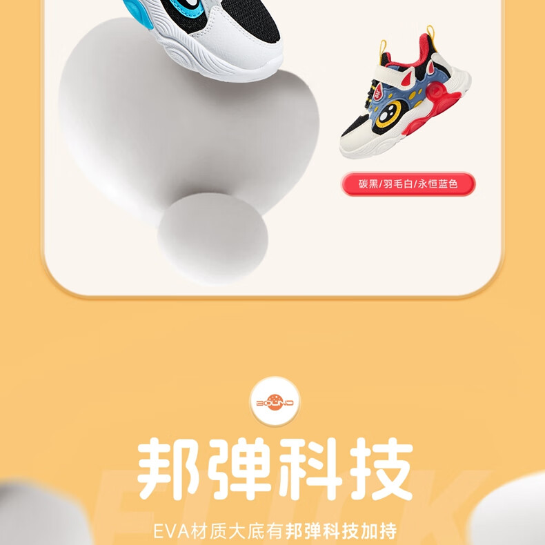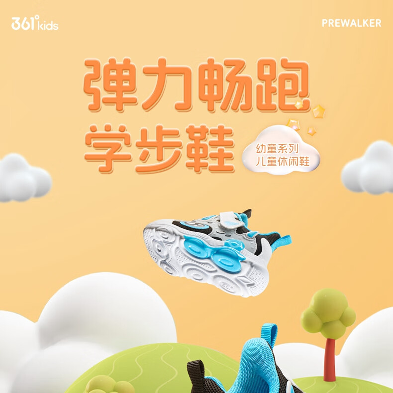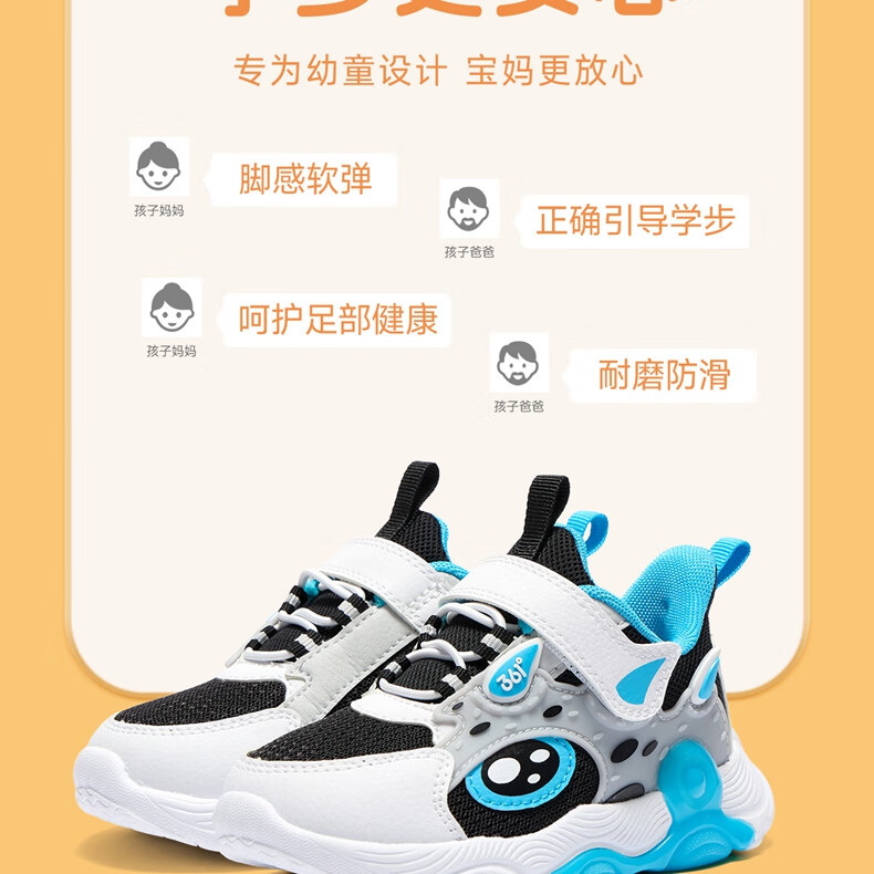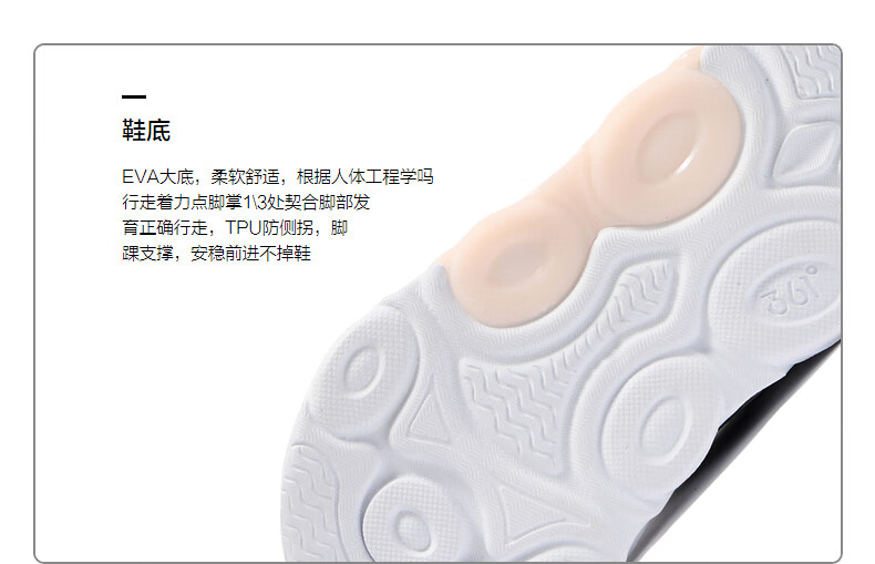361°童鞋 儿童宝宝鞋四季男女童邦弹科技轻盈休闲鞋学步鞋 黑22