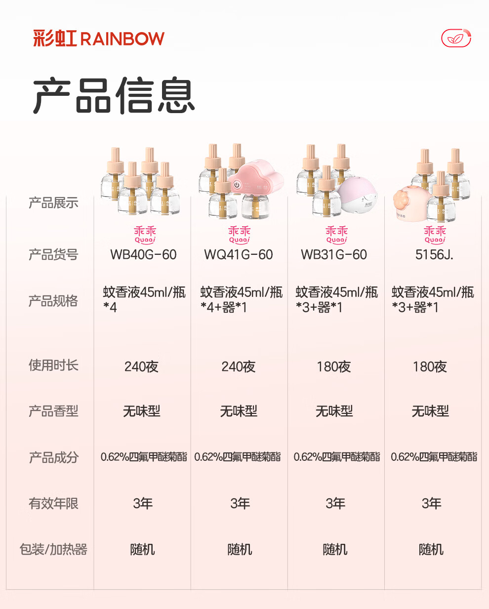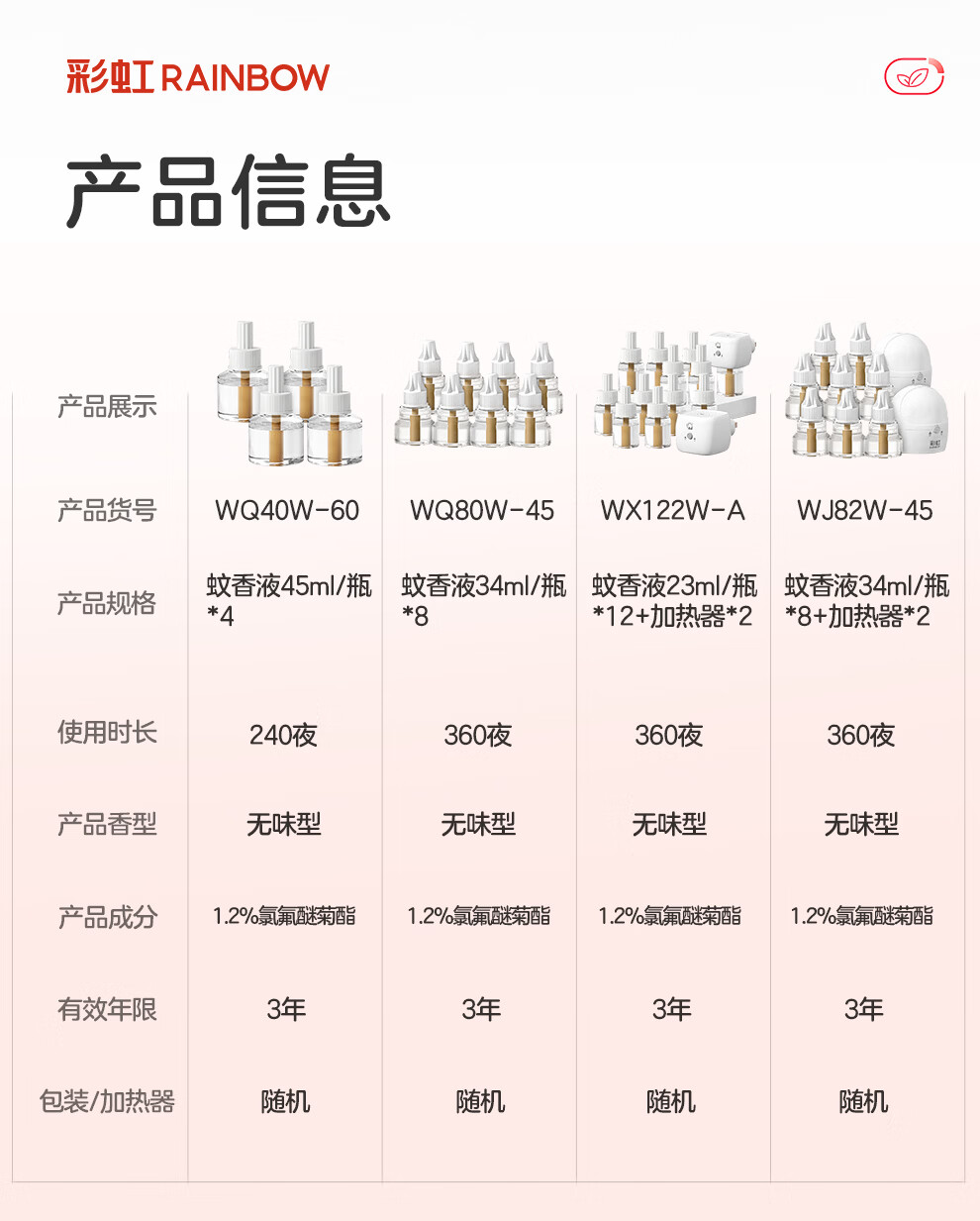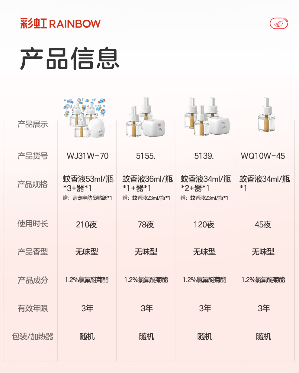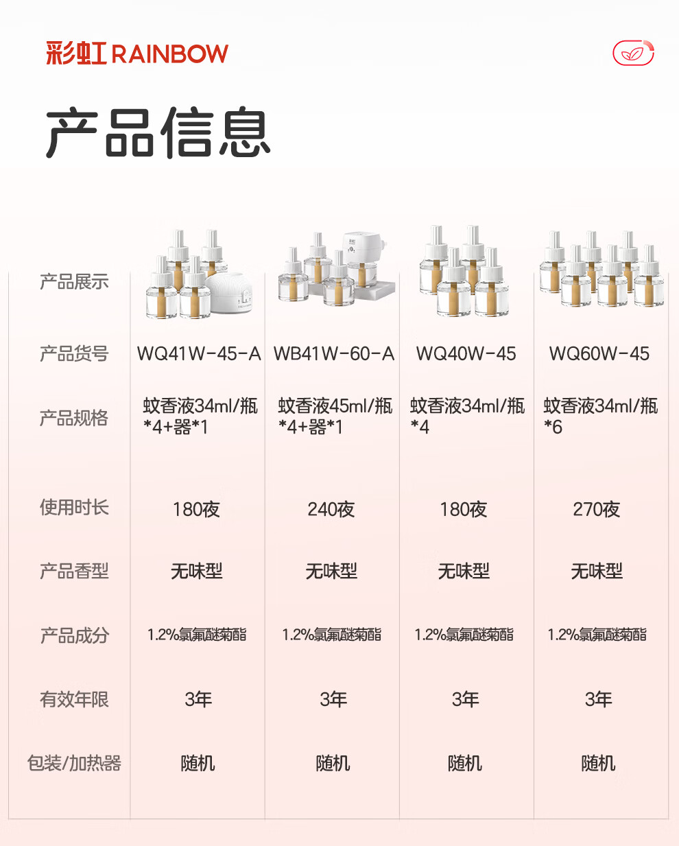 彩虹 电热蚊香液(灭蚊水)无味驱蚊防蚊液体蚊香家用补充装蚊香液温和 45ml*4瓶液(可用240晚)