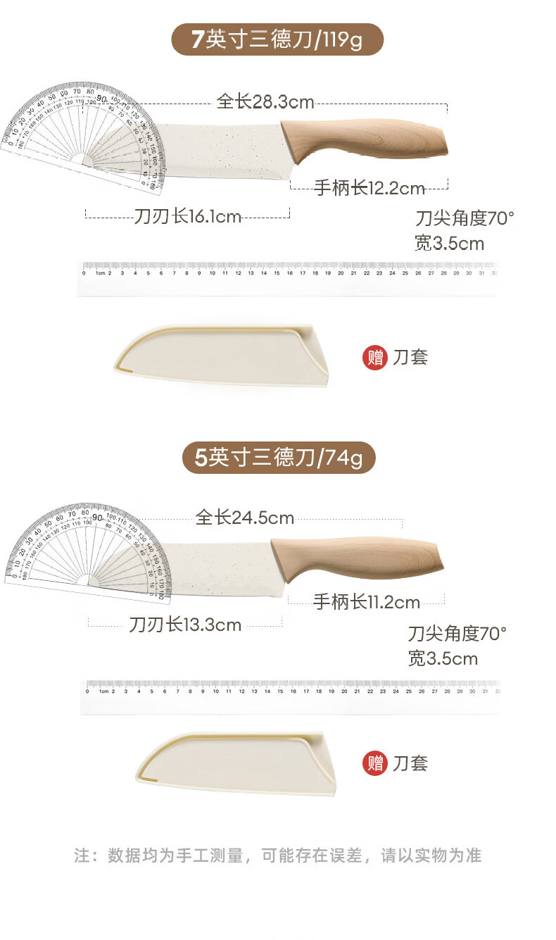 菜刀家用切肉切菜刀厨房专用刀厨师刀具女士小菜刀多功能刀具套装 5英寸三德刀