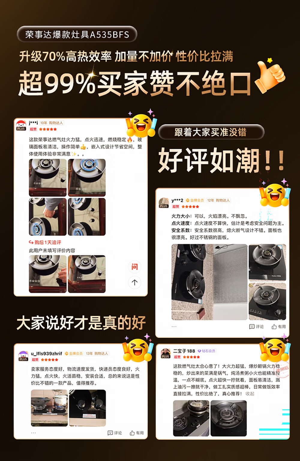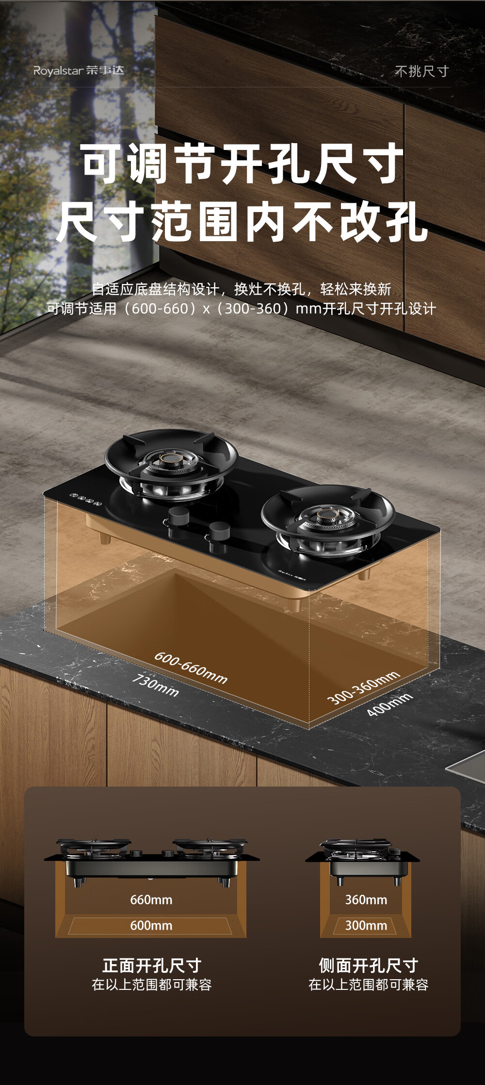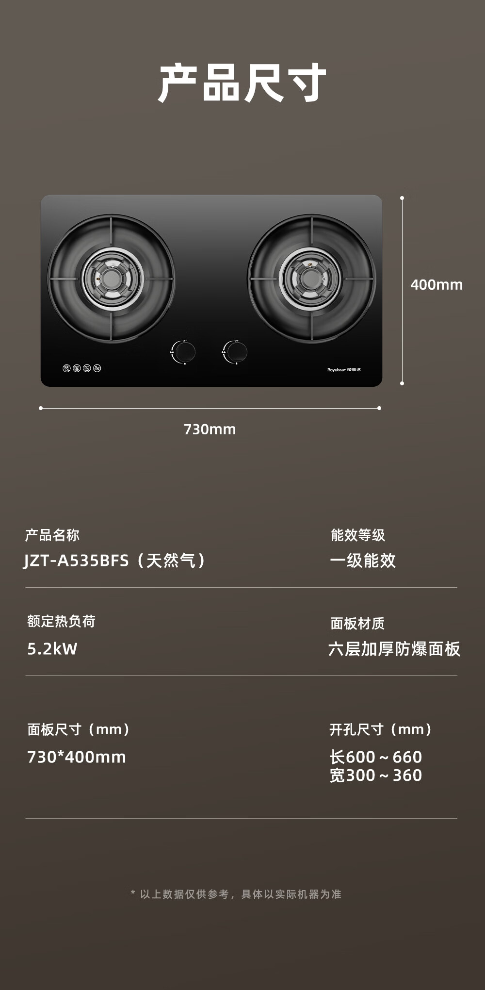 荣事达(Royalstar)燃气灶天然气双灶家用嵌入式5.2kW节能猛火灶具灶台 一级能效70%热效率铜火盖 JZT-A535BFS