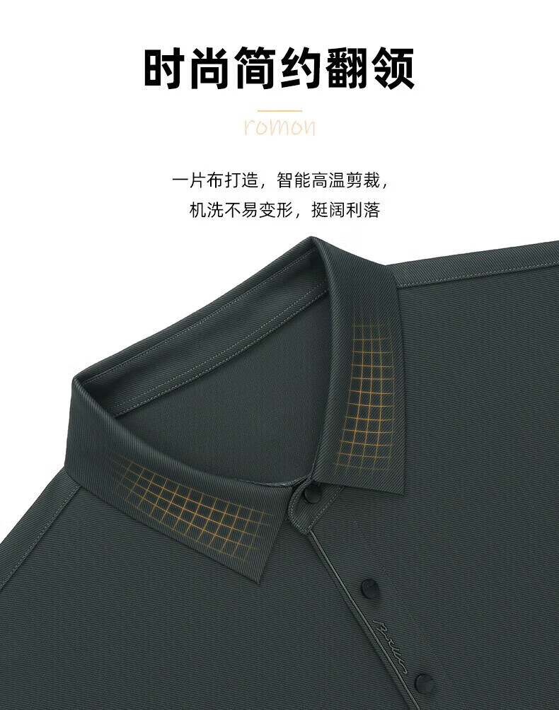 罗蒙(ROMON)冰丝凉感短袖t恤男士2026夏季新款中青年商务休闲时尚翻领上衣 藏青 3XL (185) 适合155-175斤