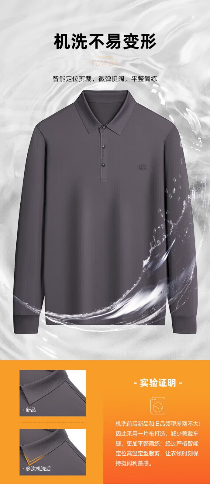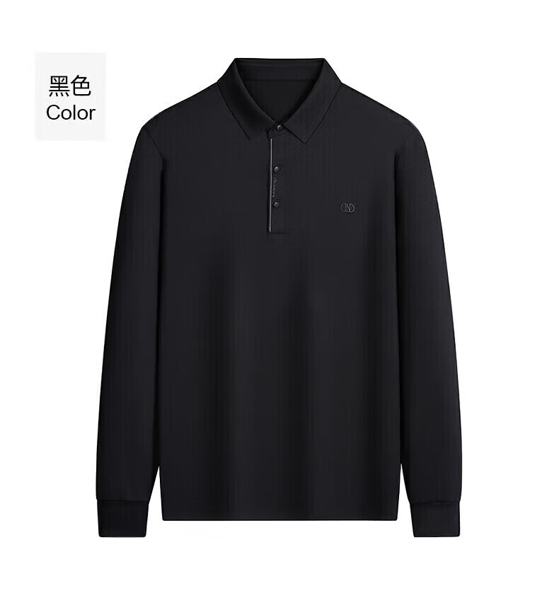 罗蒙(ROMON)长袖t恤男秋季新款中青年时尚男士翻领打底T恤衫 黑色 XL 180【建议体重130-150斤左右】