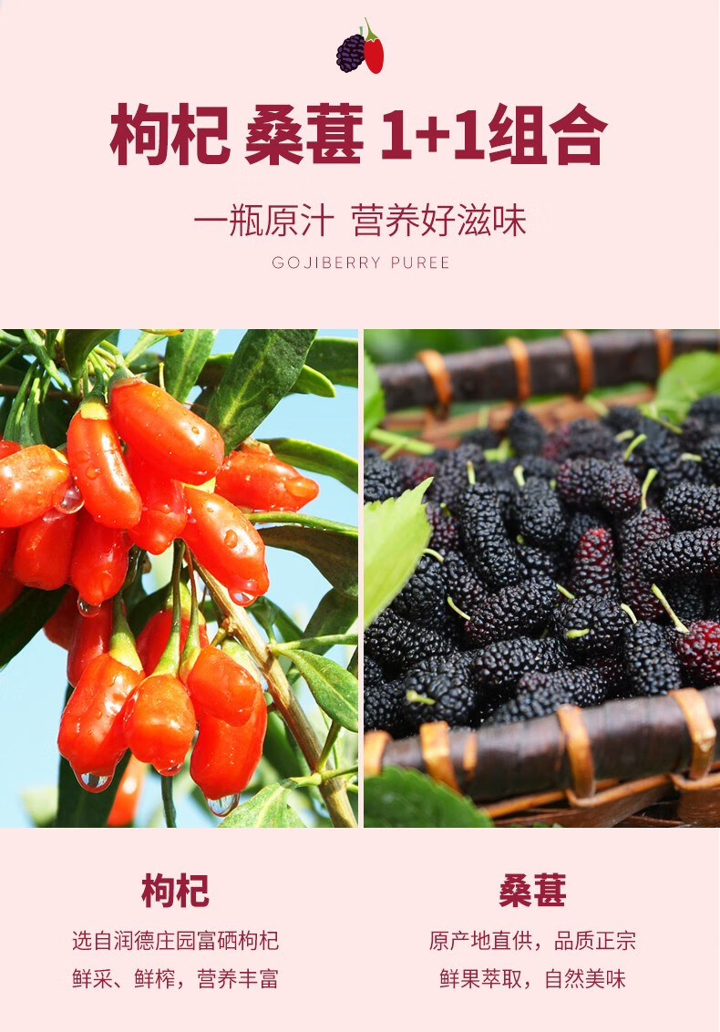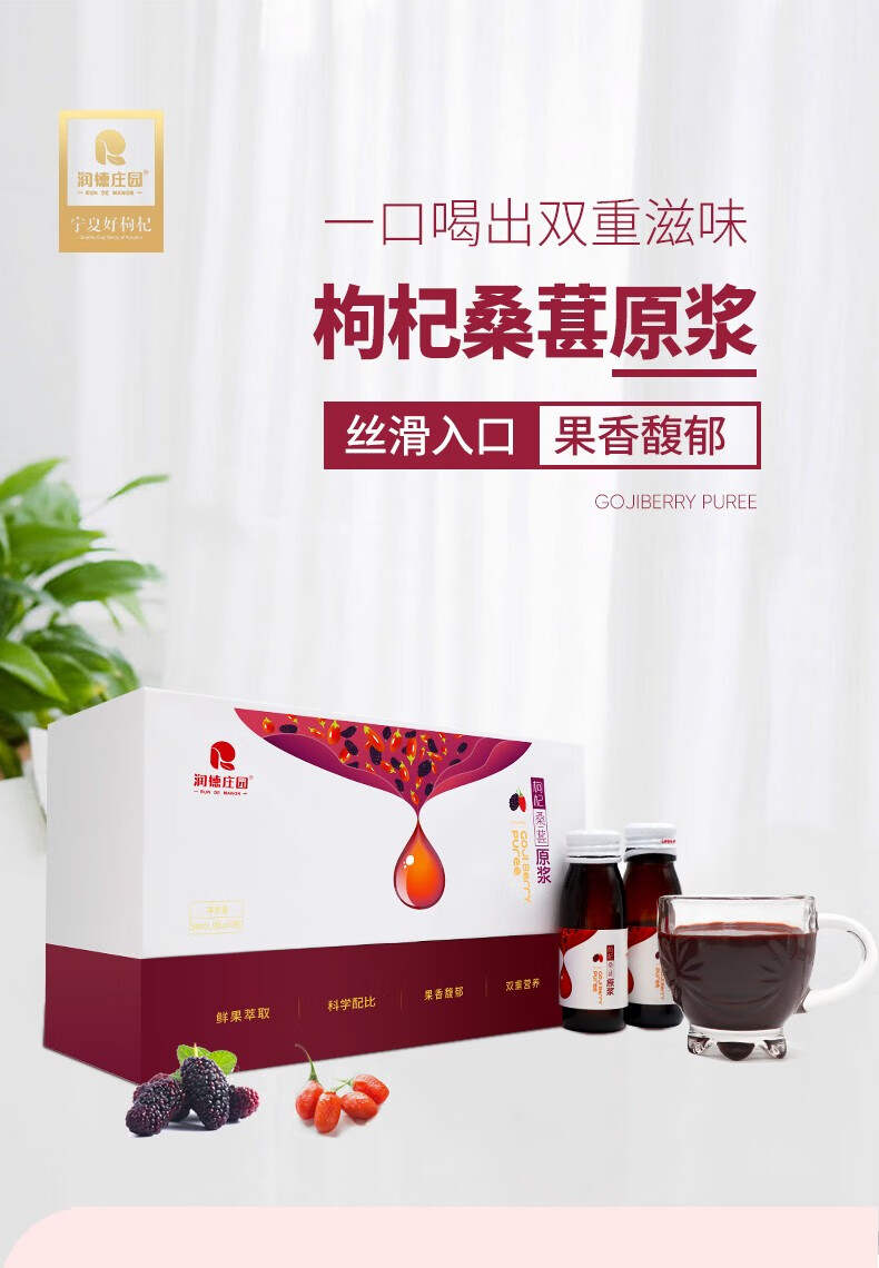 润德庄园新鲜枸杞桑葚原浆无硫熏宁夏 枸杞子果汁液50ml*10瓶 礼盒装 【顺丰包邮产地直发】枸杞桑葚原浆 500ml (50ml*10瓶)