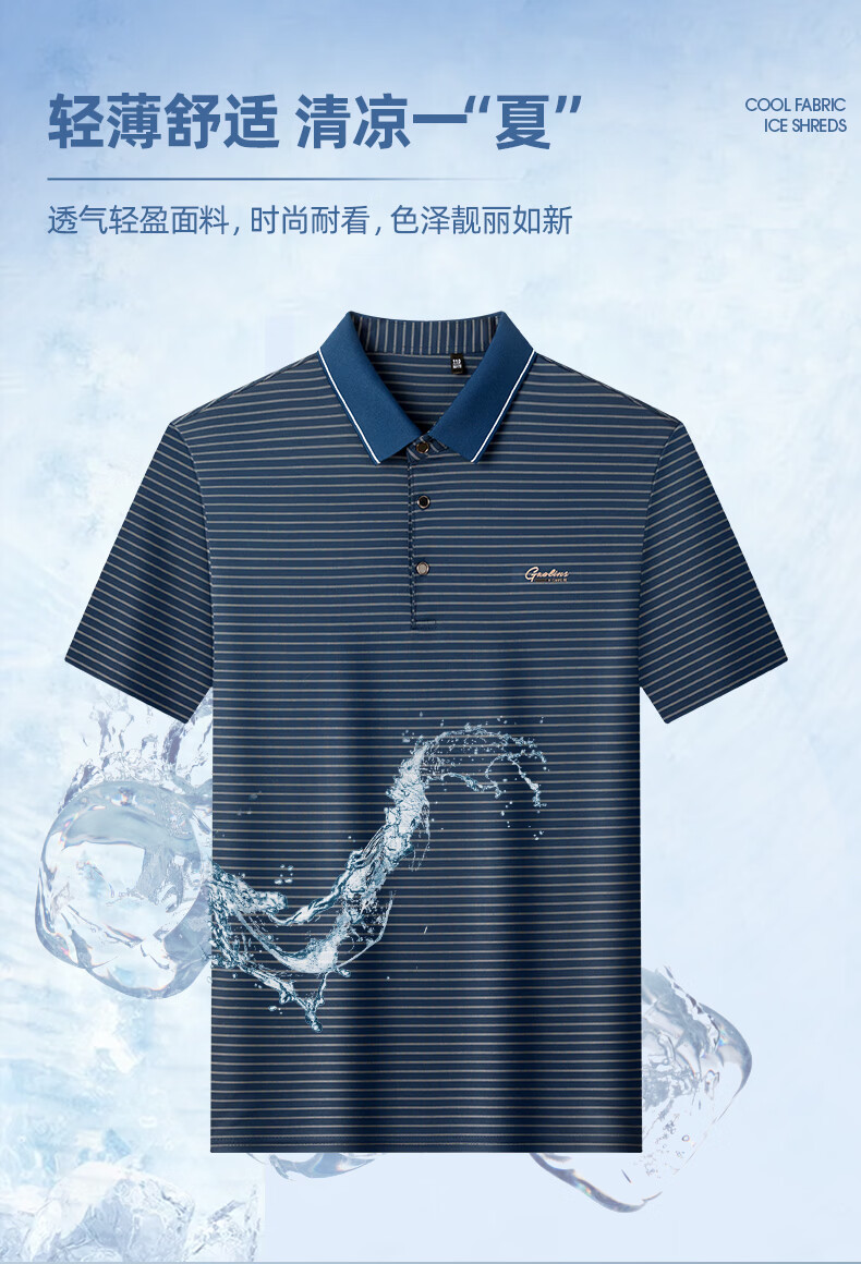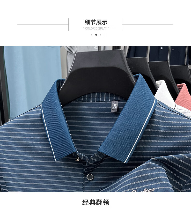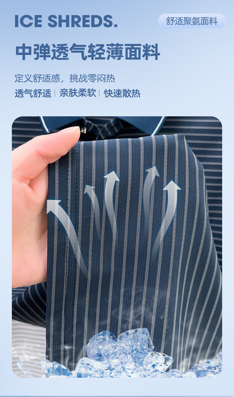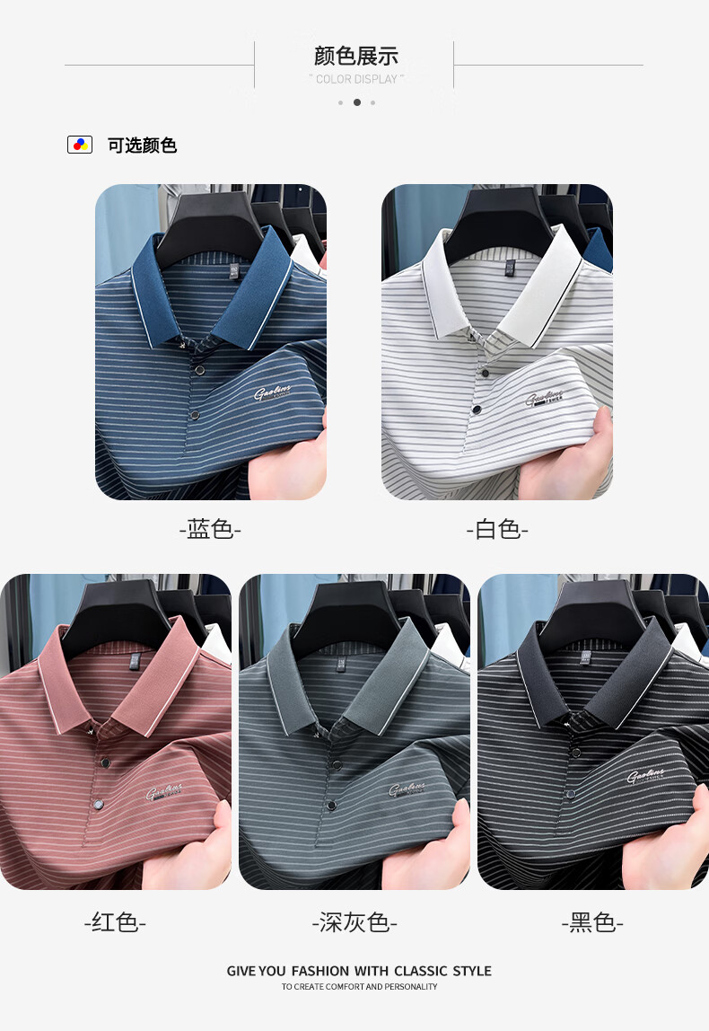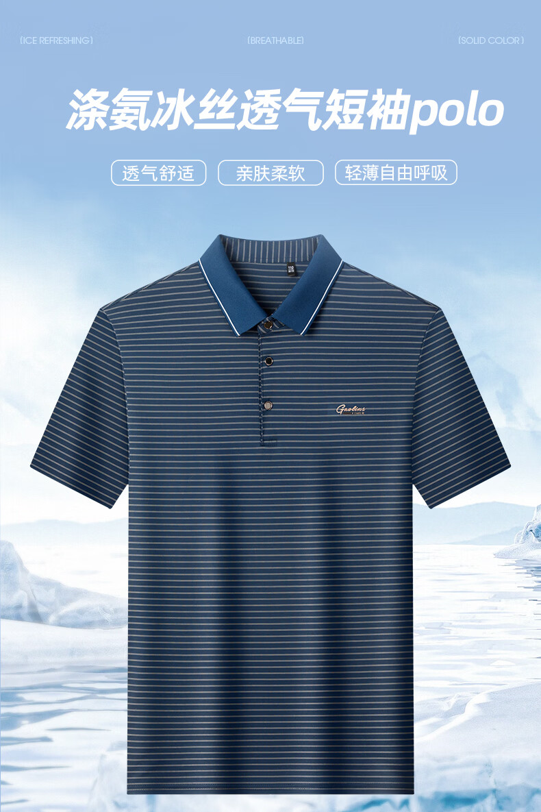 SHANSHAN杉杉涤氨条纹冰丝冰感短袖POLO衫男商务休闲打底T恤夏季新款 深灰色 2XL /185