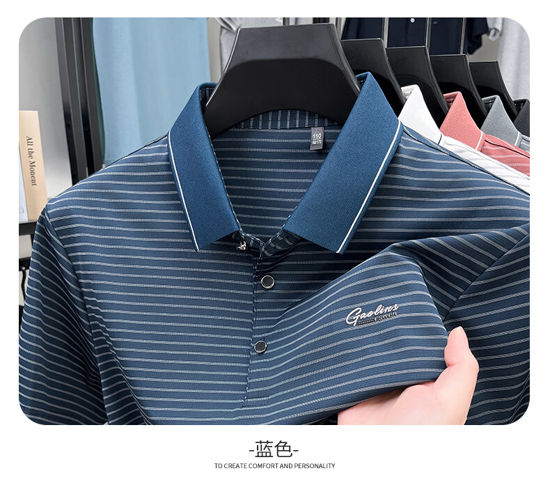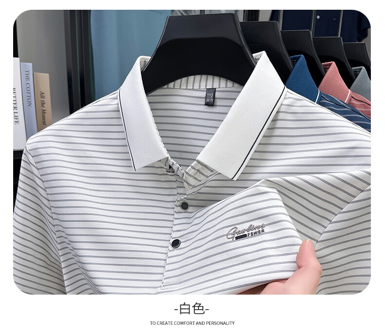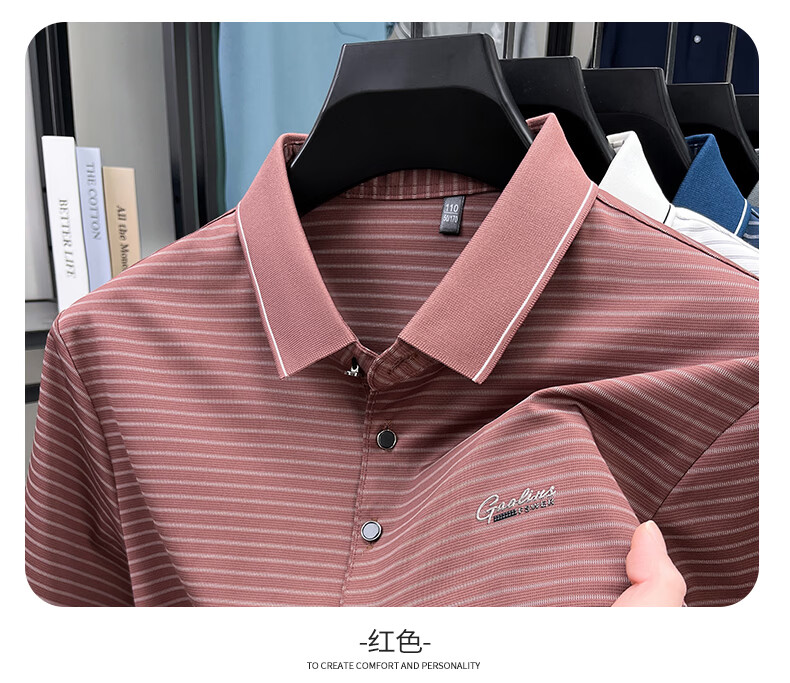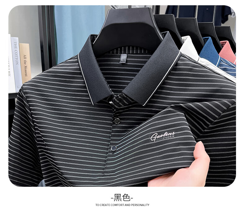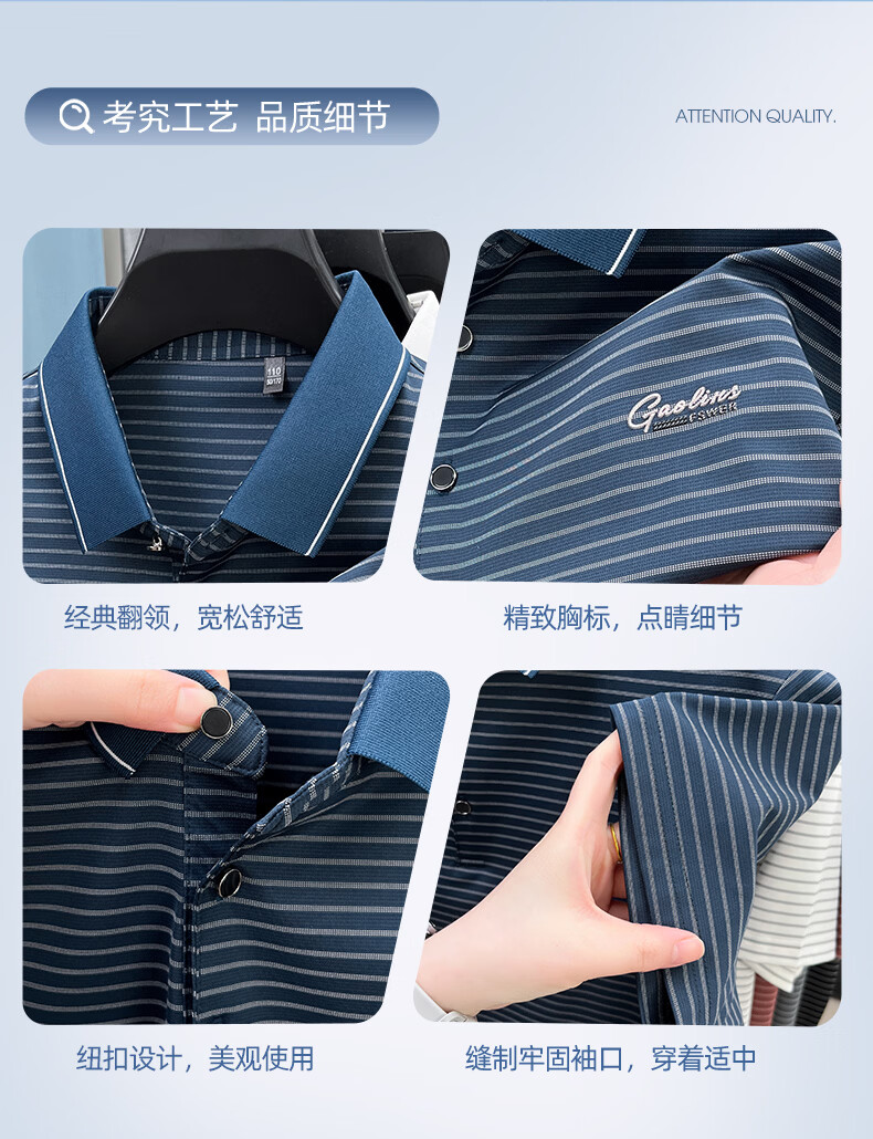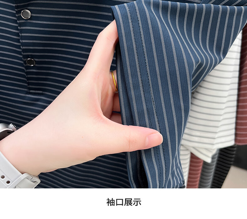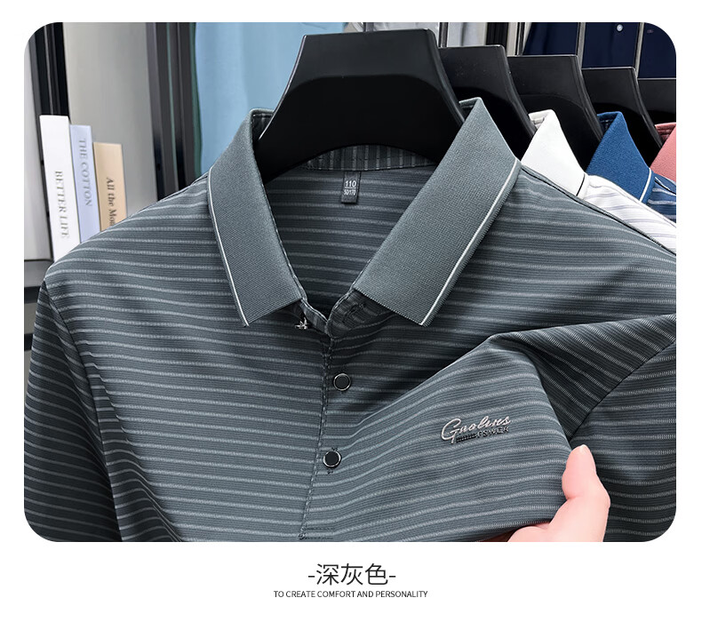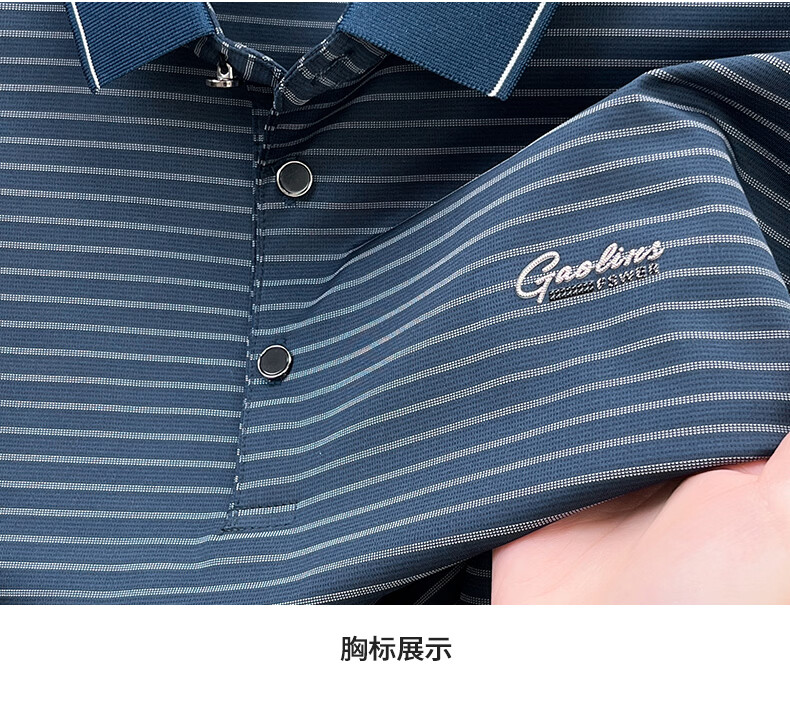 SHANSHAN杉杉涤氨条纹冰丝冰感短袖POLO衫男商务休闲打底T恤夏季新款 深灰色 2XL /185