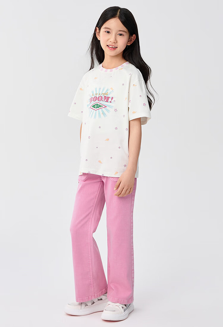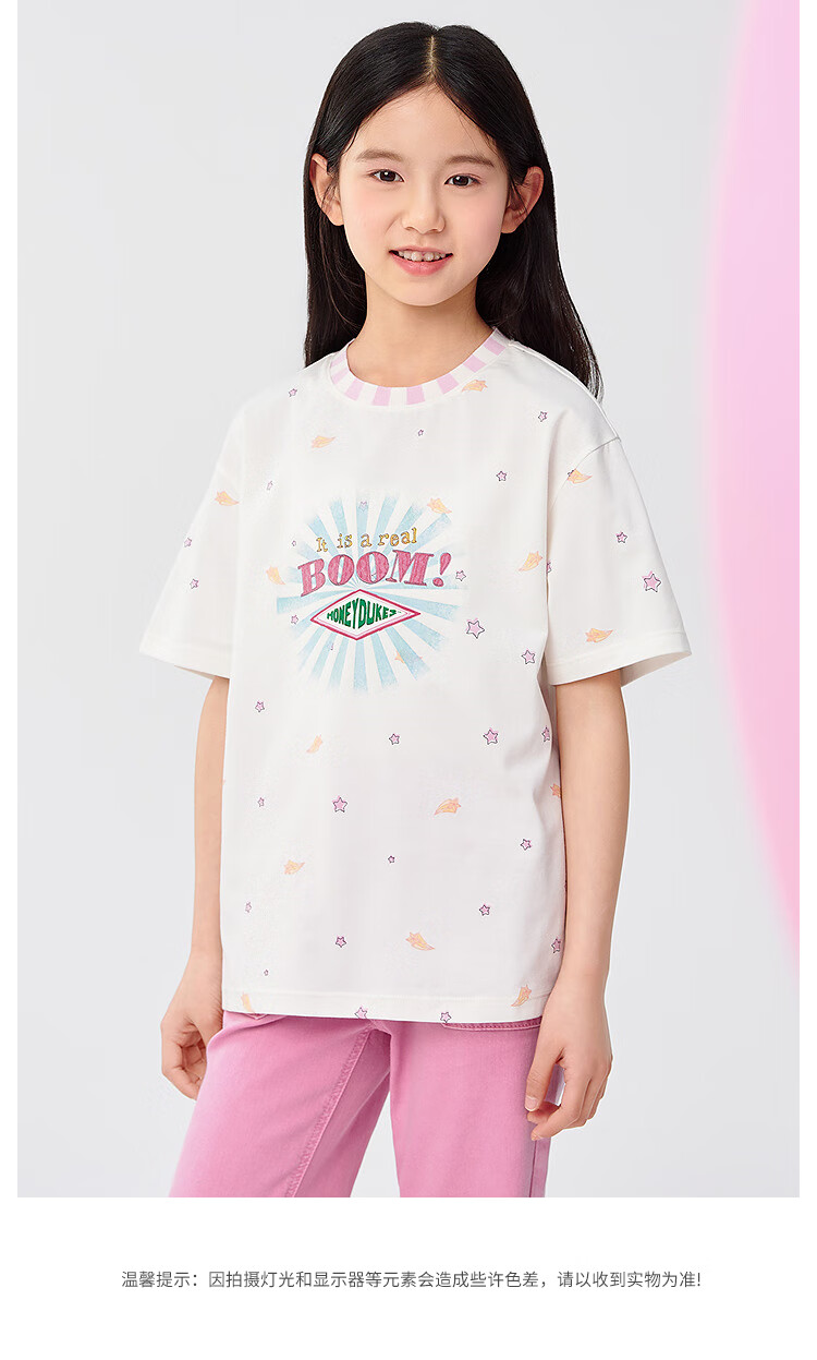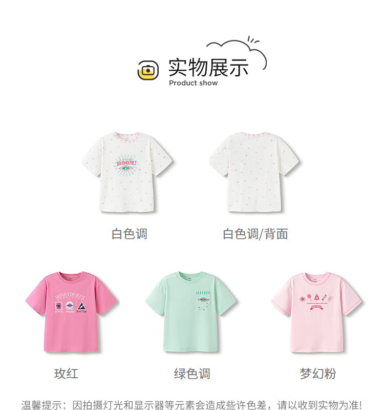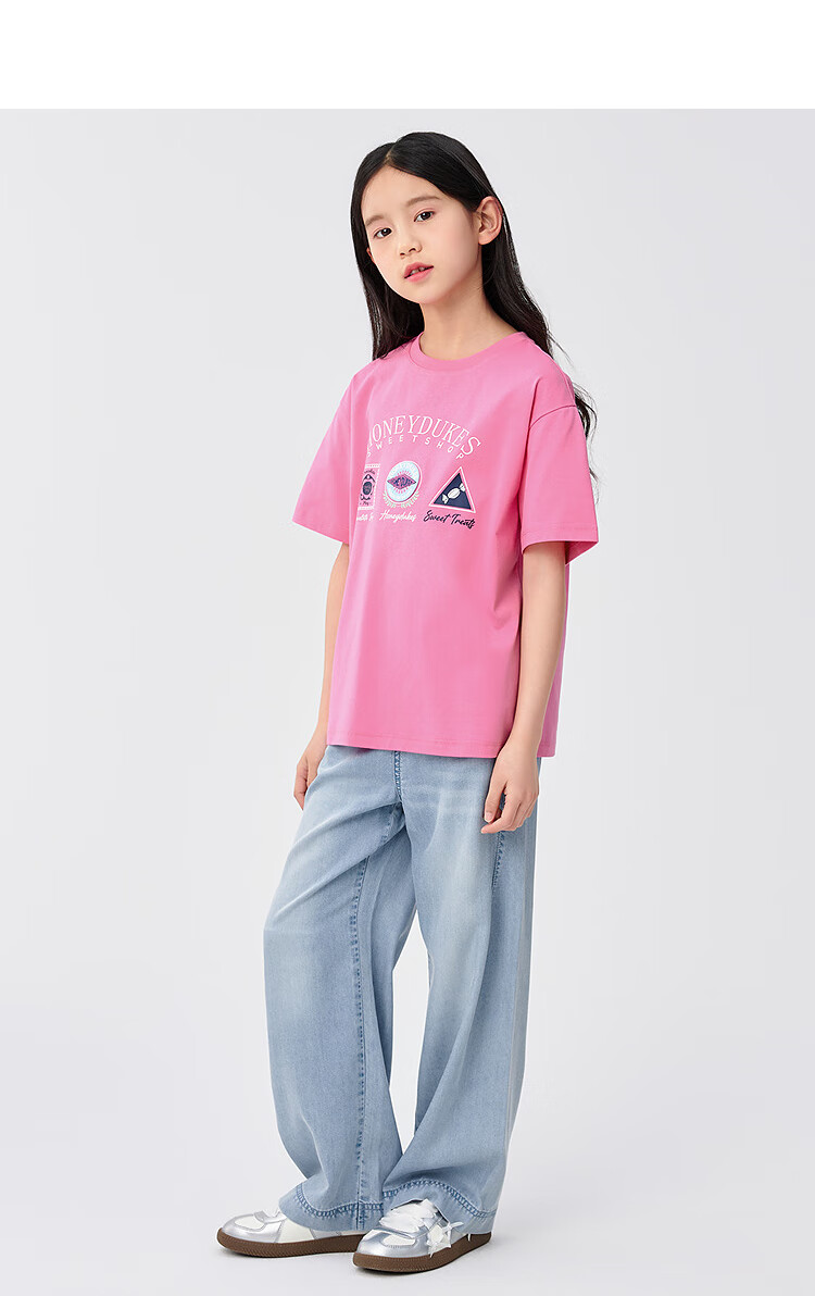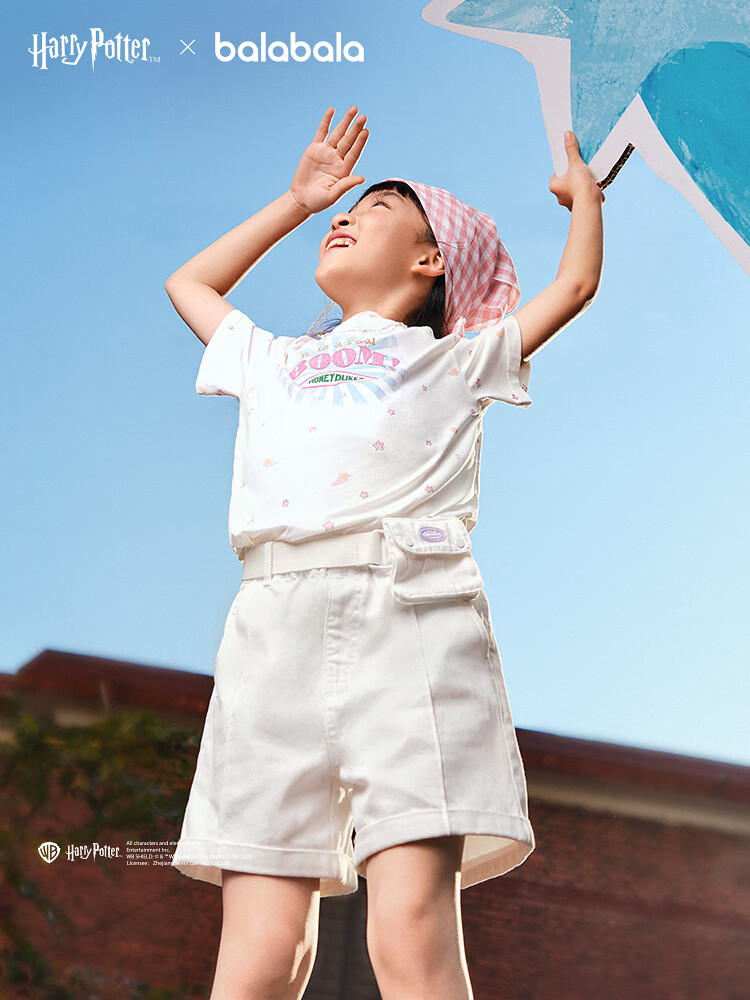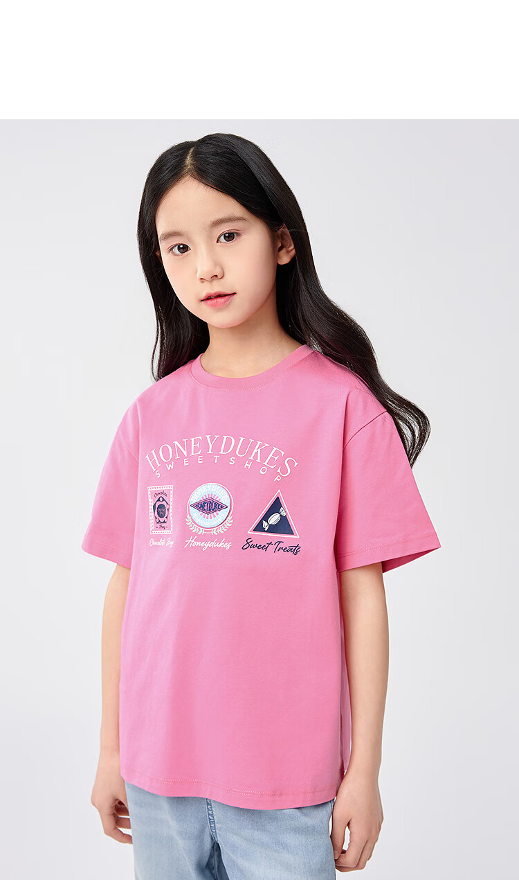 巴拉巴拉【哈利波特商场同款】儿童短袖女童t恤夏装速干 玫红60128 150